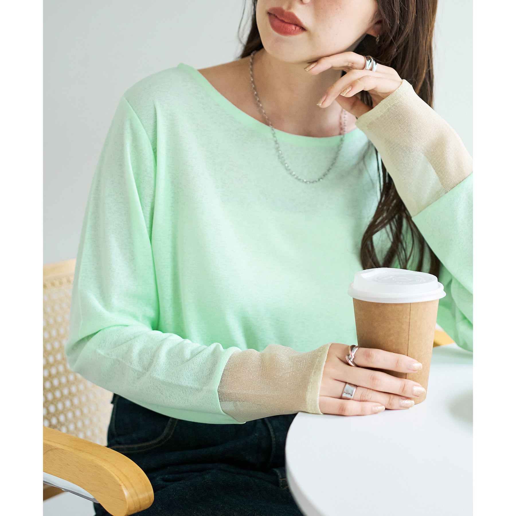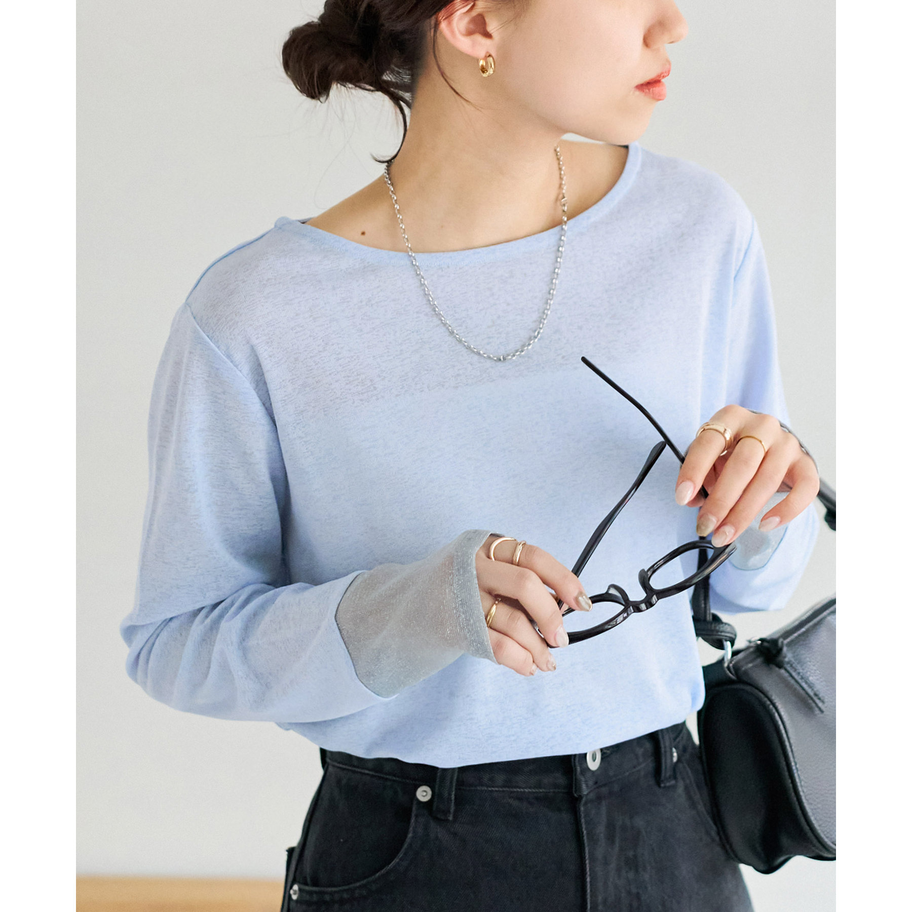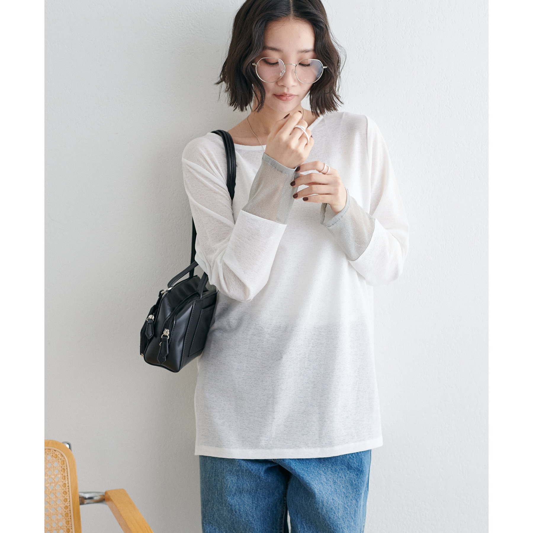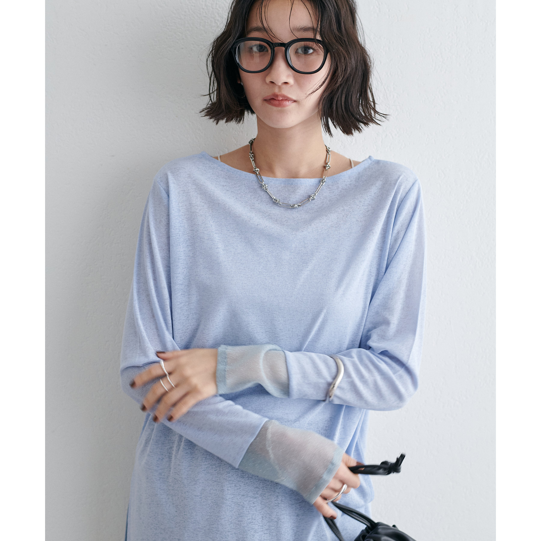 【万能インナー/WEB限定】ラメシアー袖切替プルオーバー