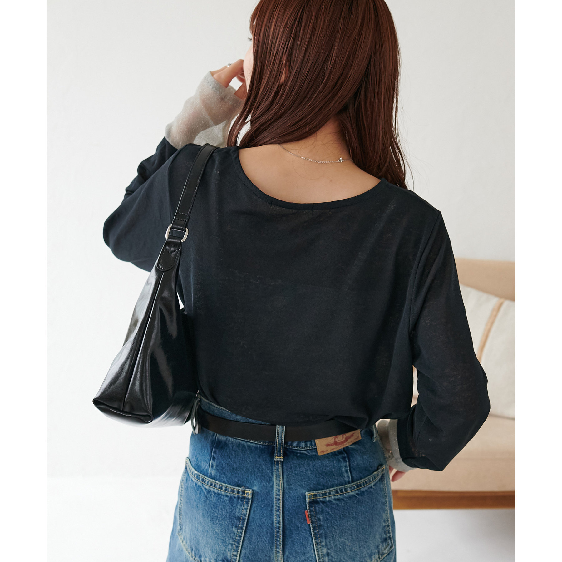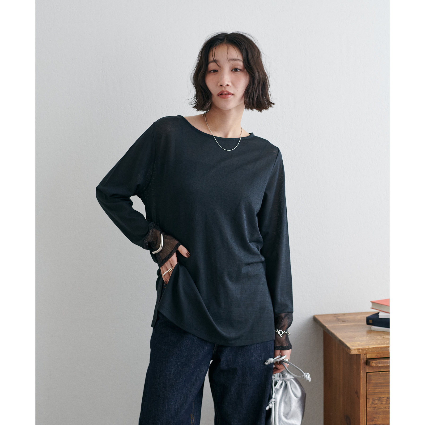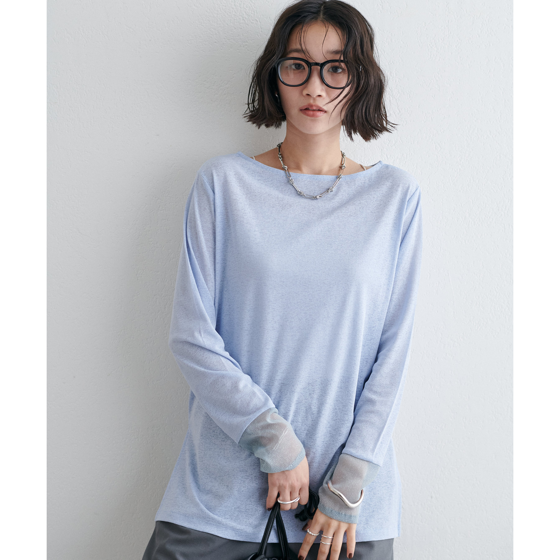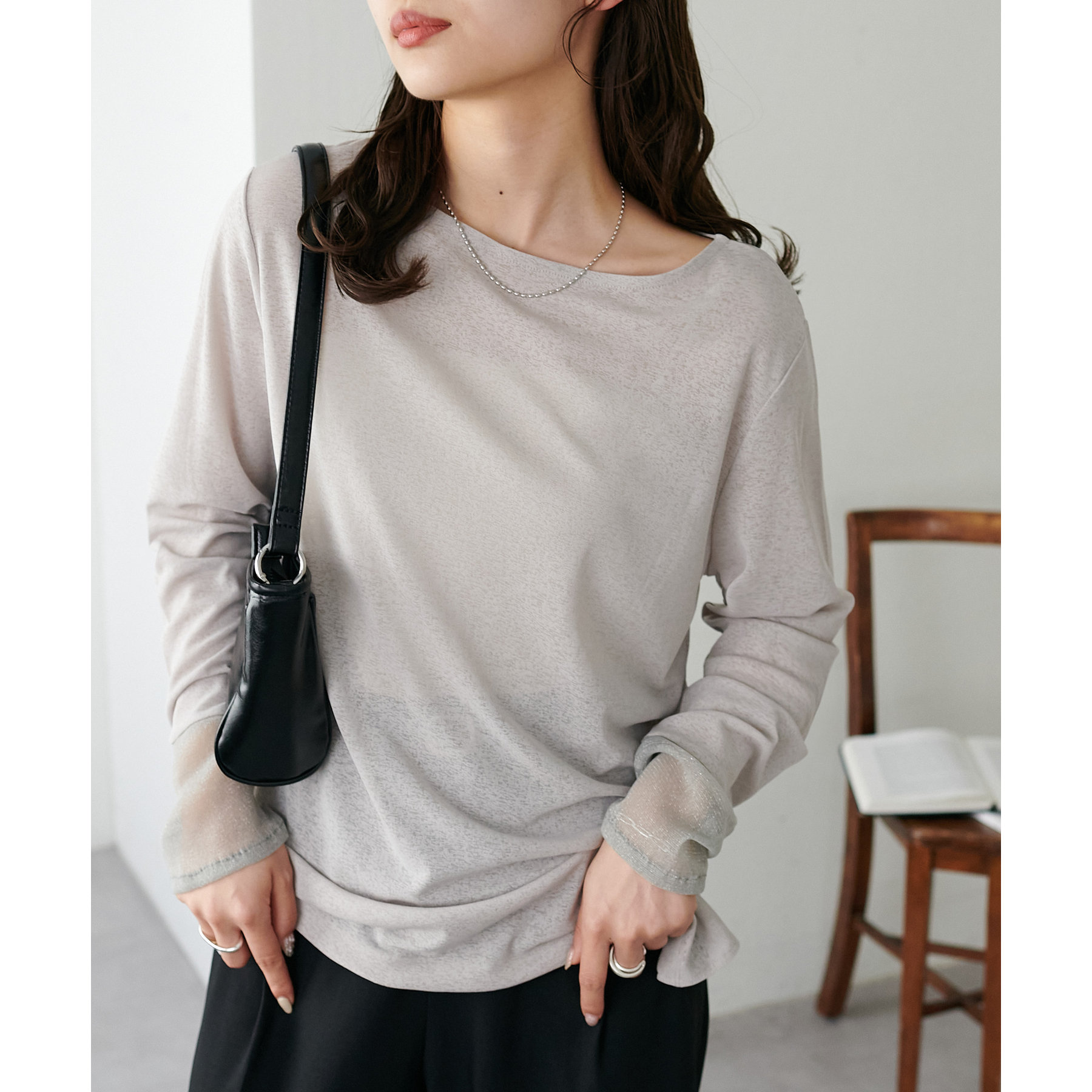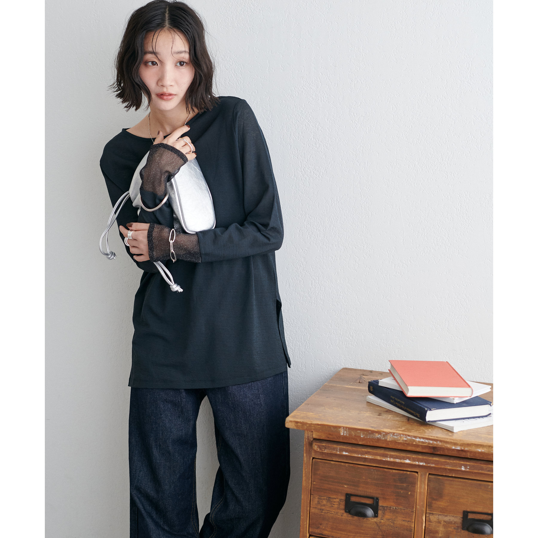 【万能インナー/WEB限定】ラメシアー袖切替プルオーバー