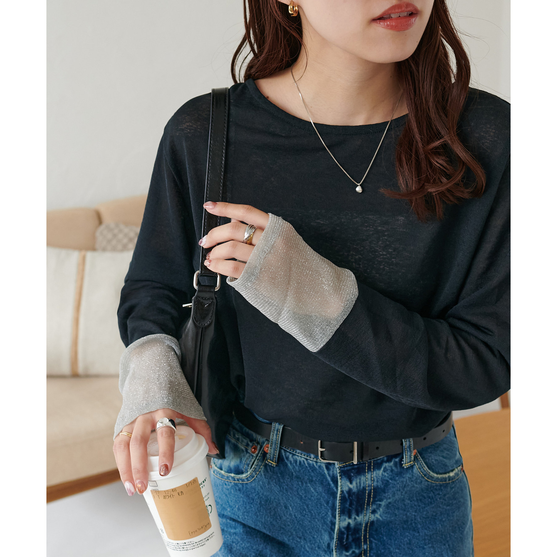 ・袖口にはトレンドのラメが施され程よいシアー感で抜け感のある1枚です。