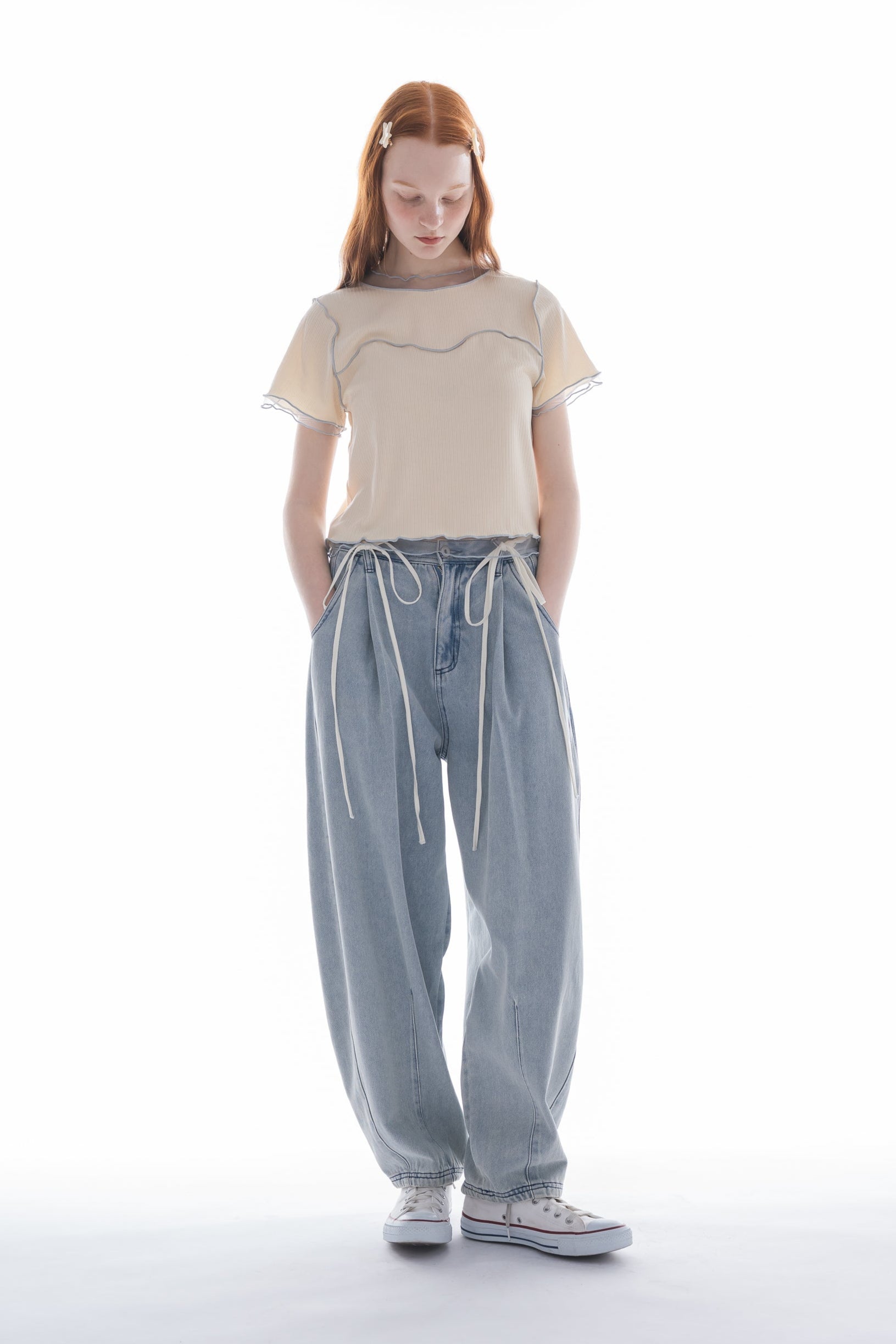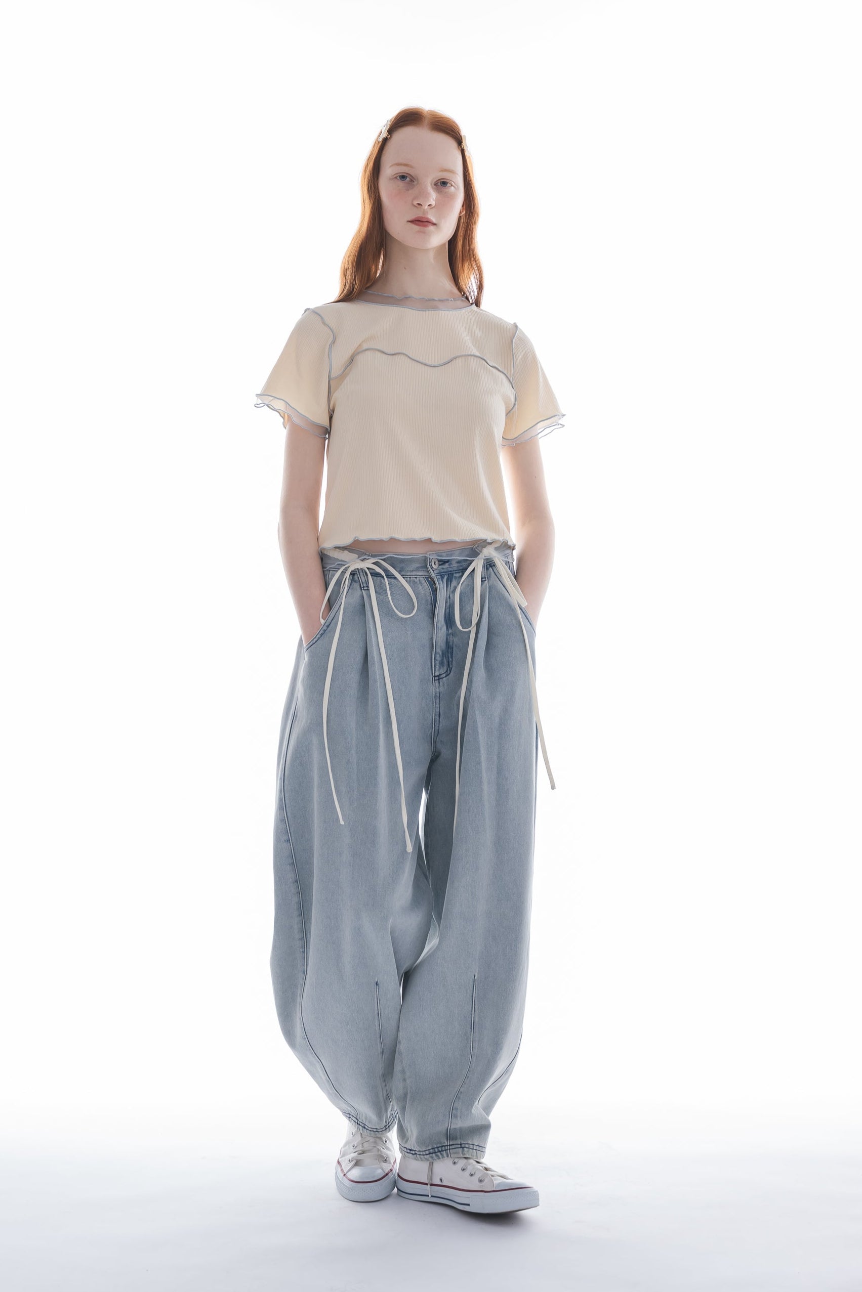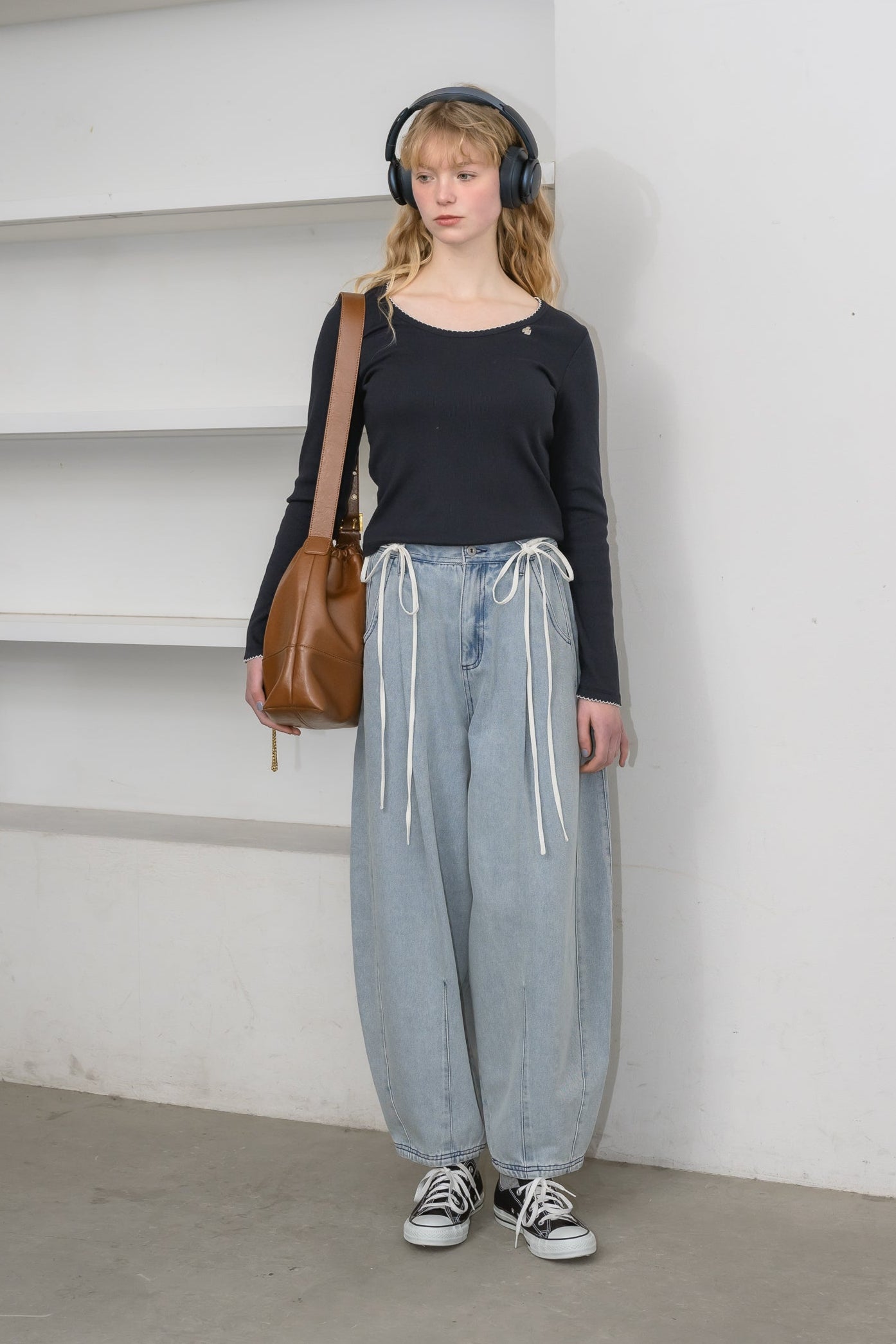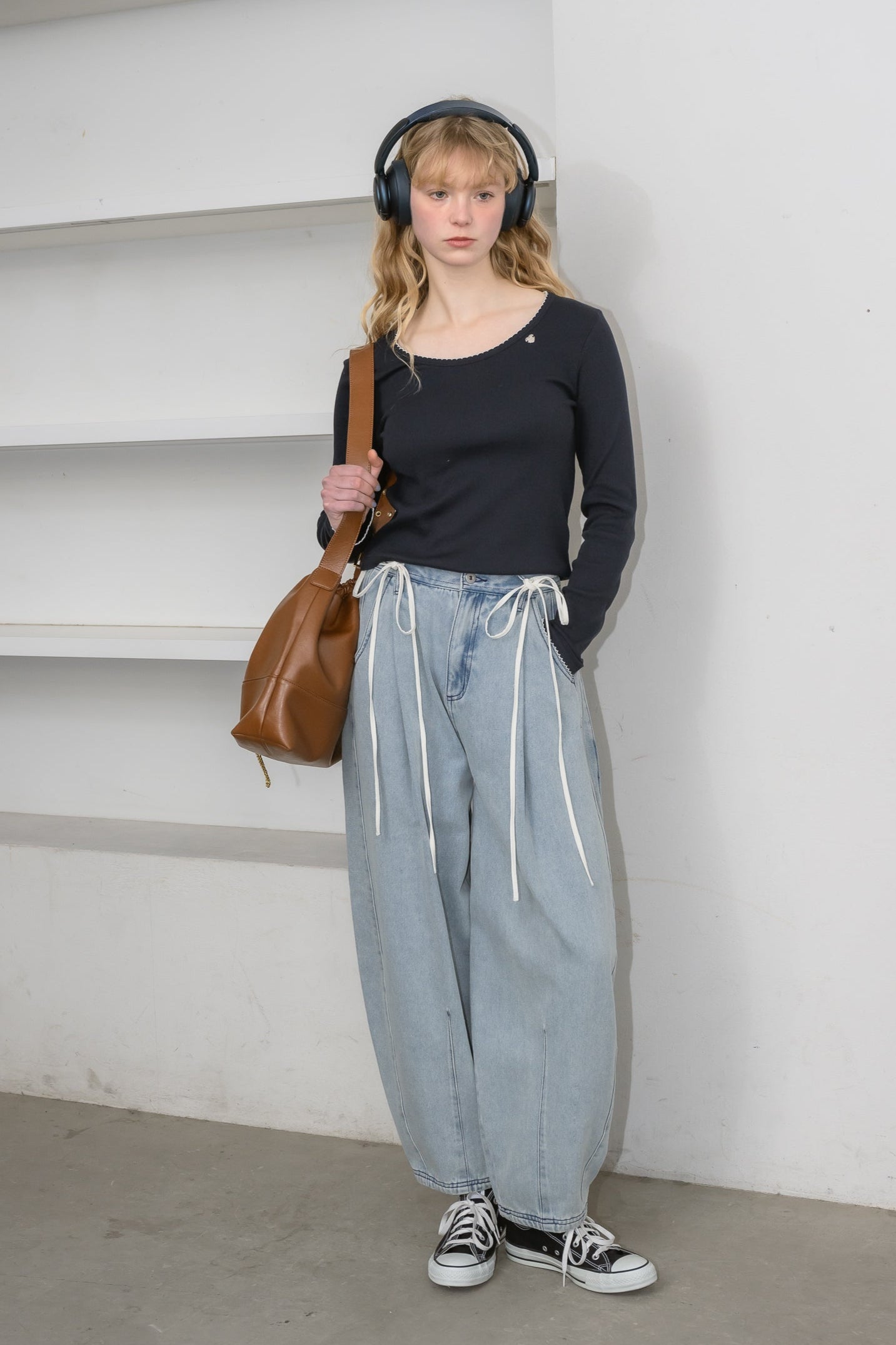 女性らしさとカジュアルさを兼ね備えたデニムパンツ。