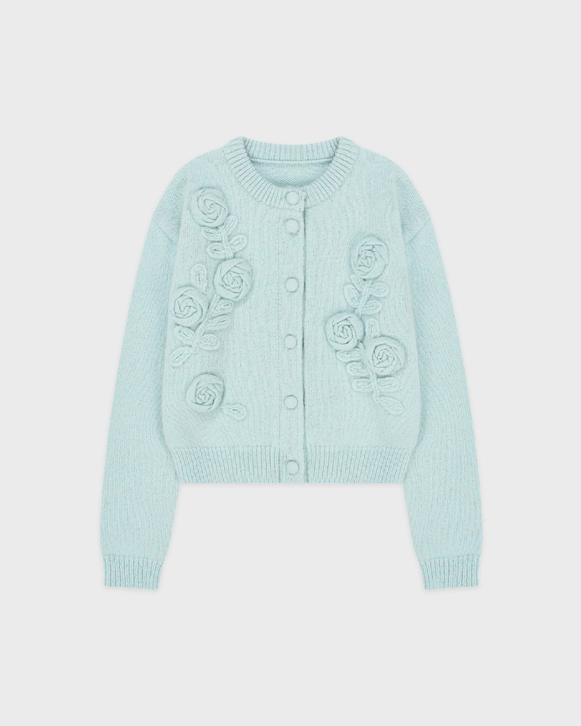 Rose Artwork Hairy Cardigan (Mint)