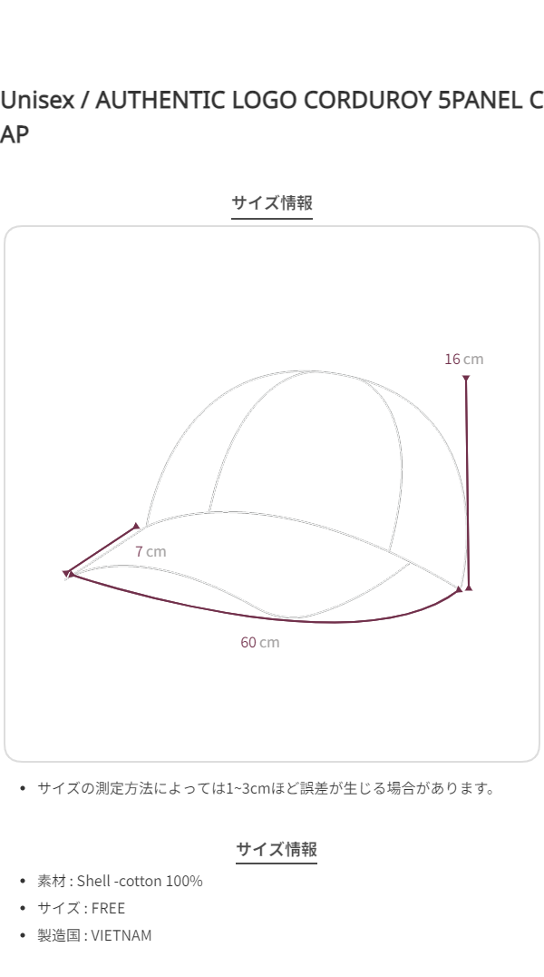 AUTHENTIC LOGO CORDUROY 5PANEL CAP - Navy