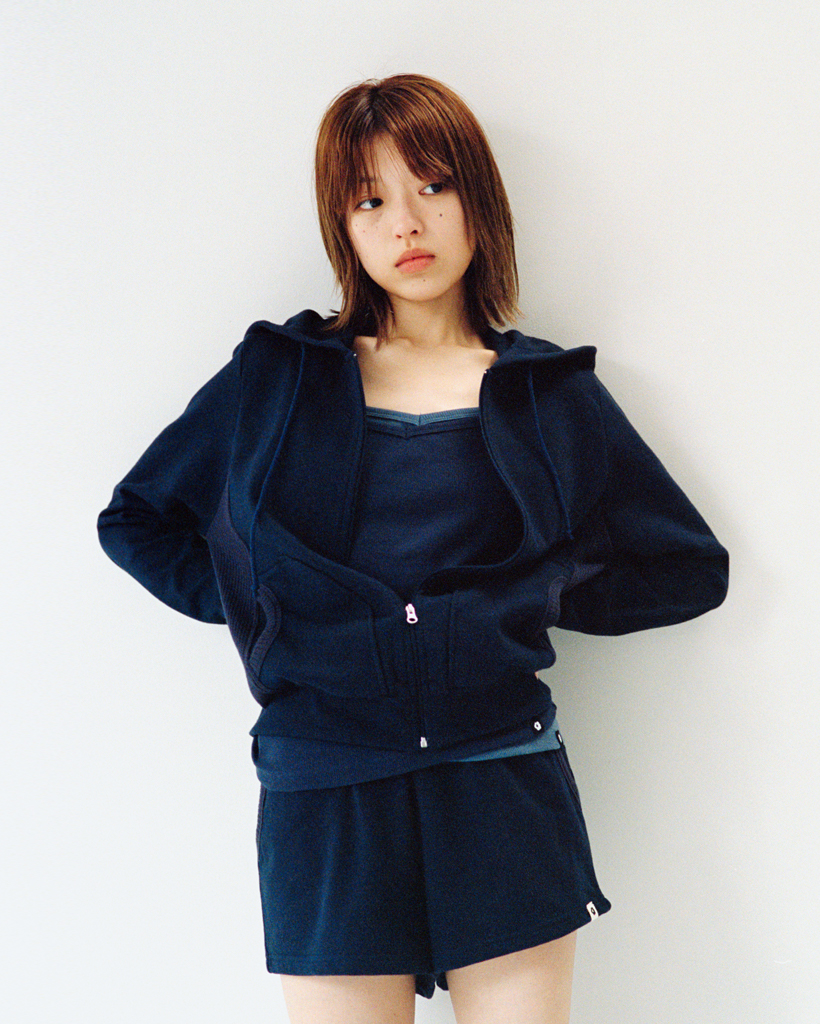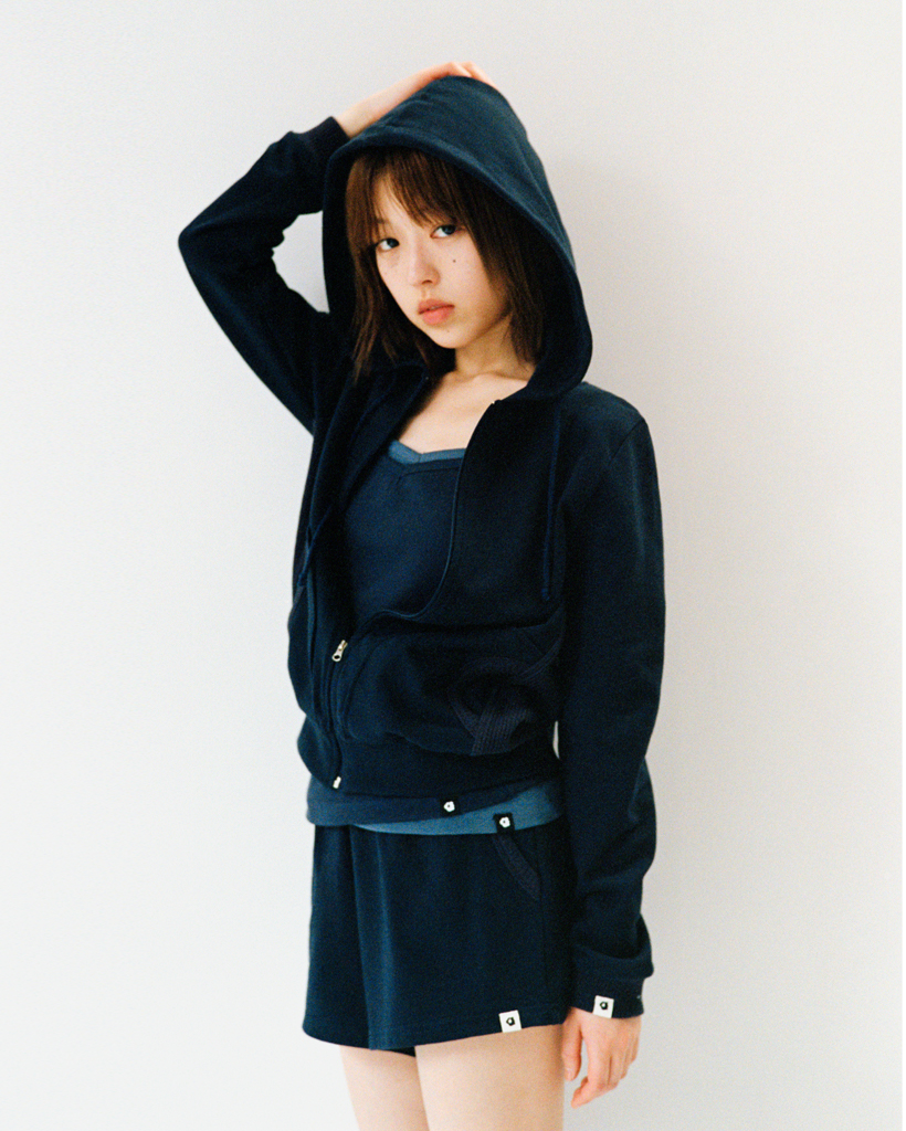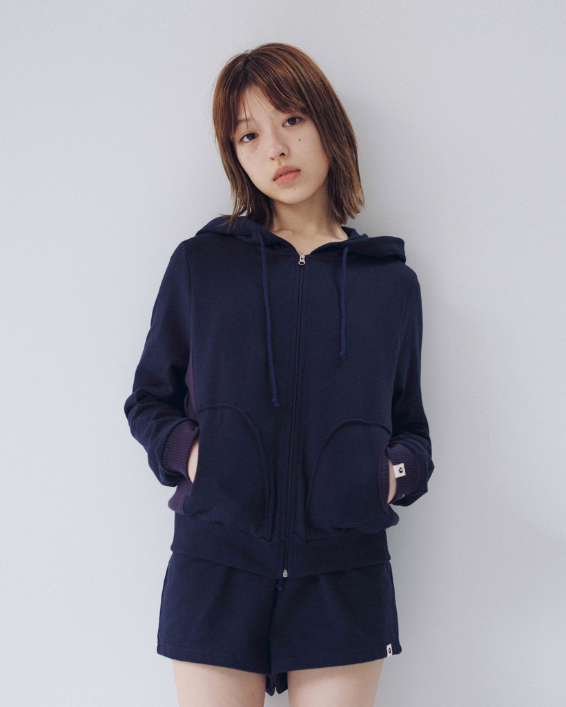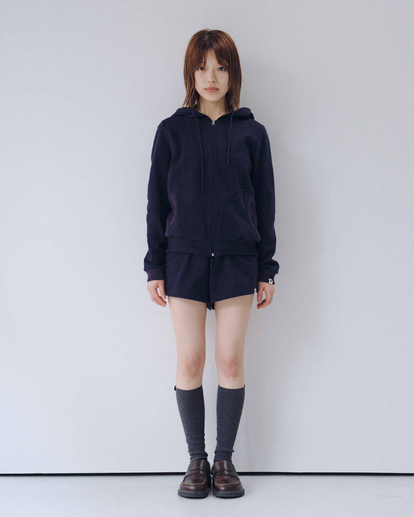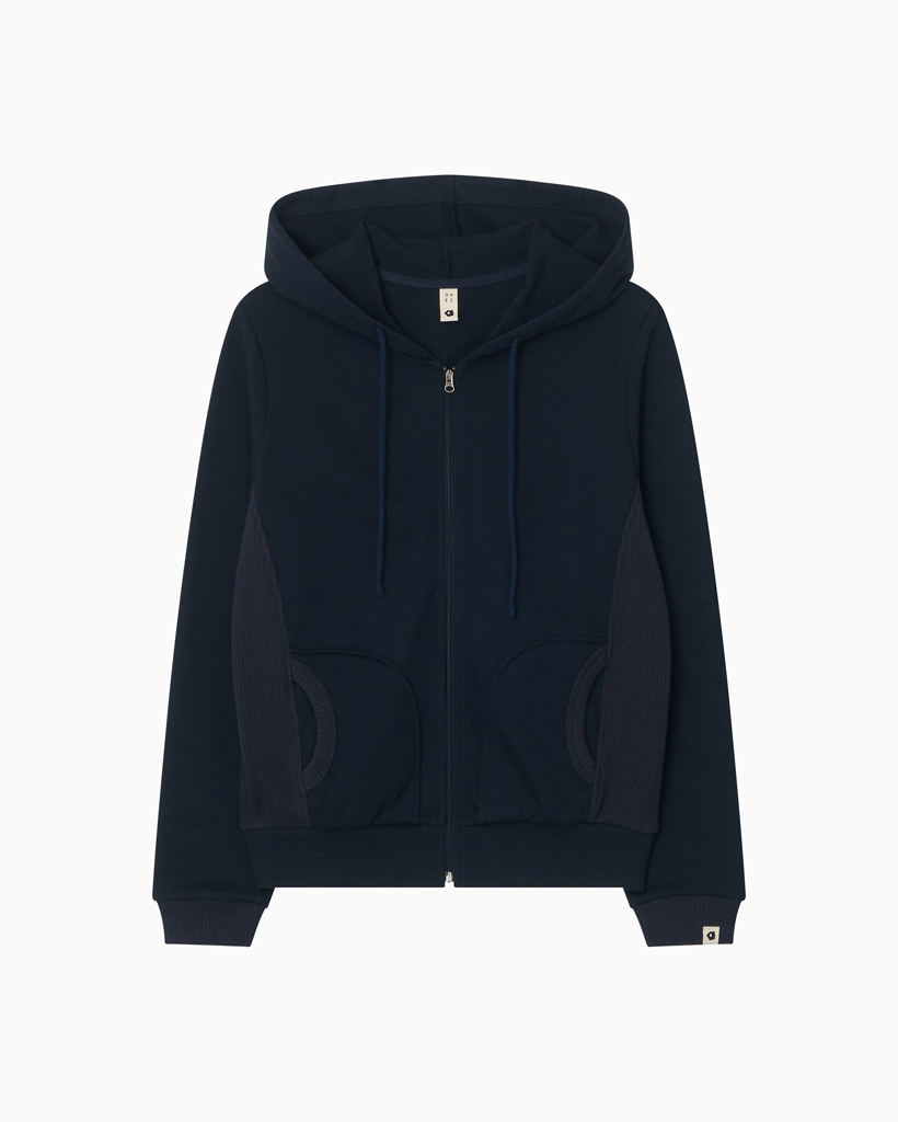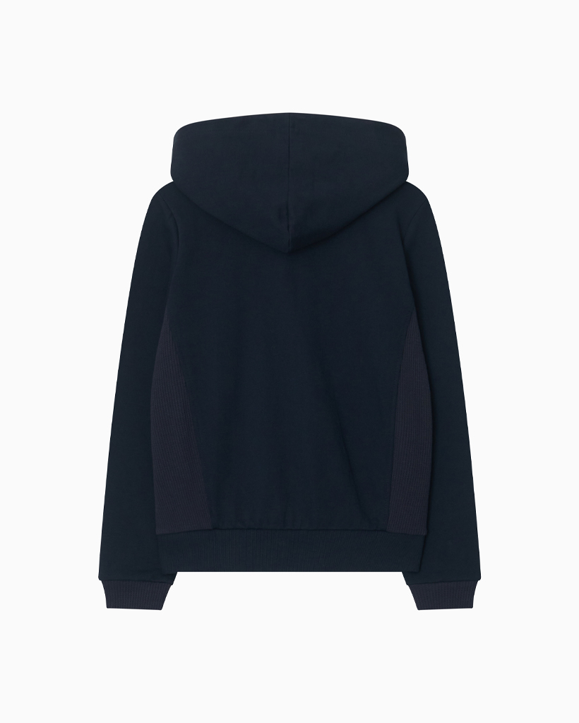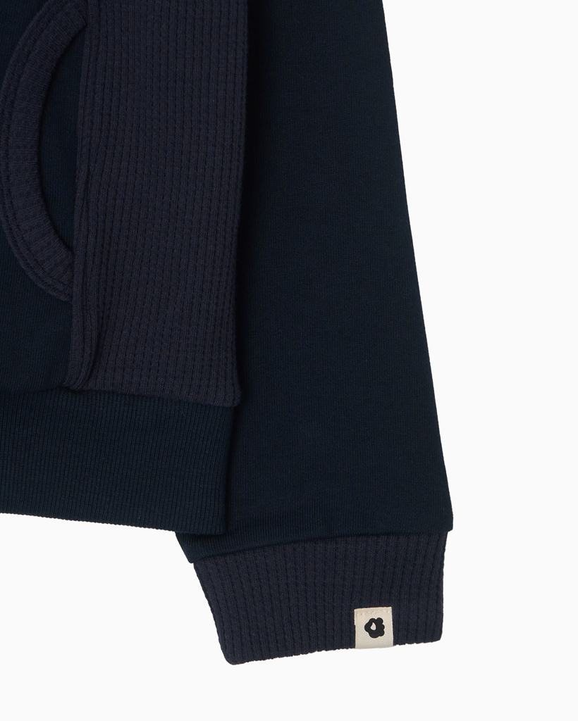 TWO-TONE WAFFLE HOODED ZIP-UP, NAVY
