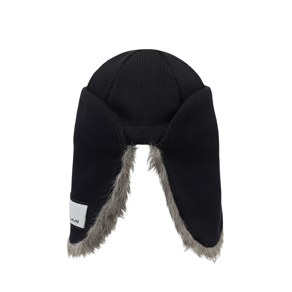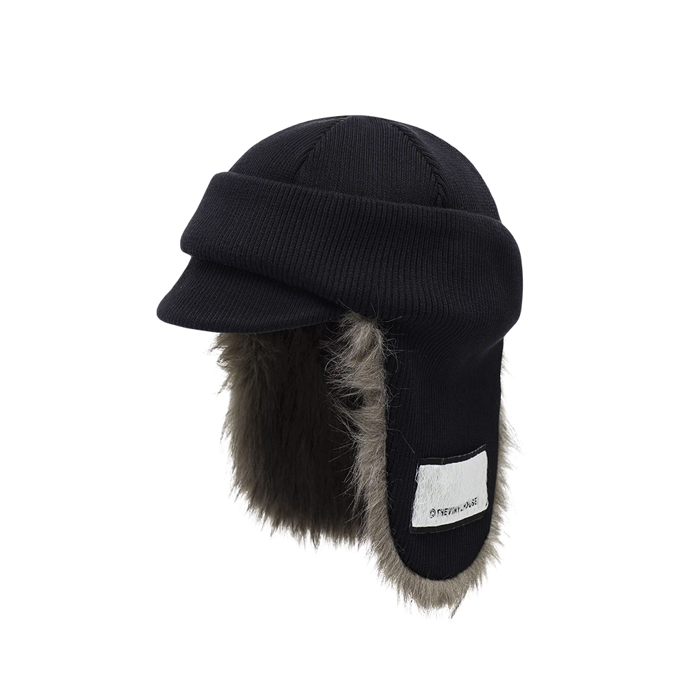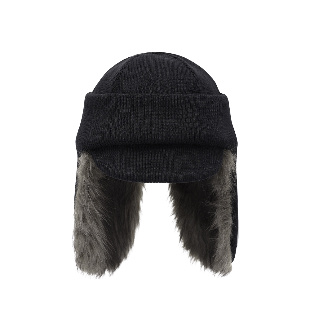 FUR EARFLAP BEANIE BLACK