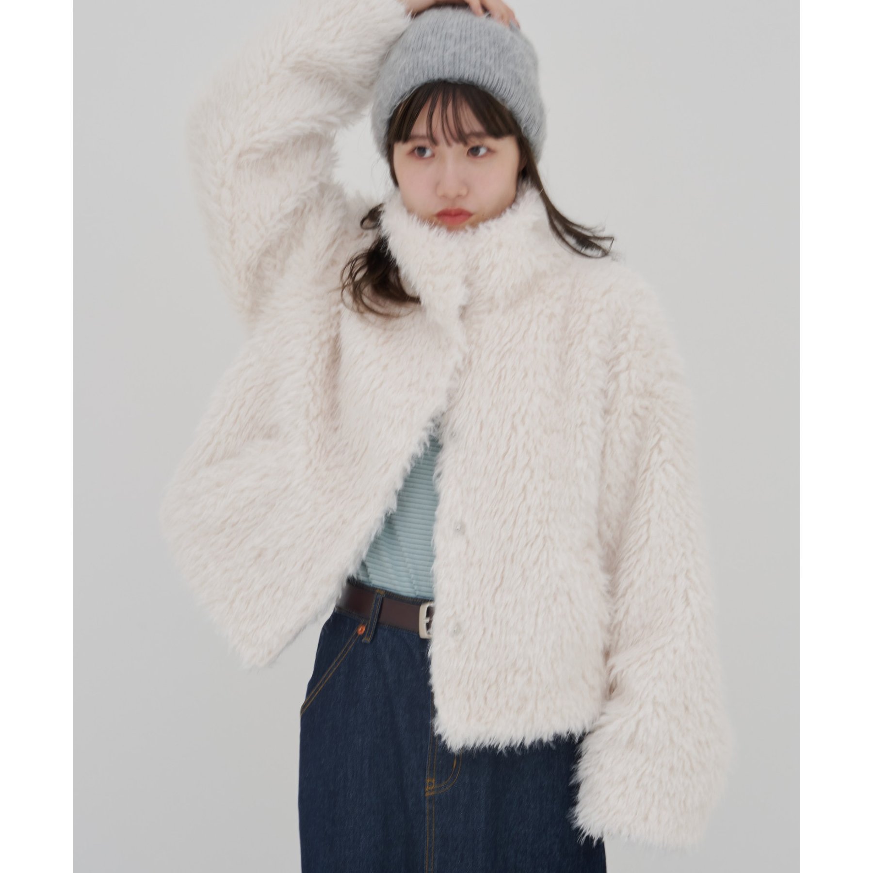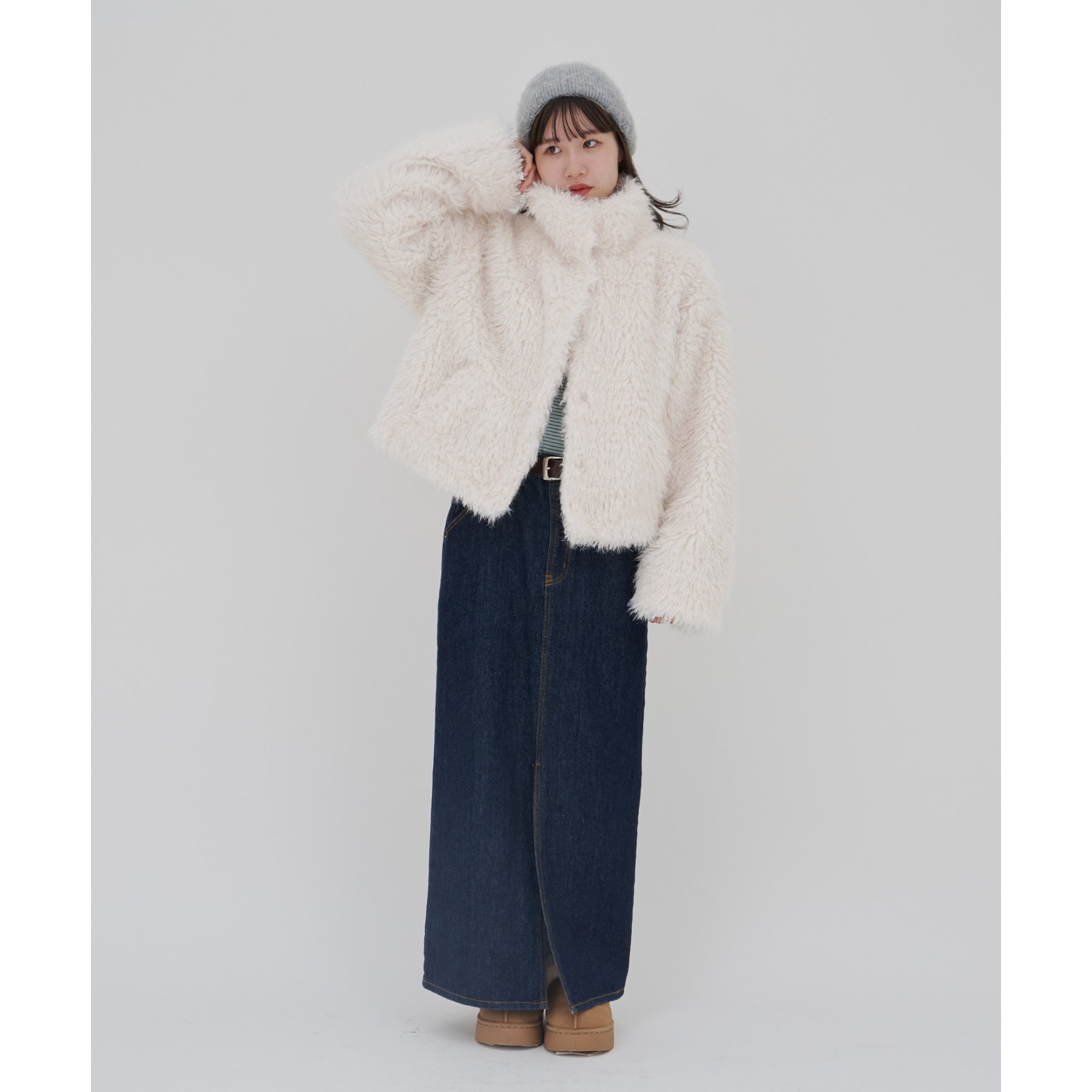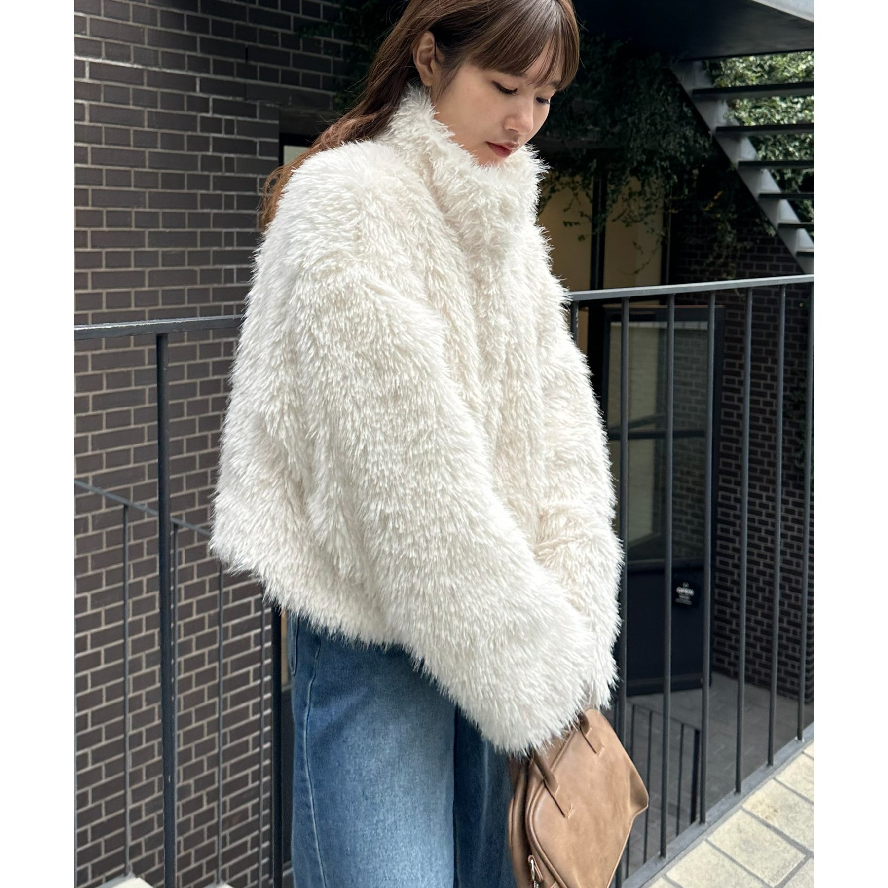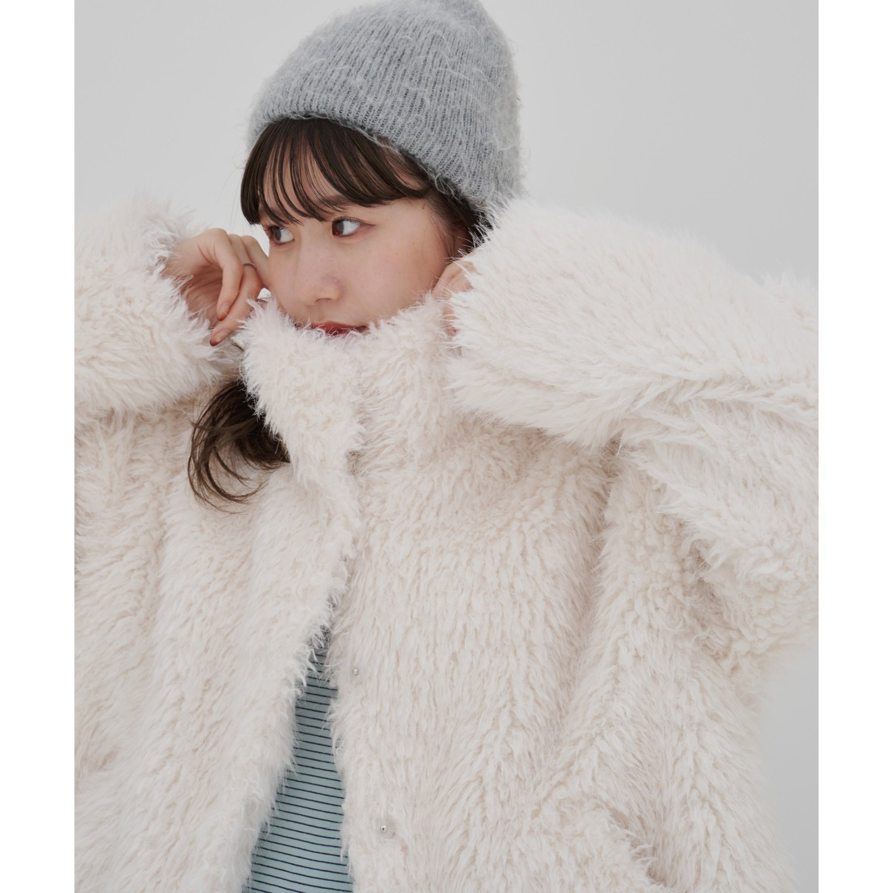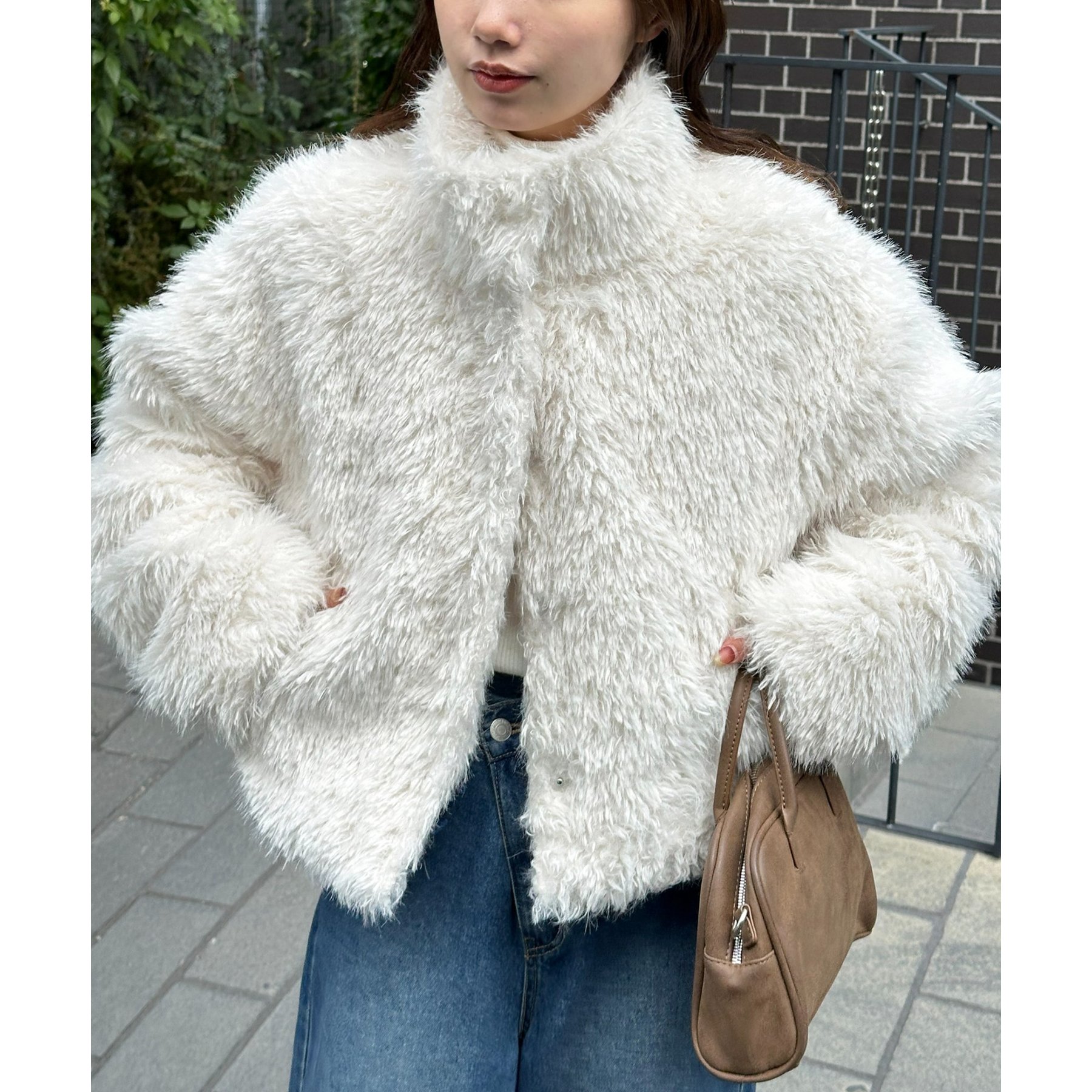 アイボリーは毛足の長いシャギー素材で、コーデを華やかに見せてくれます!
