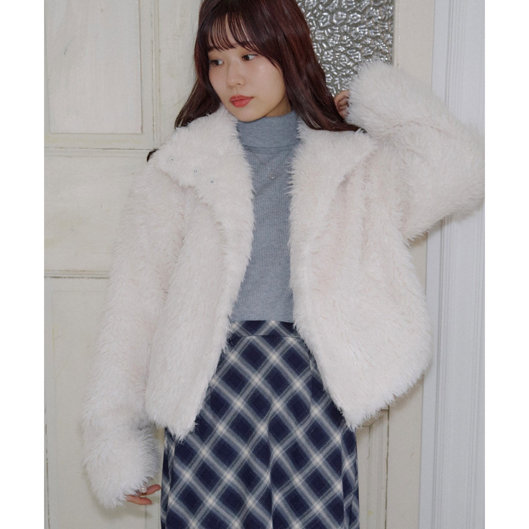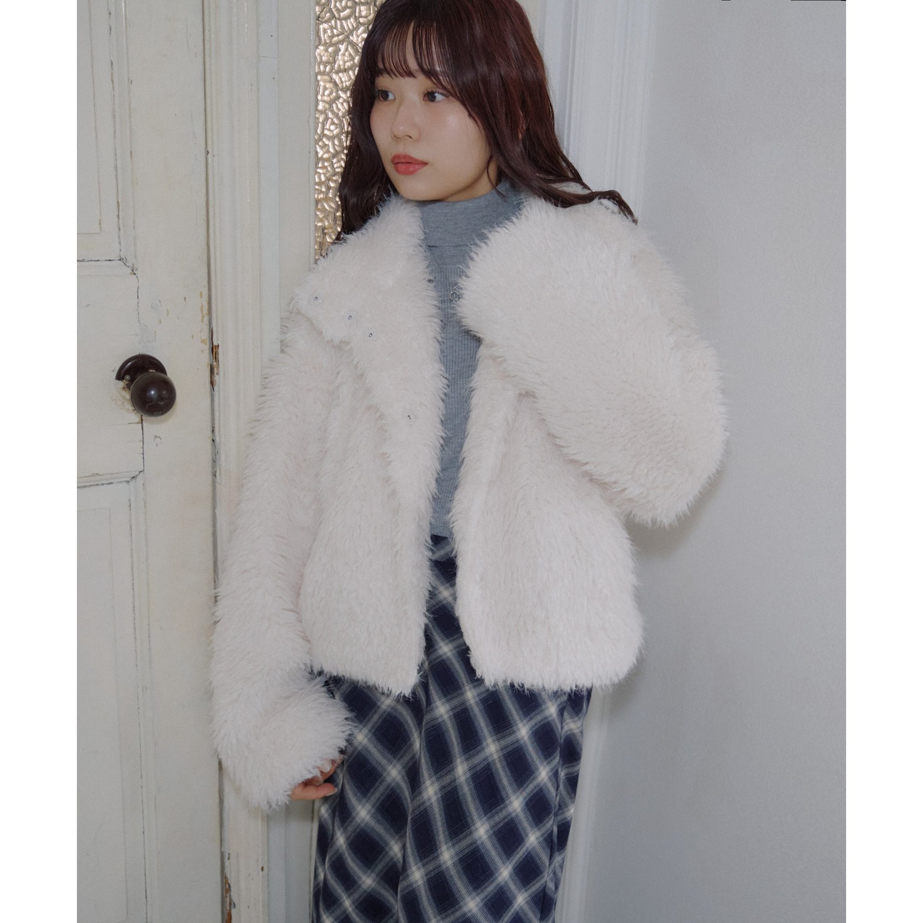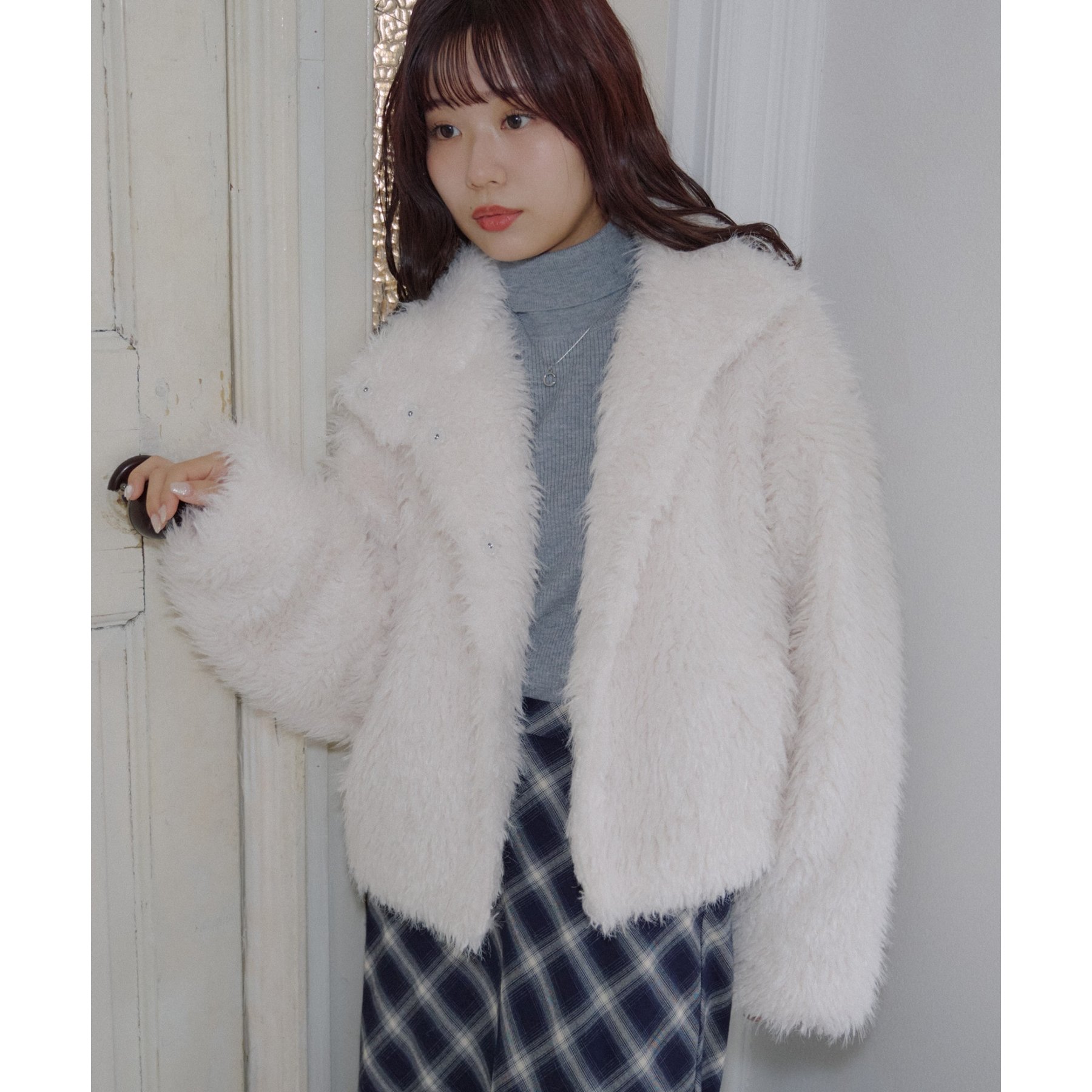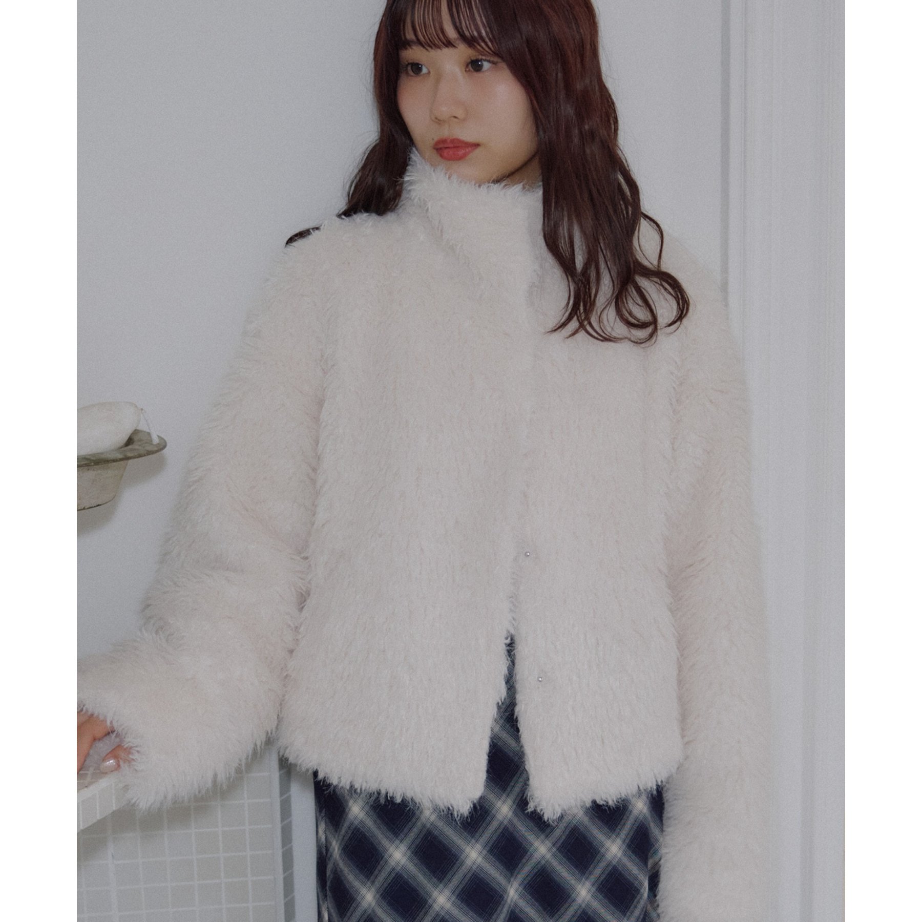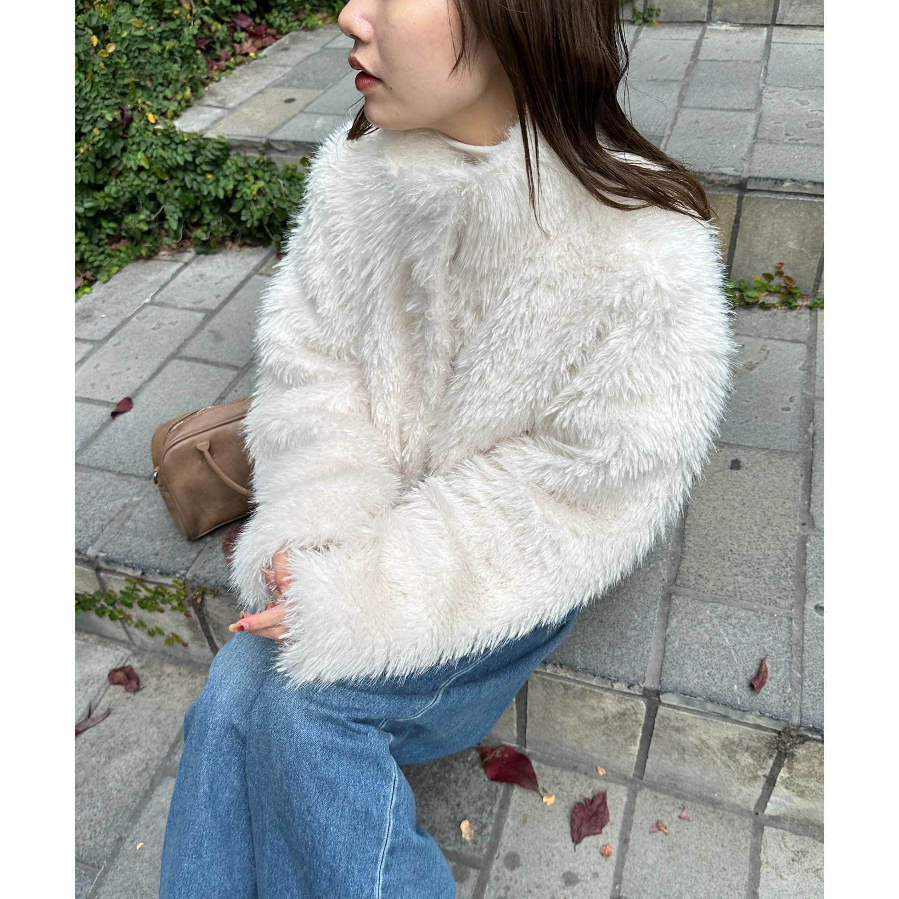 アイボリーは毛足の長いシャギー素材で、コーデを華やかに見せてくれます!