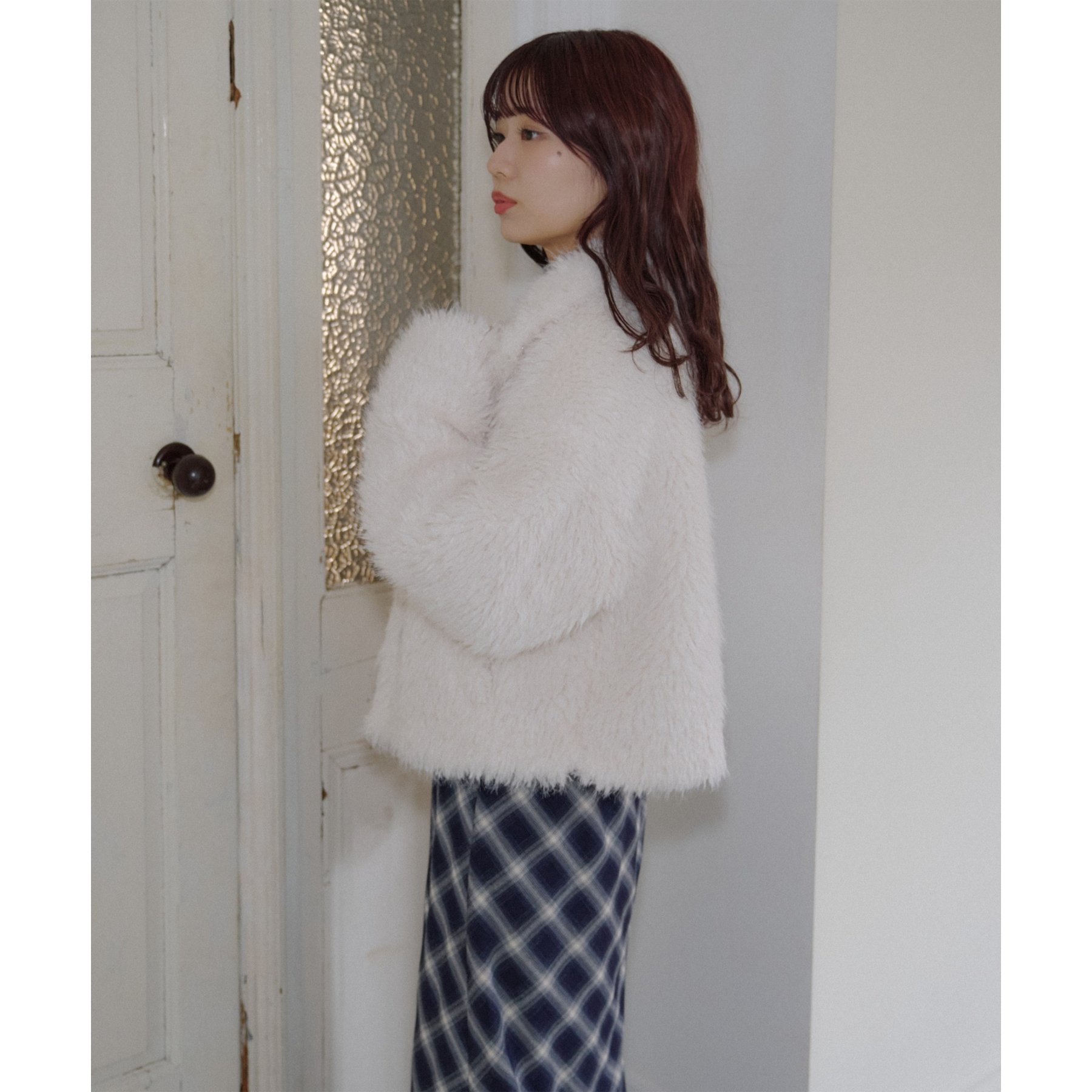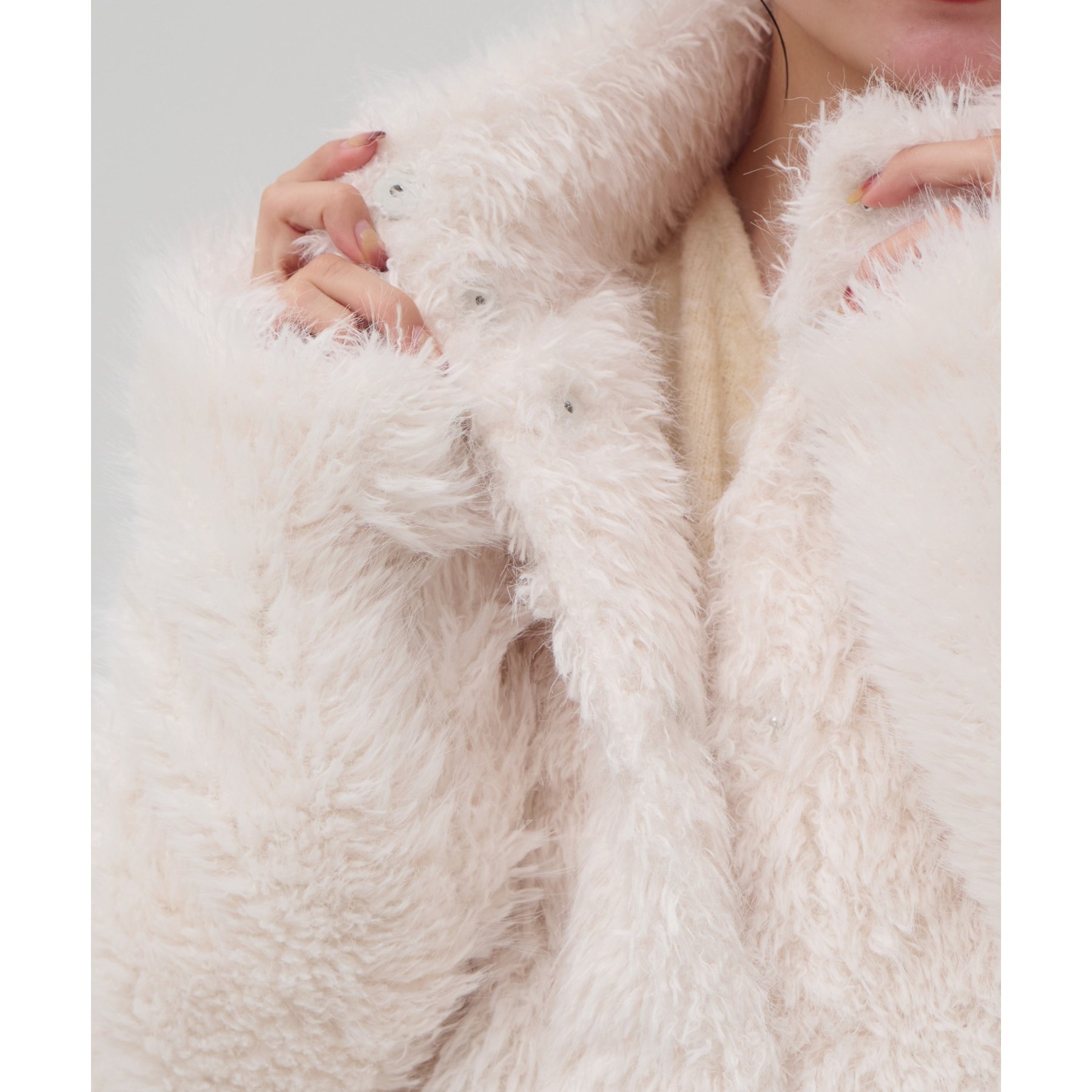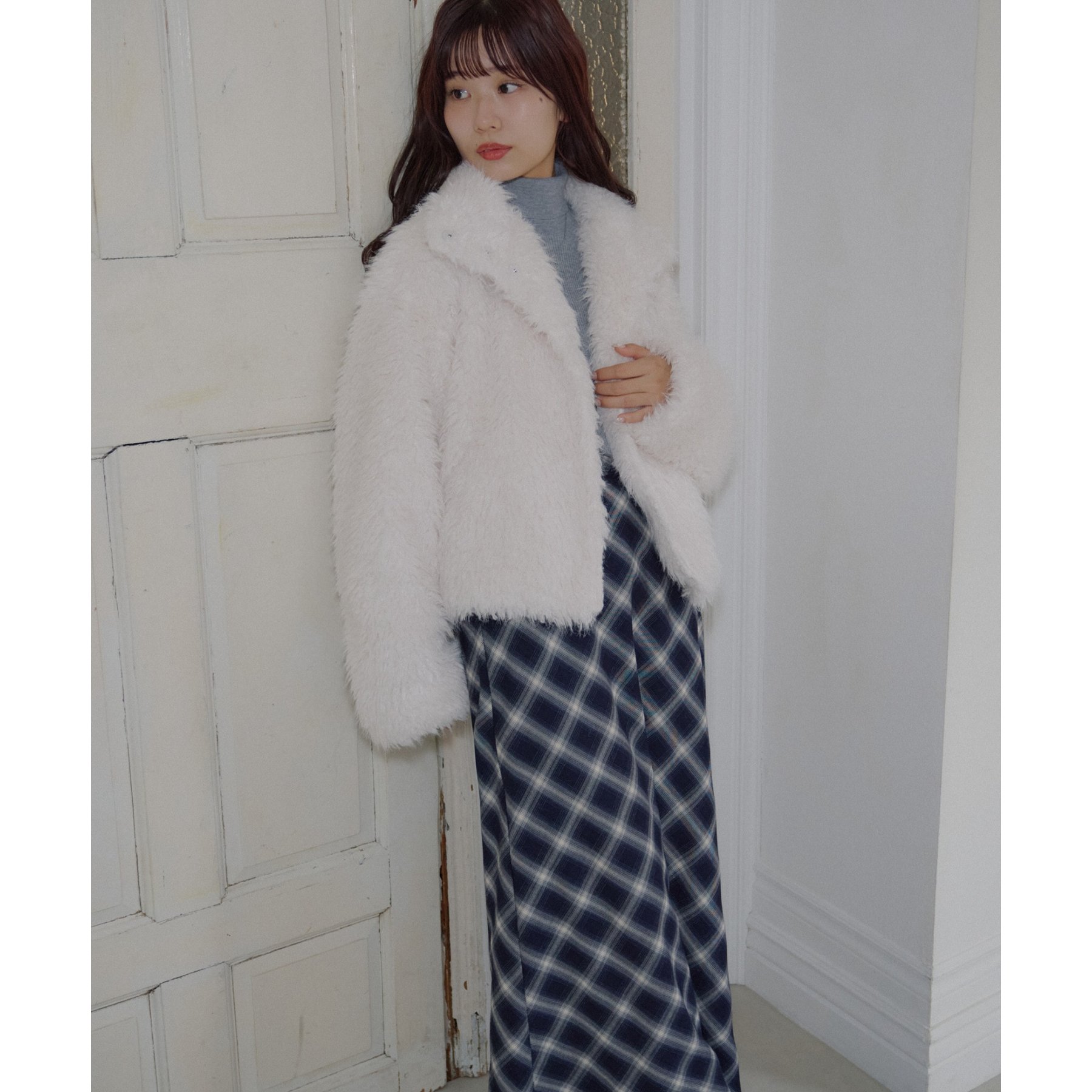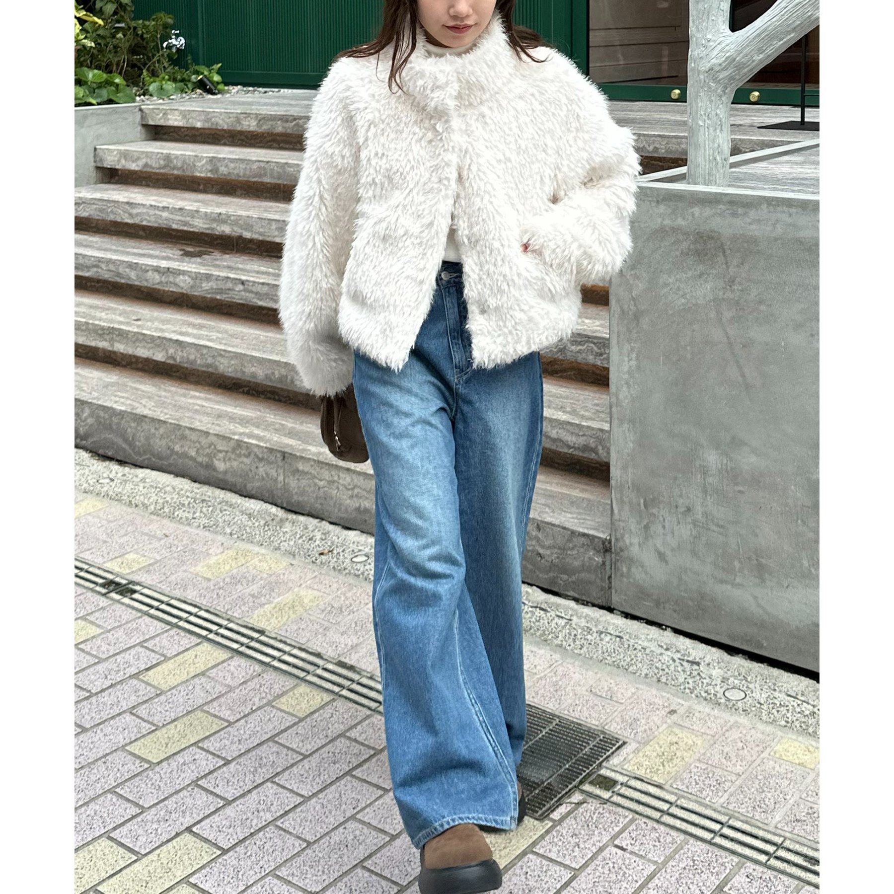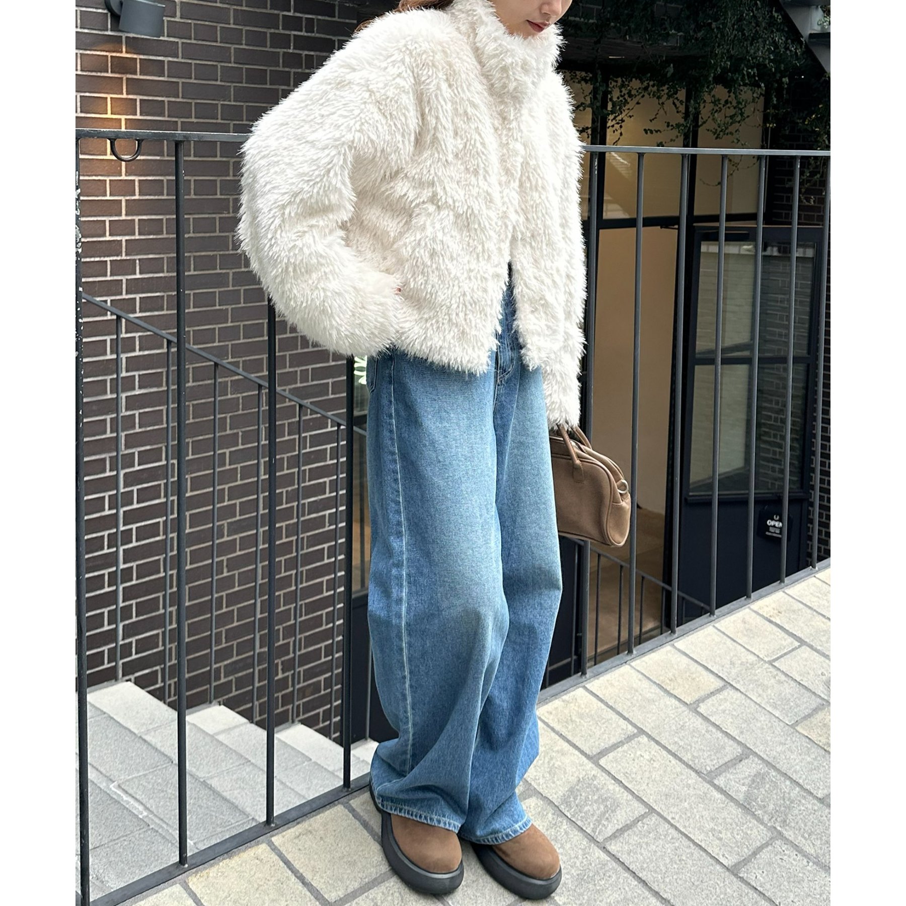 アイボリーは毛足の長いシャギー素材で、コーデを華やかに見せてくれます!
