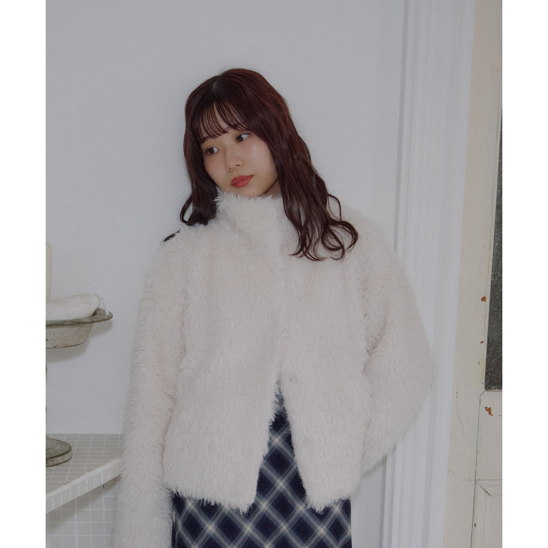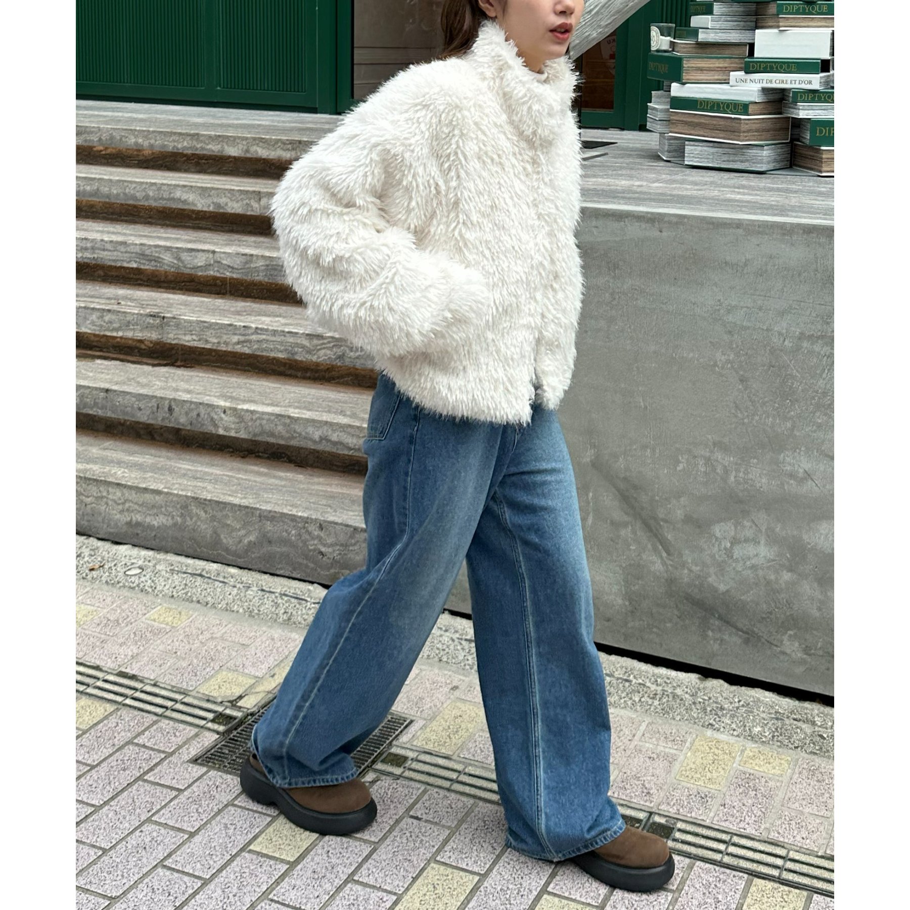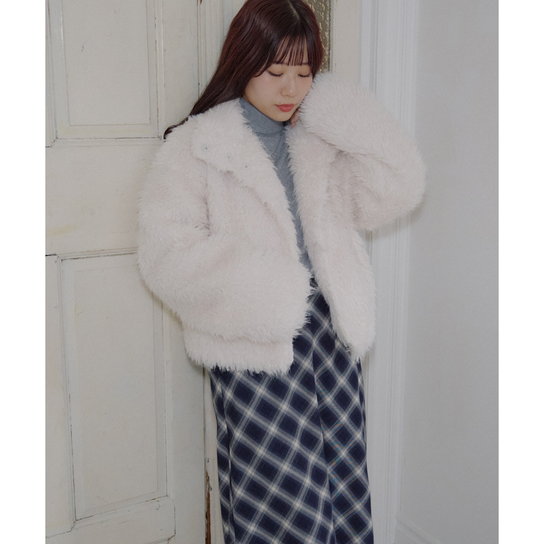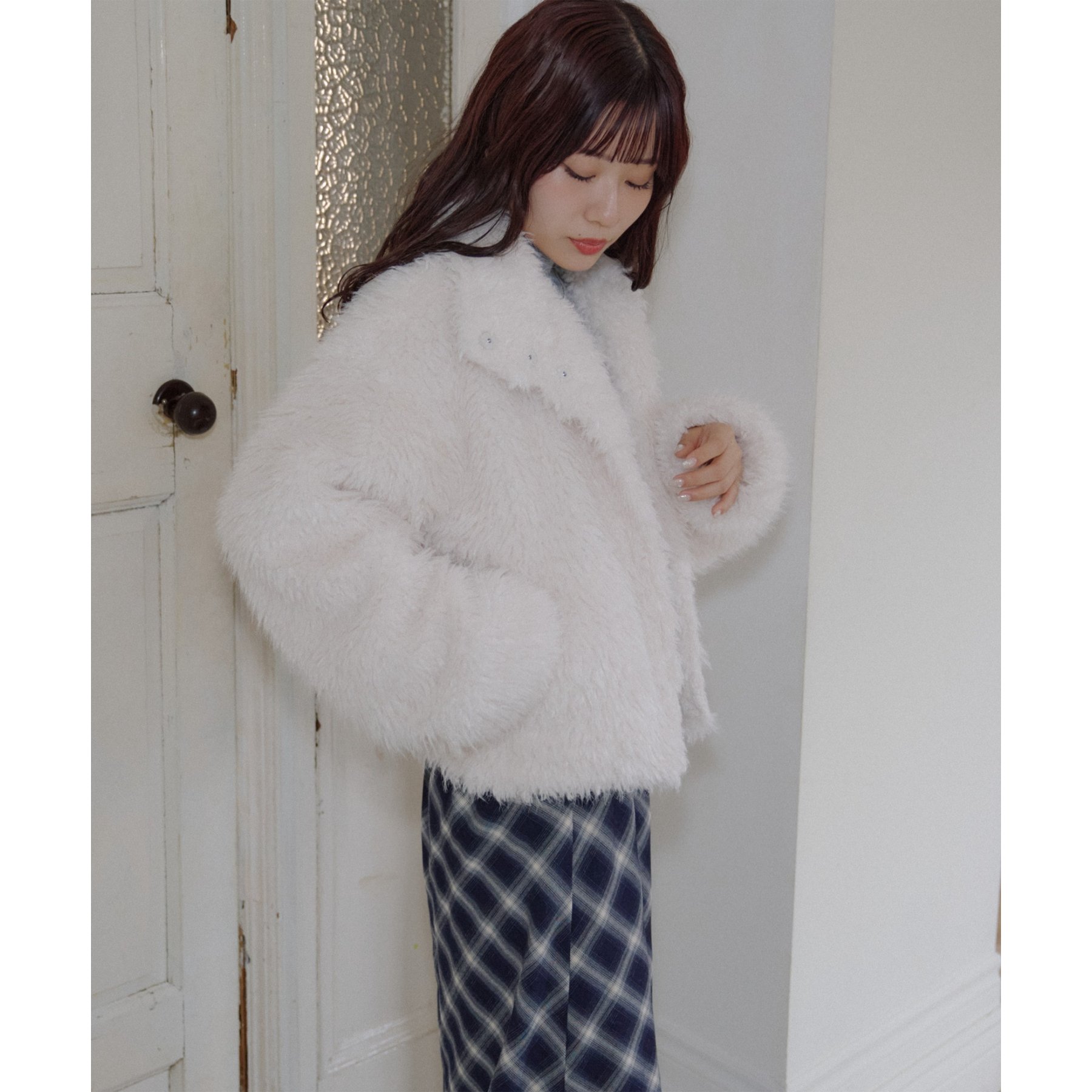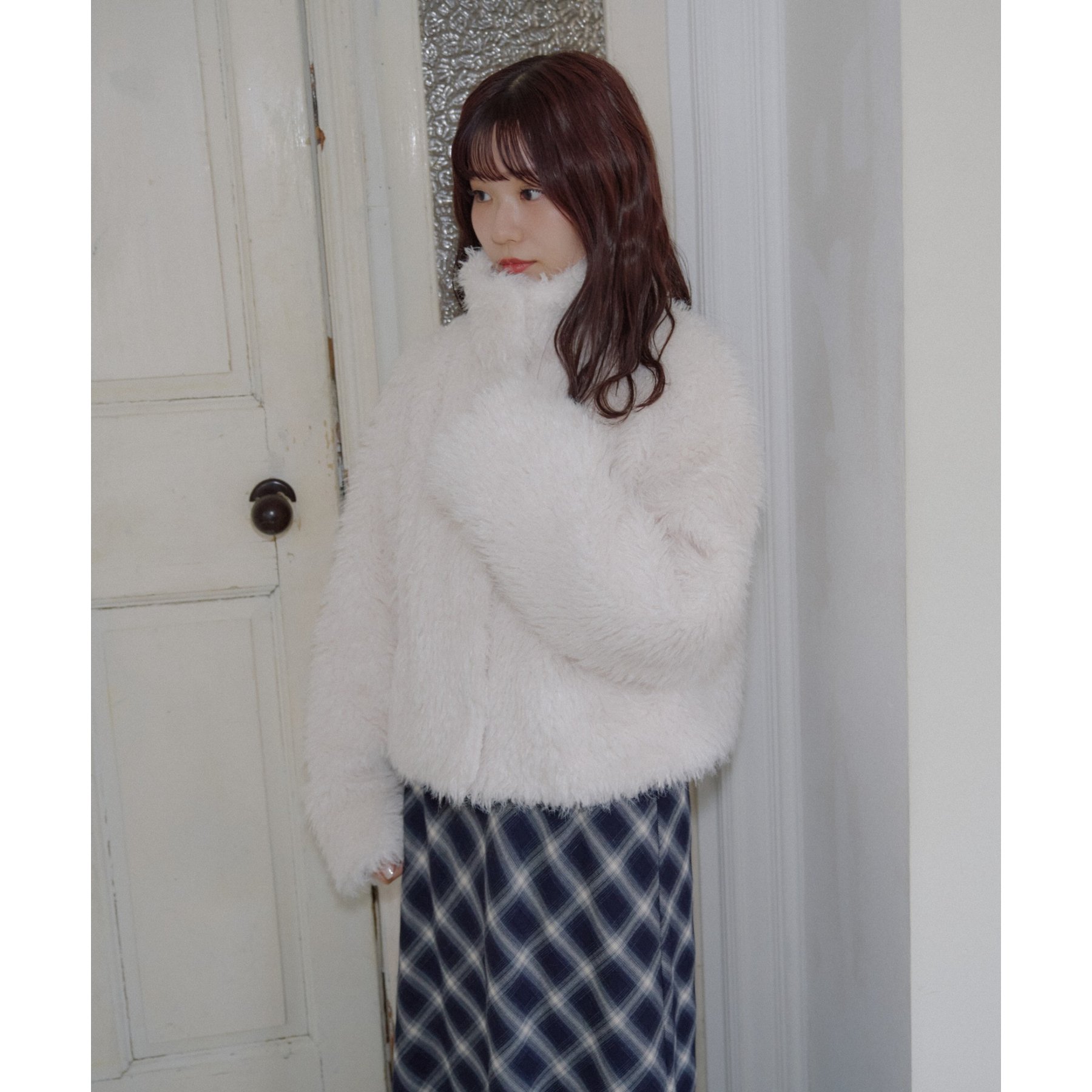 アイボリーは毛足の長いシャギー素材で、コーデを華やかに見せてくれます!