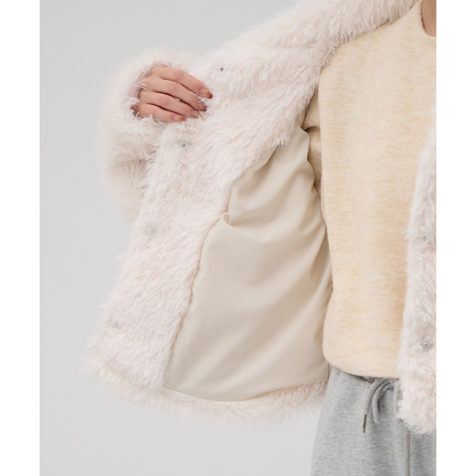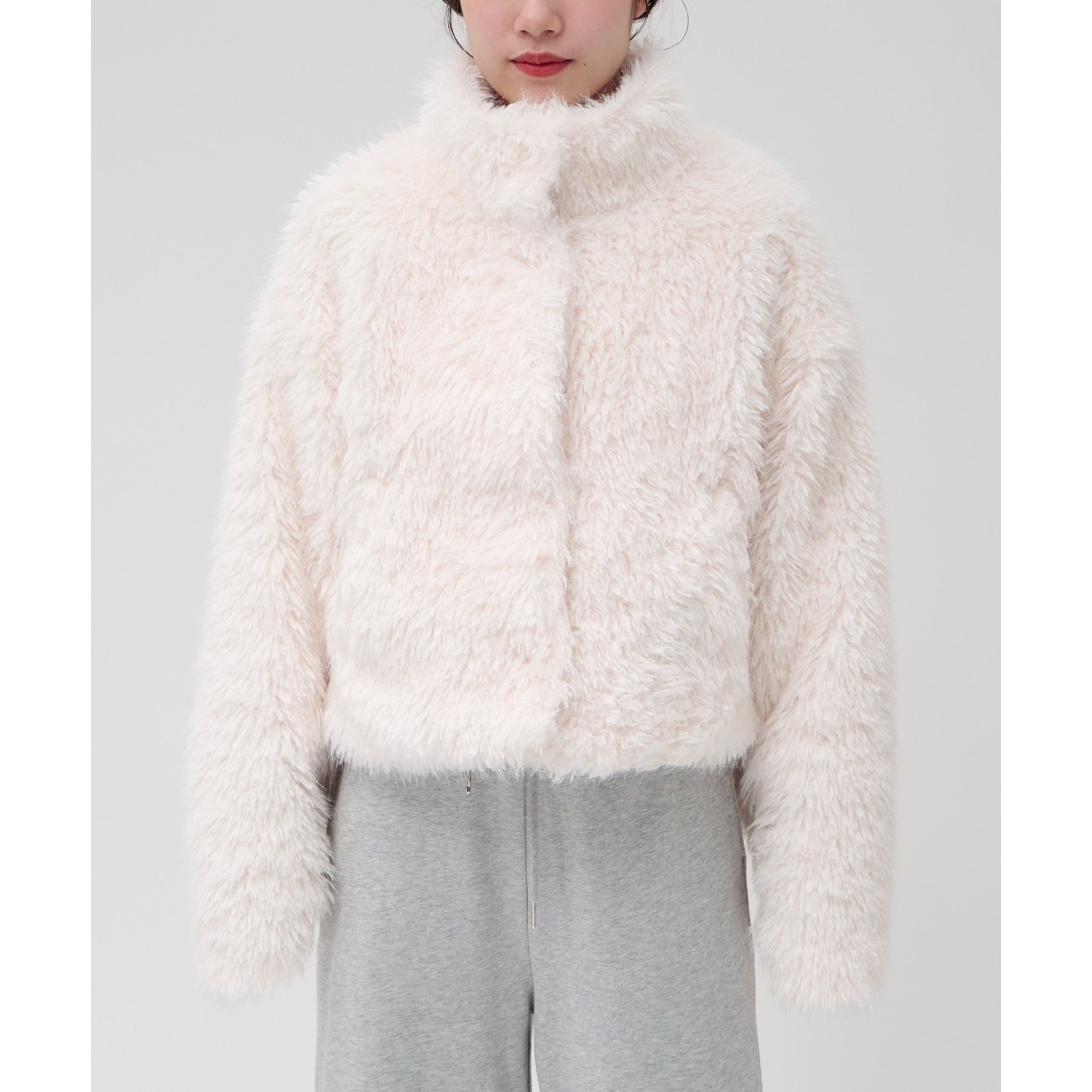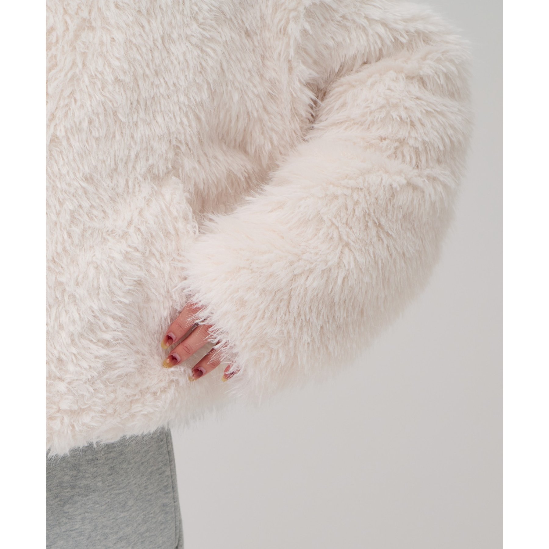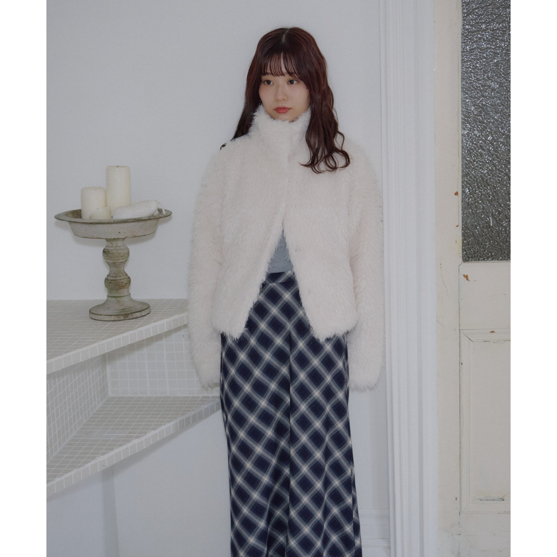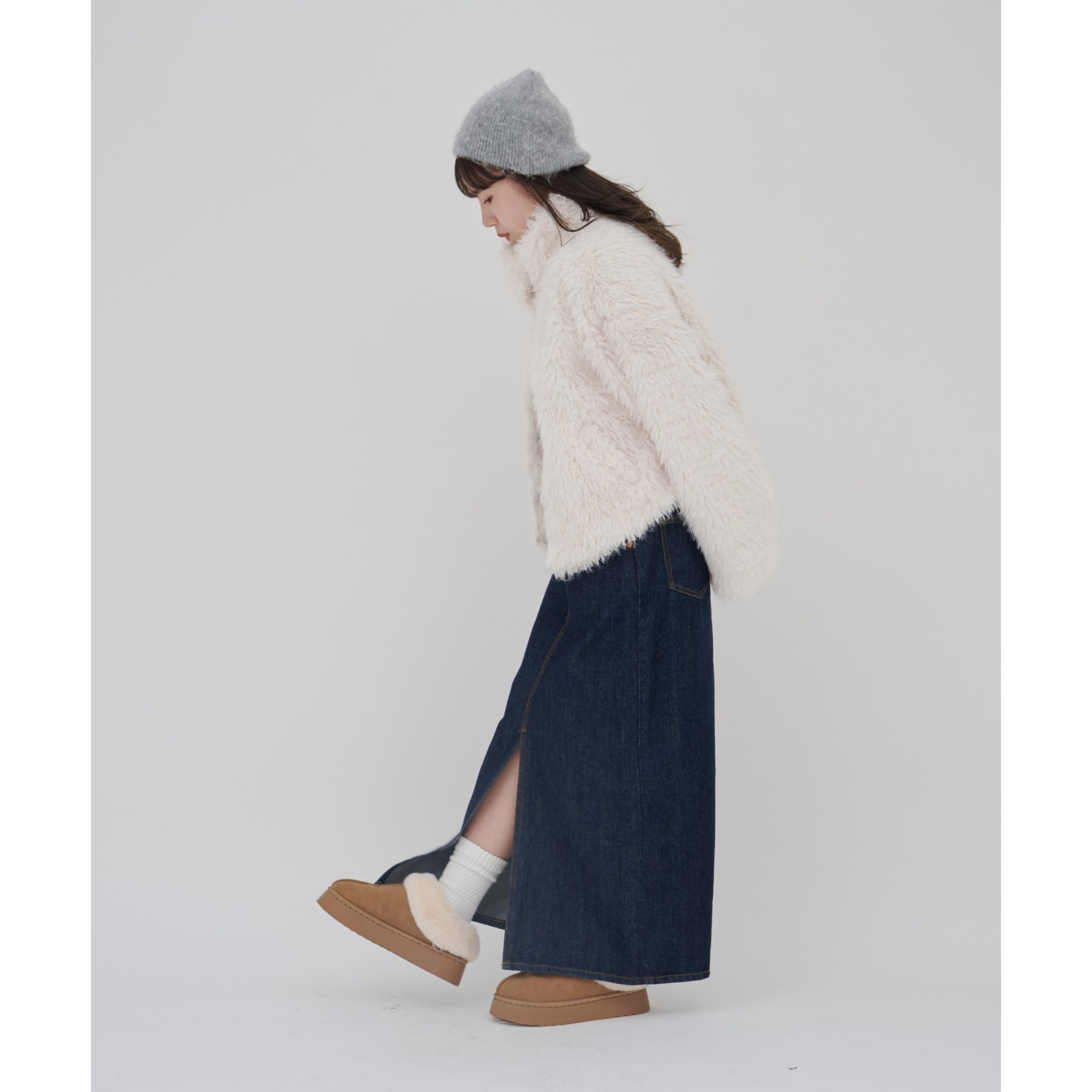 アイボリーは毛足の長いシャギー素材で、コーデを華やかに見せてくれます!