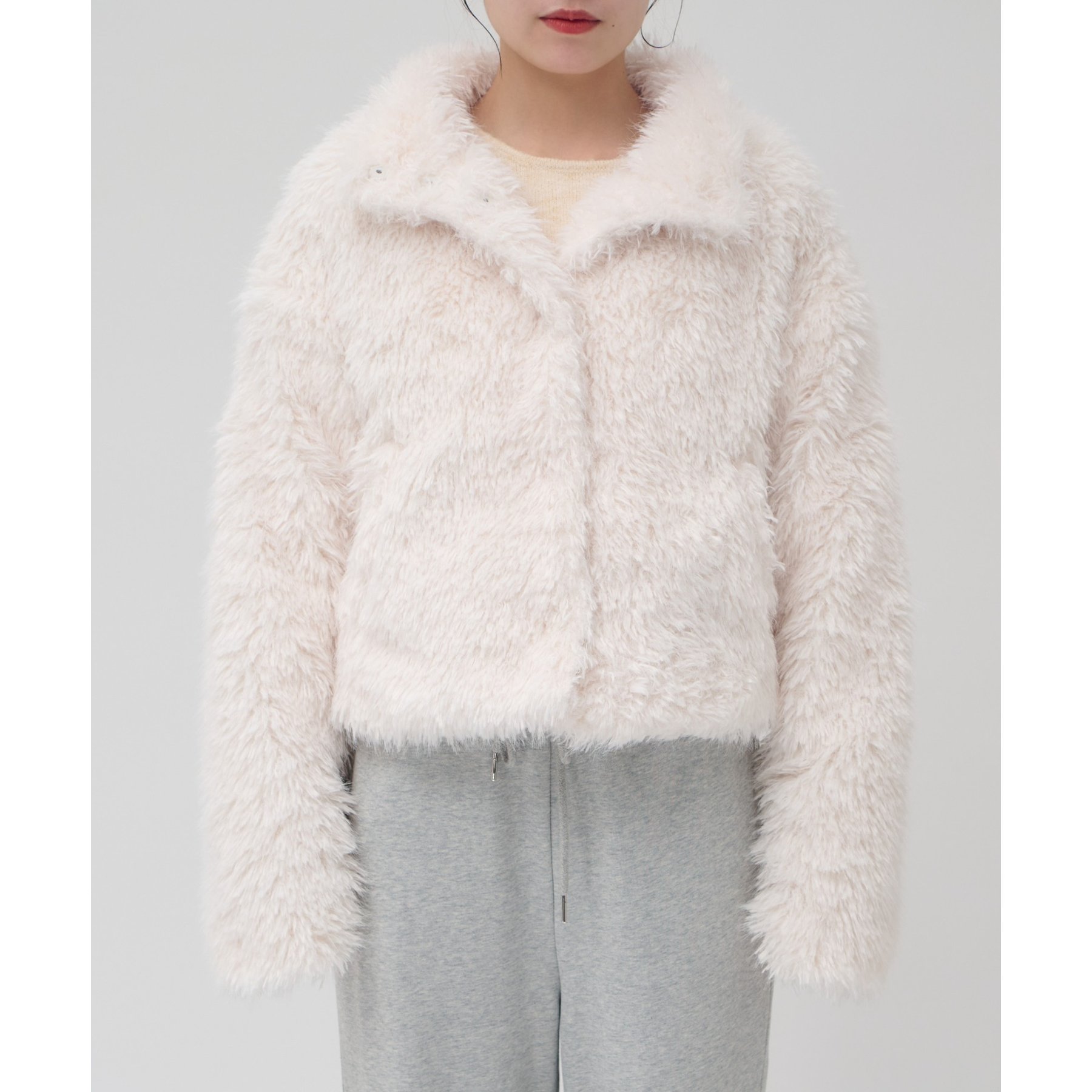 ふんわりとしたボリューム感が可愛いファージャケット。