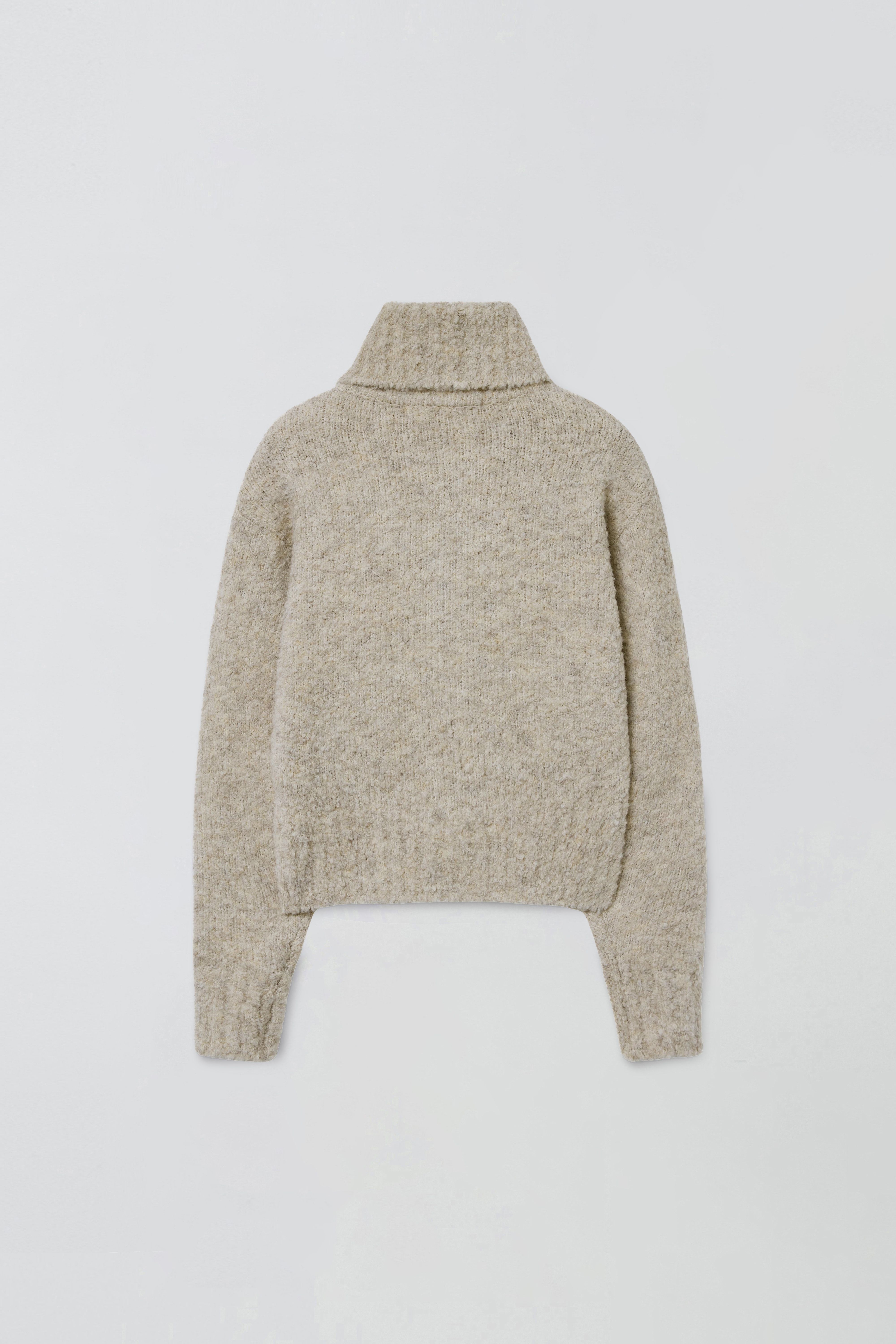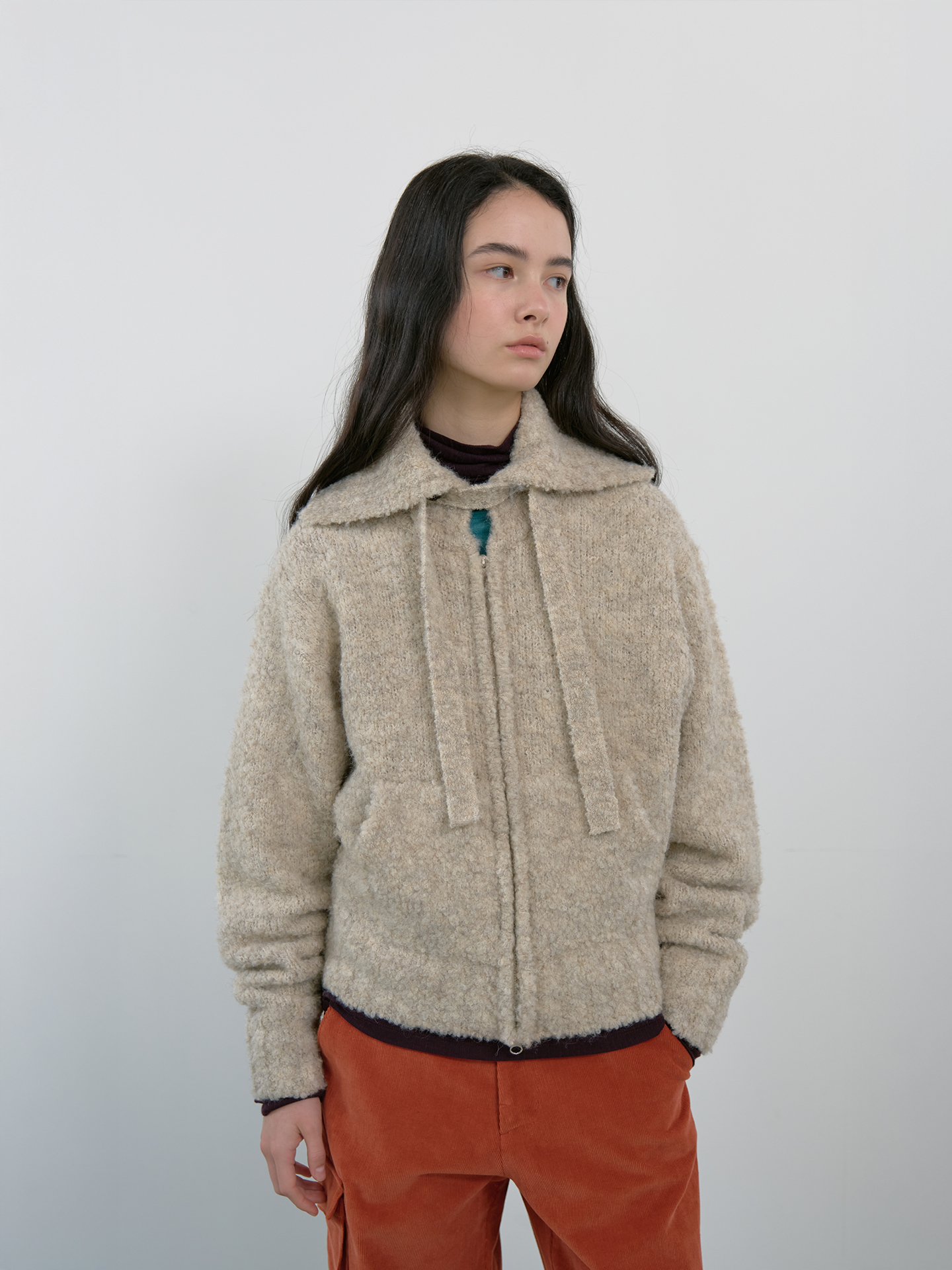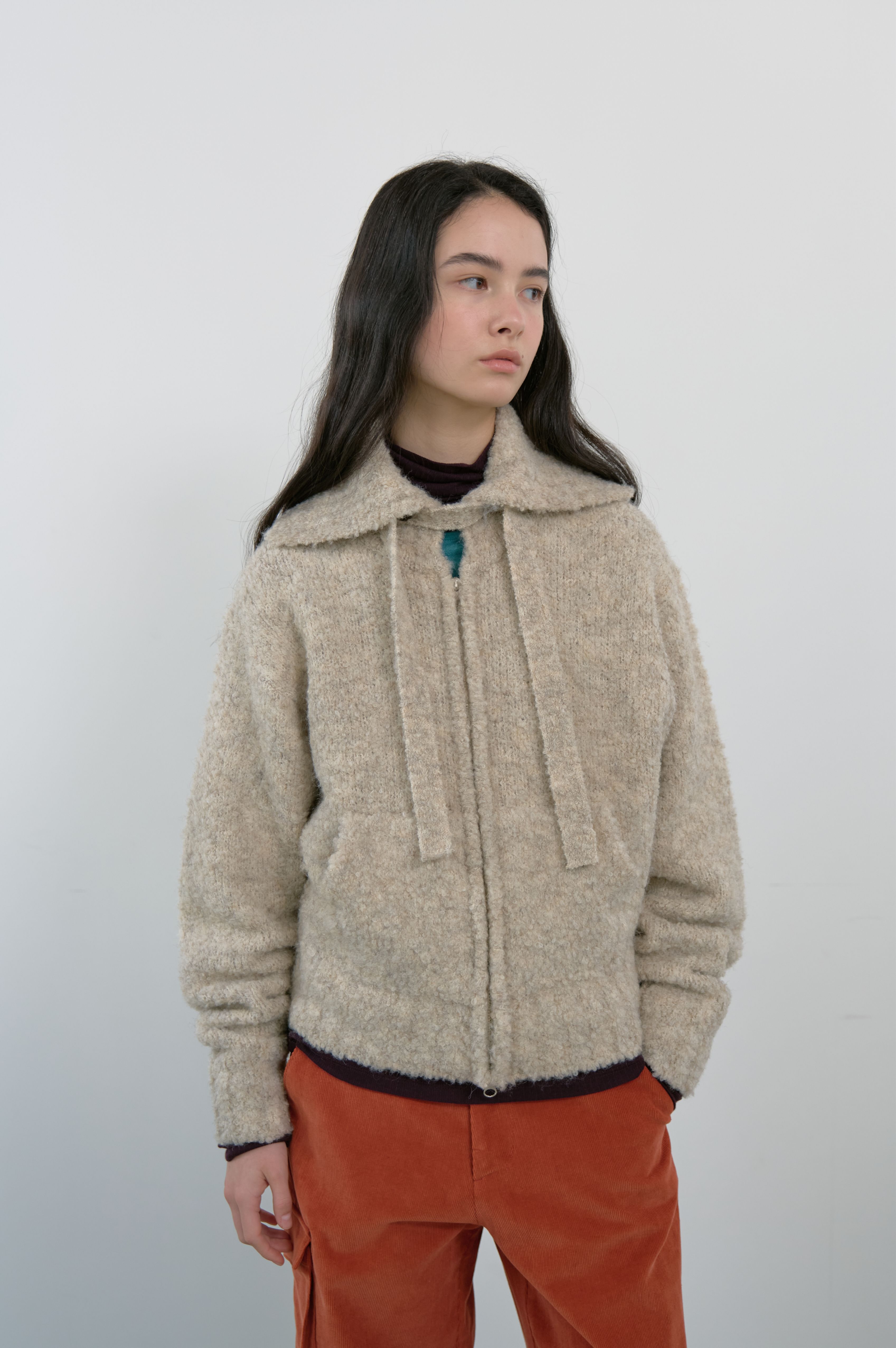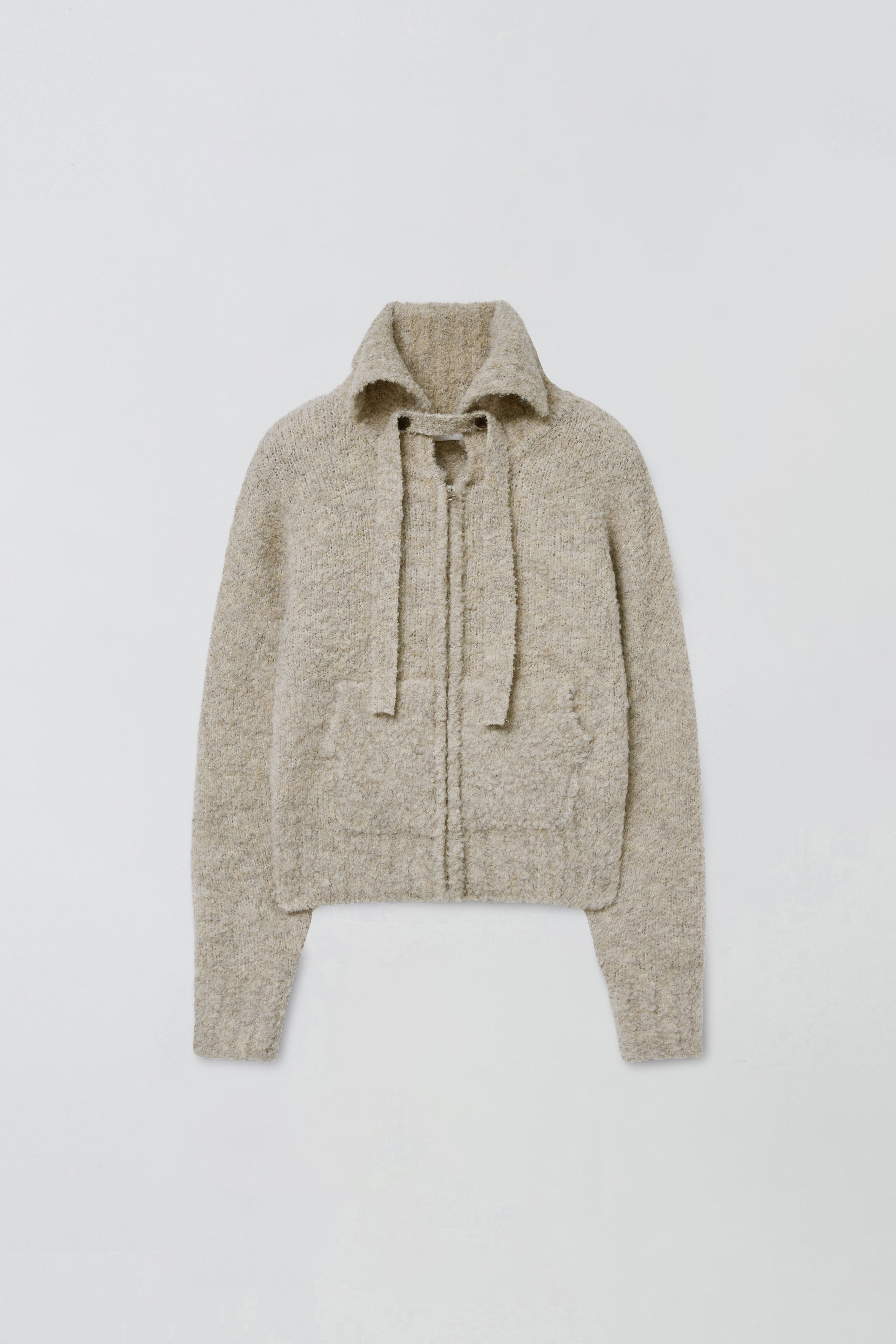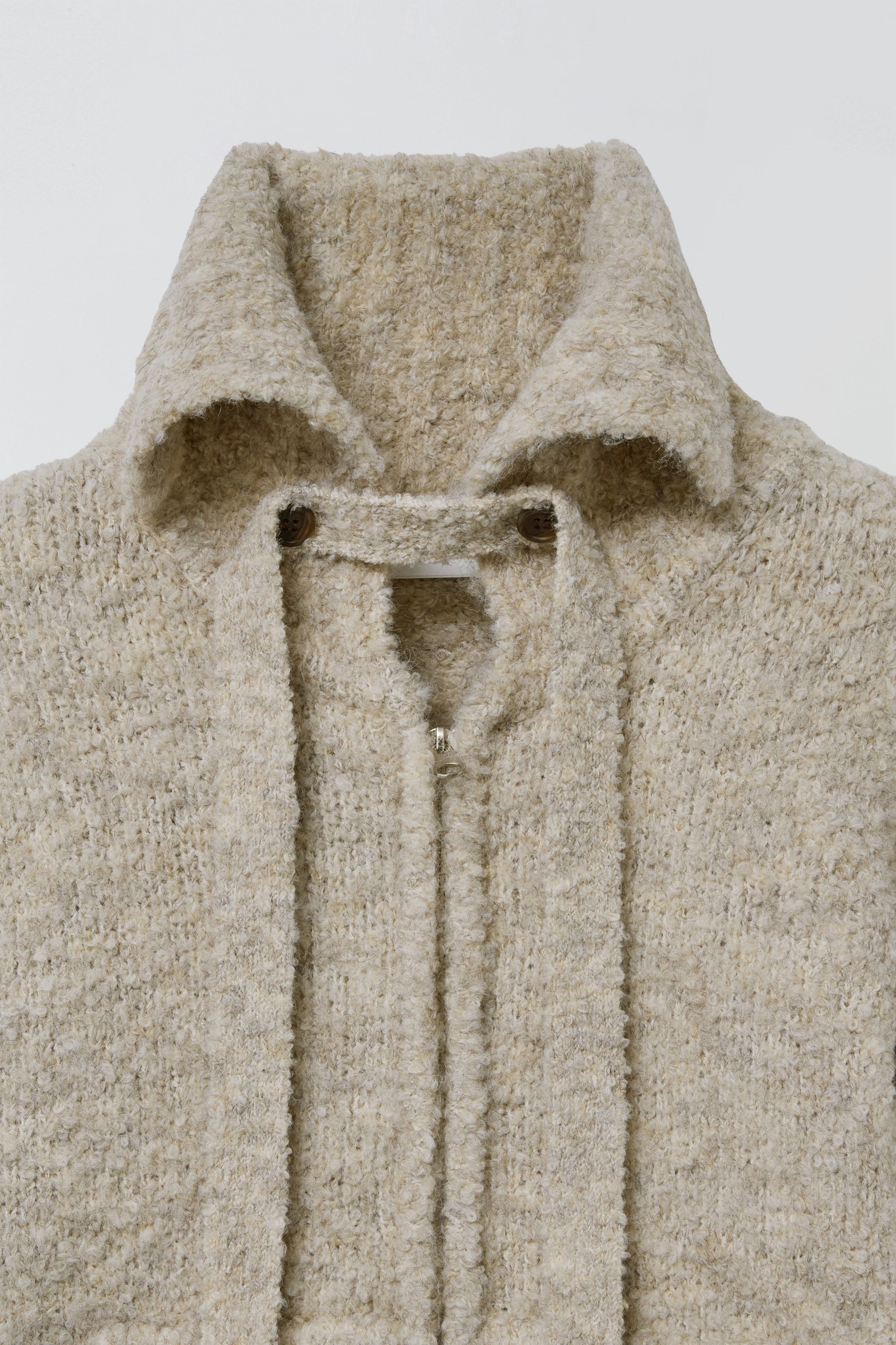 TIE SET COZY BOUCLE KNIT ZIP-UP_OATMEAL