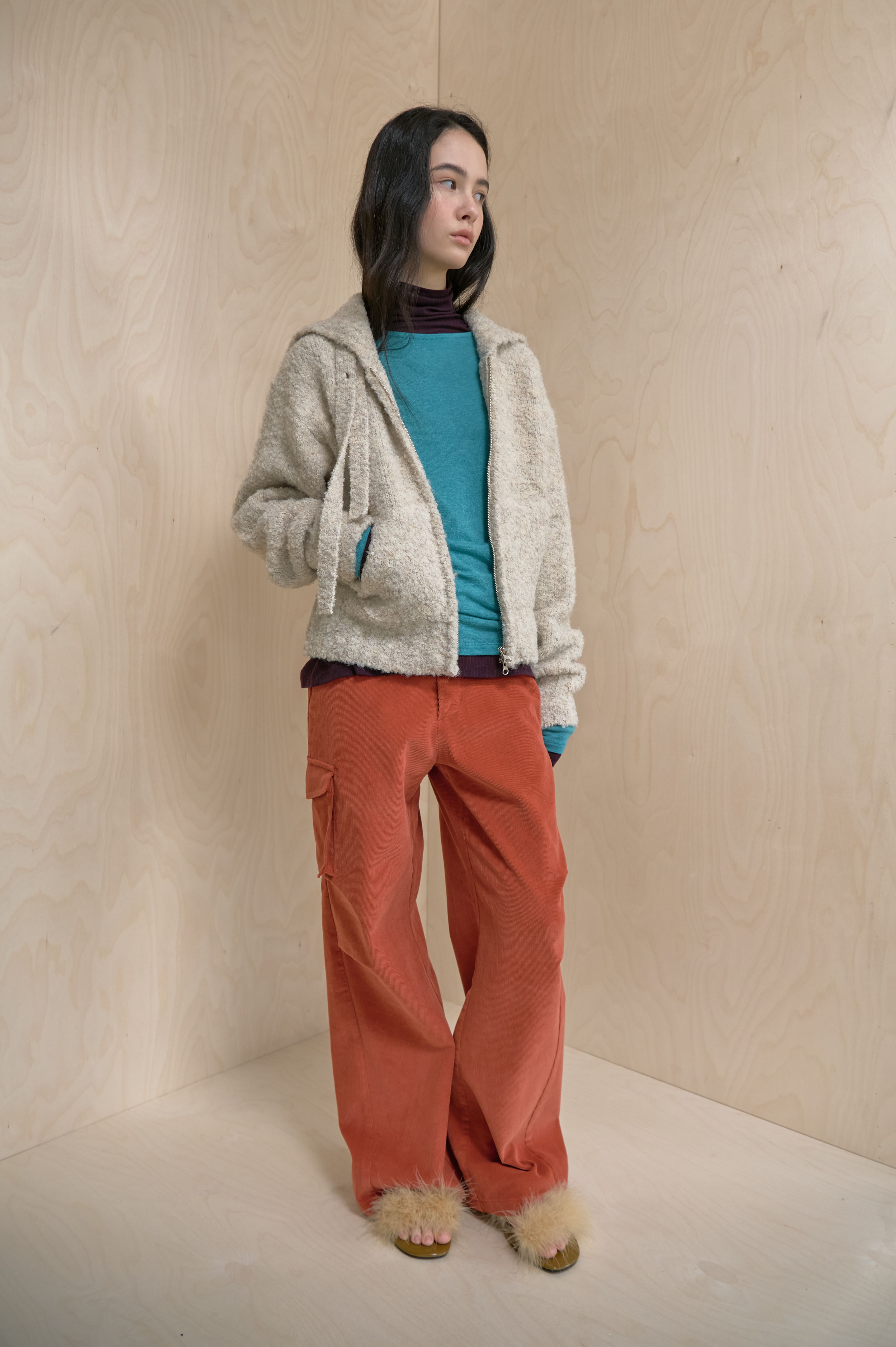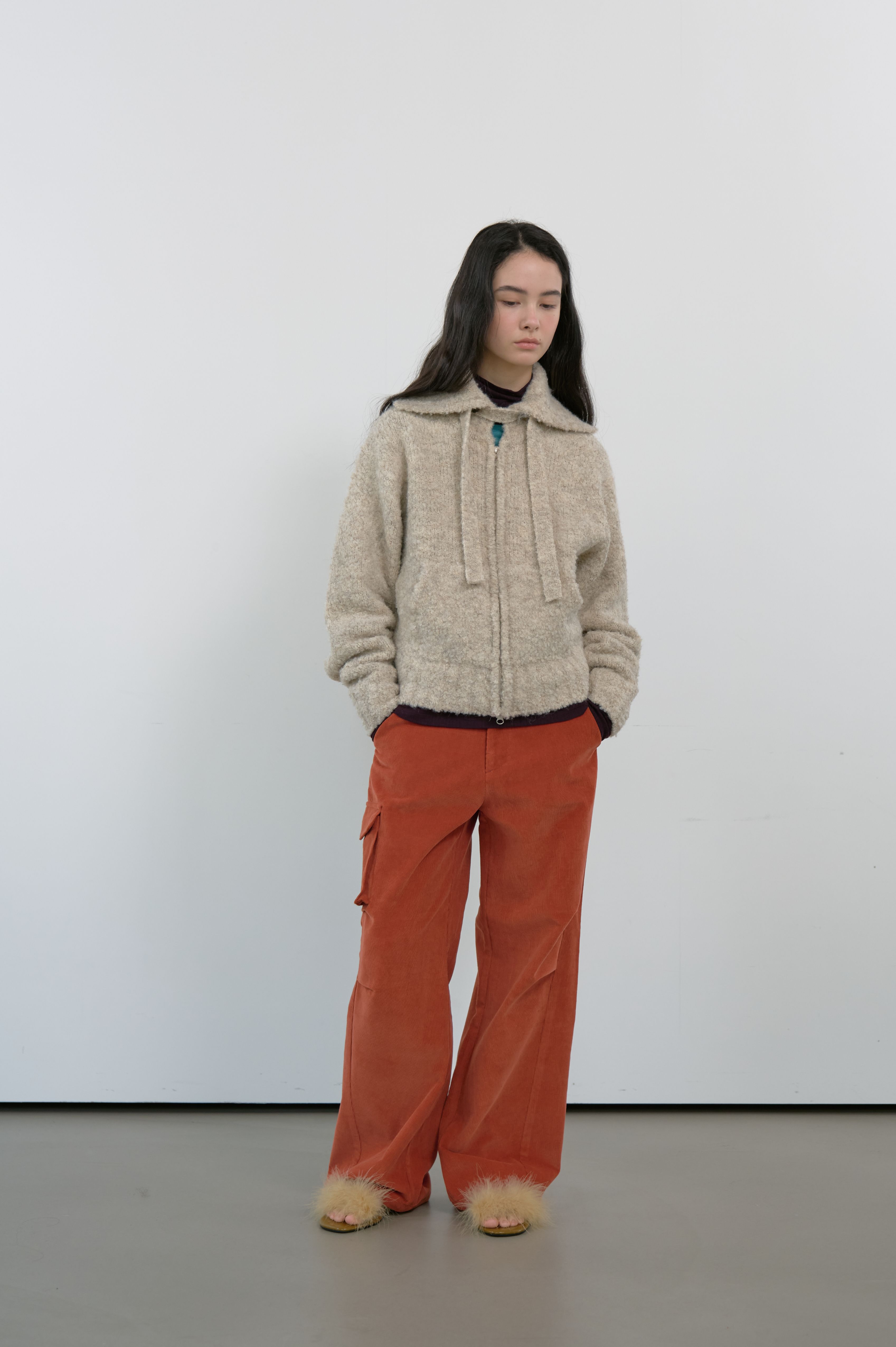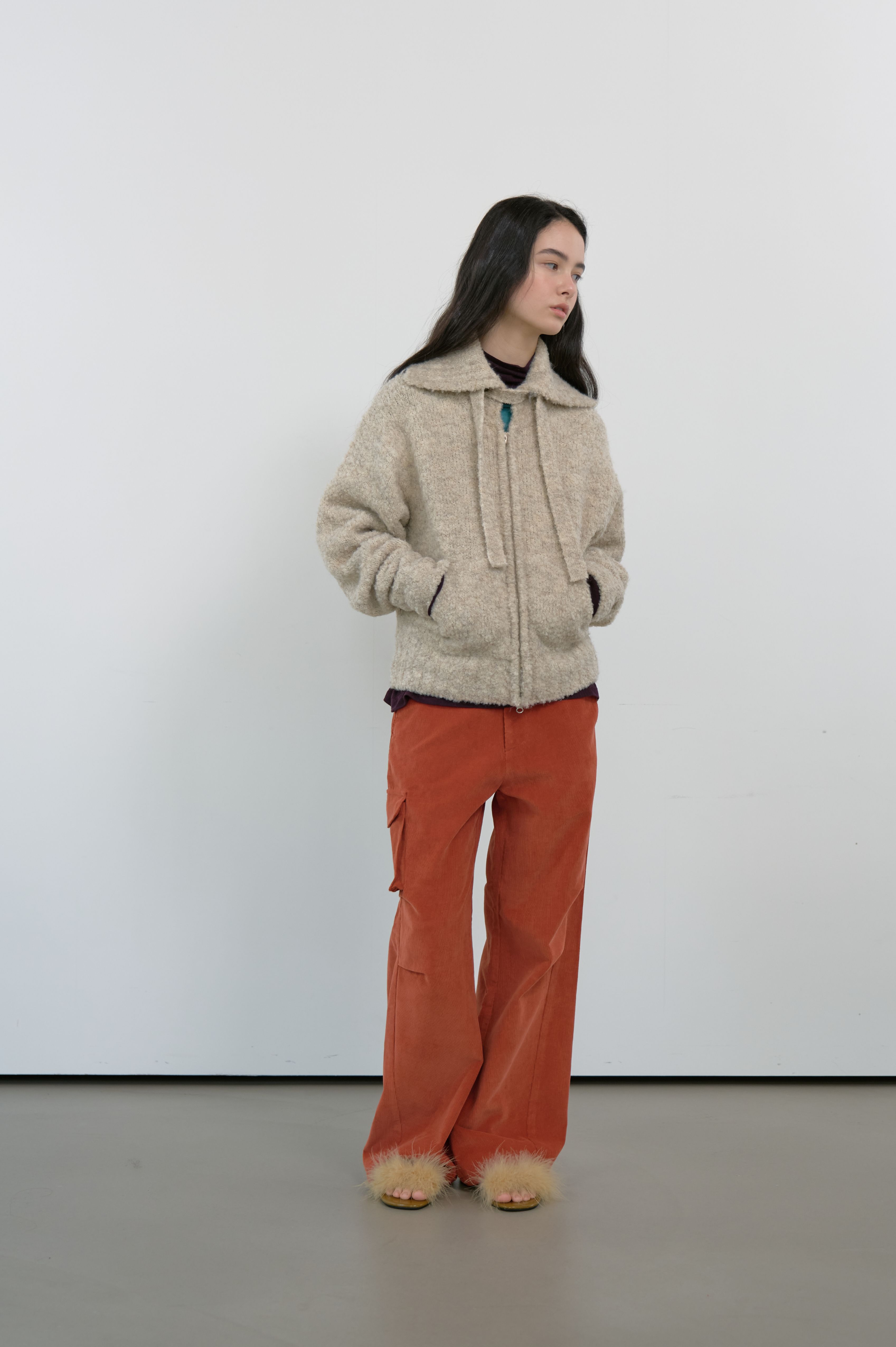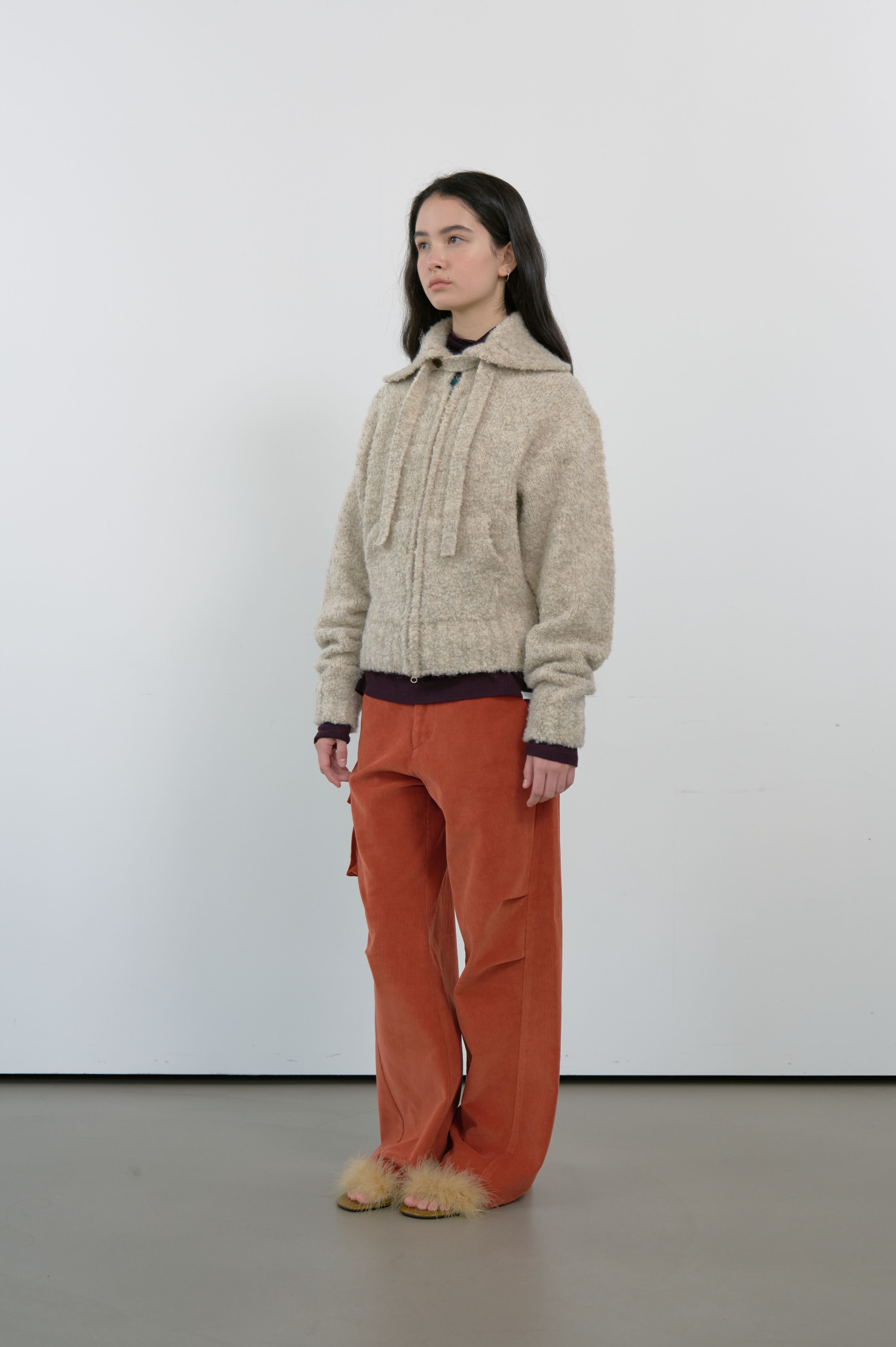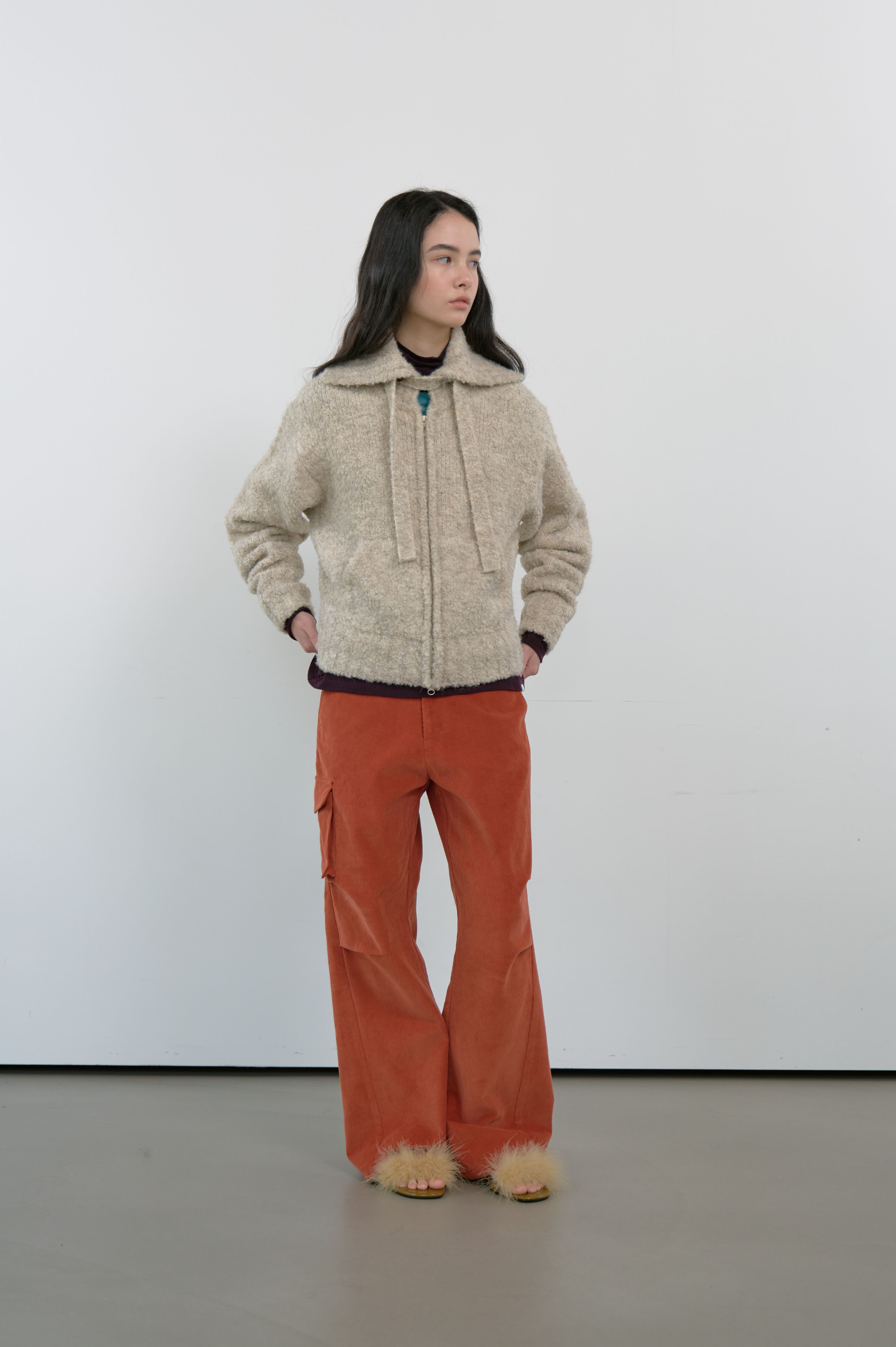 TIE SET COZY BOUCLE KNIT ZIP-UP_OATMEAL