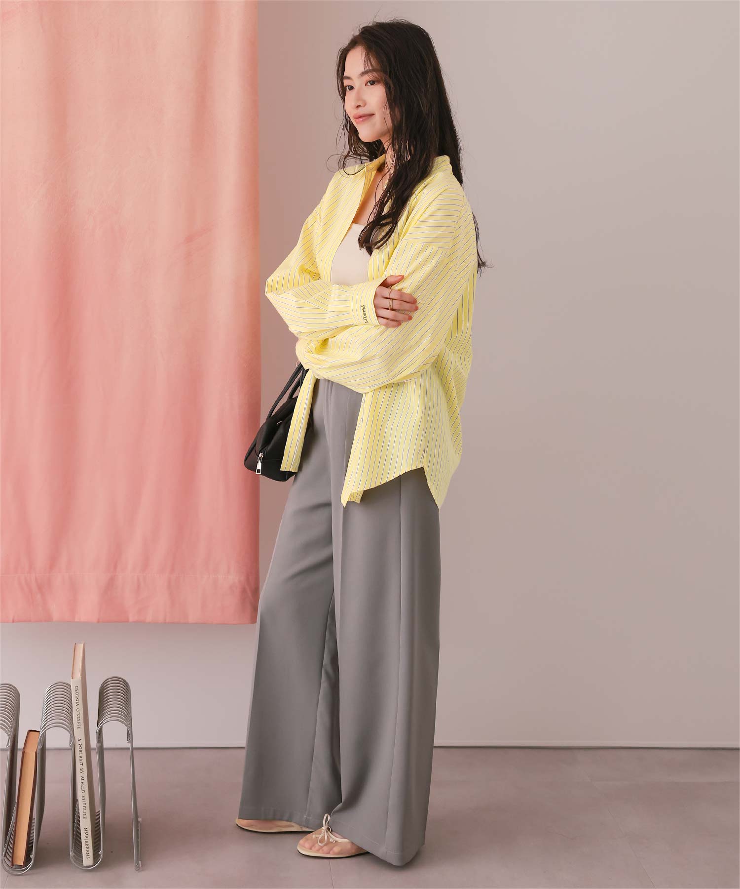 ・ストライプの縦ラインがスタイルアップを叶え、すっきり見えを演出