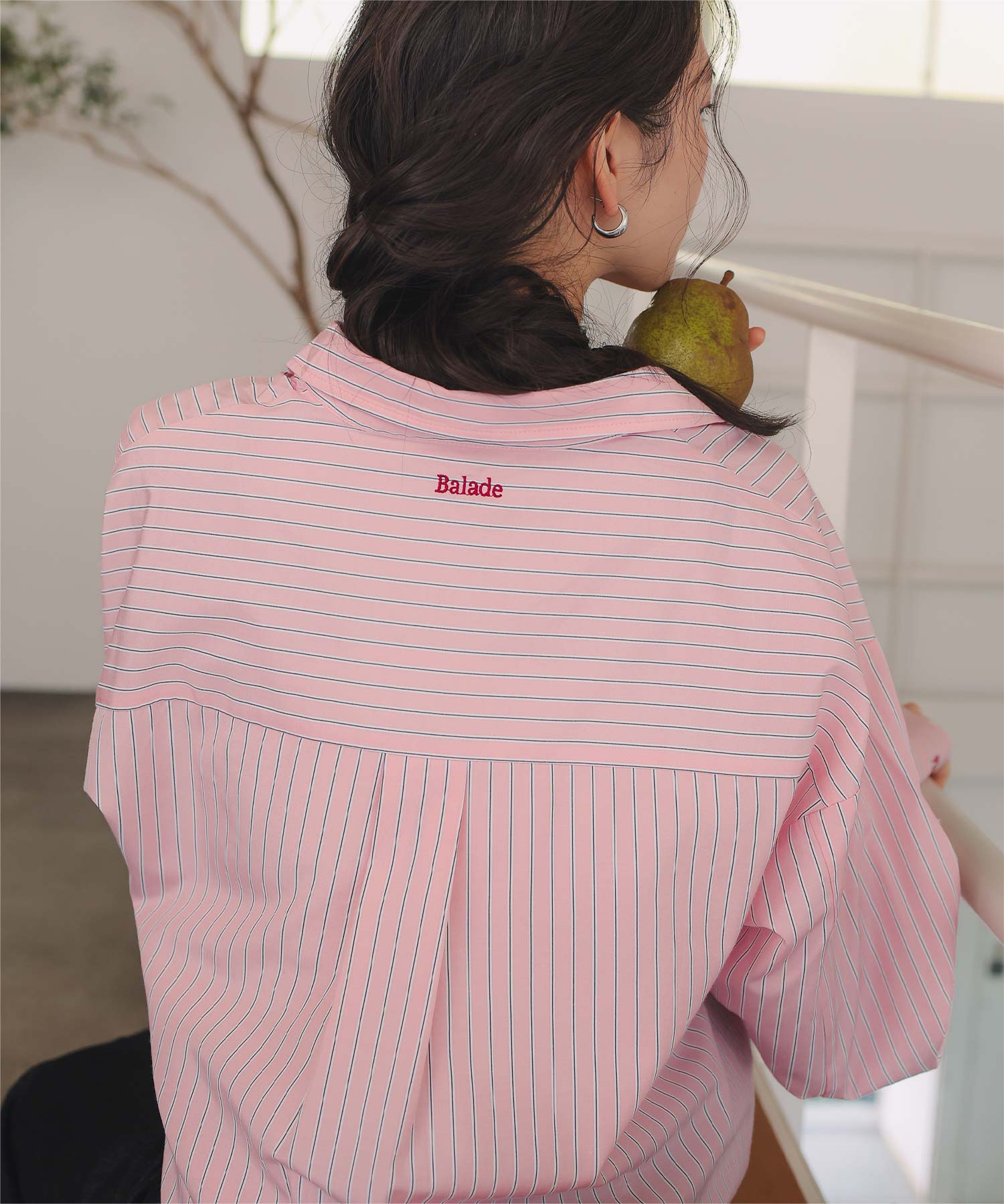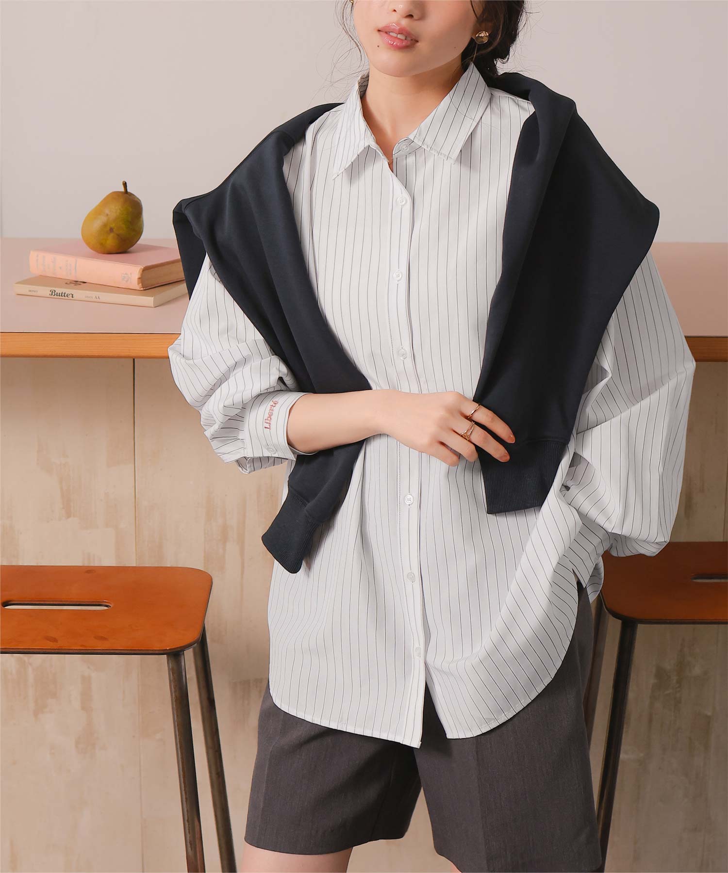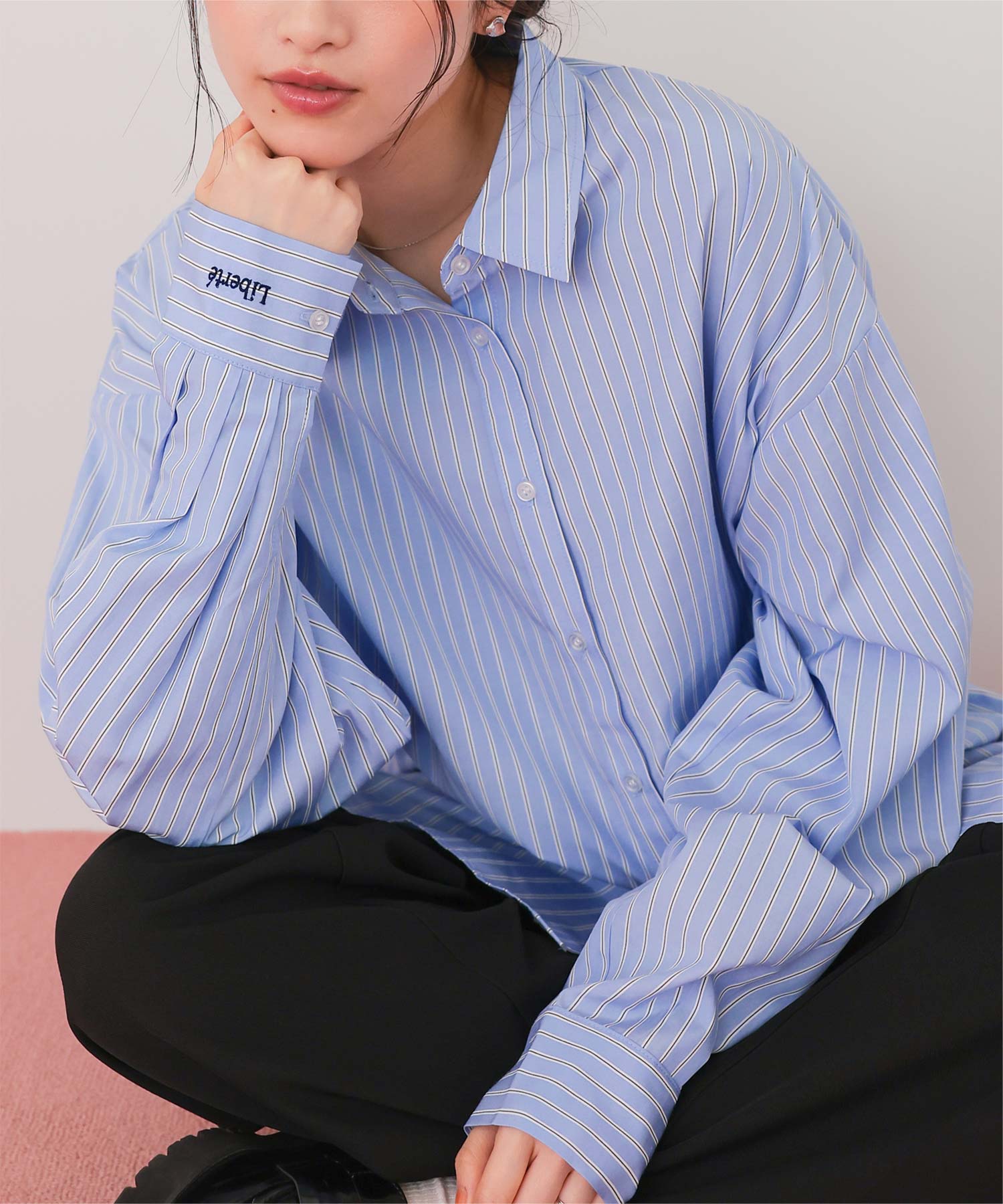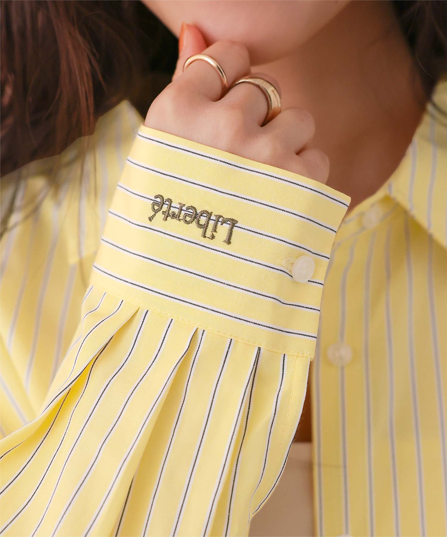・繊細な刺繍をストライプ生地にのせた、大人のこなれシャツ