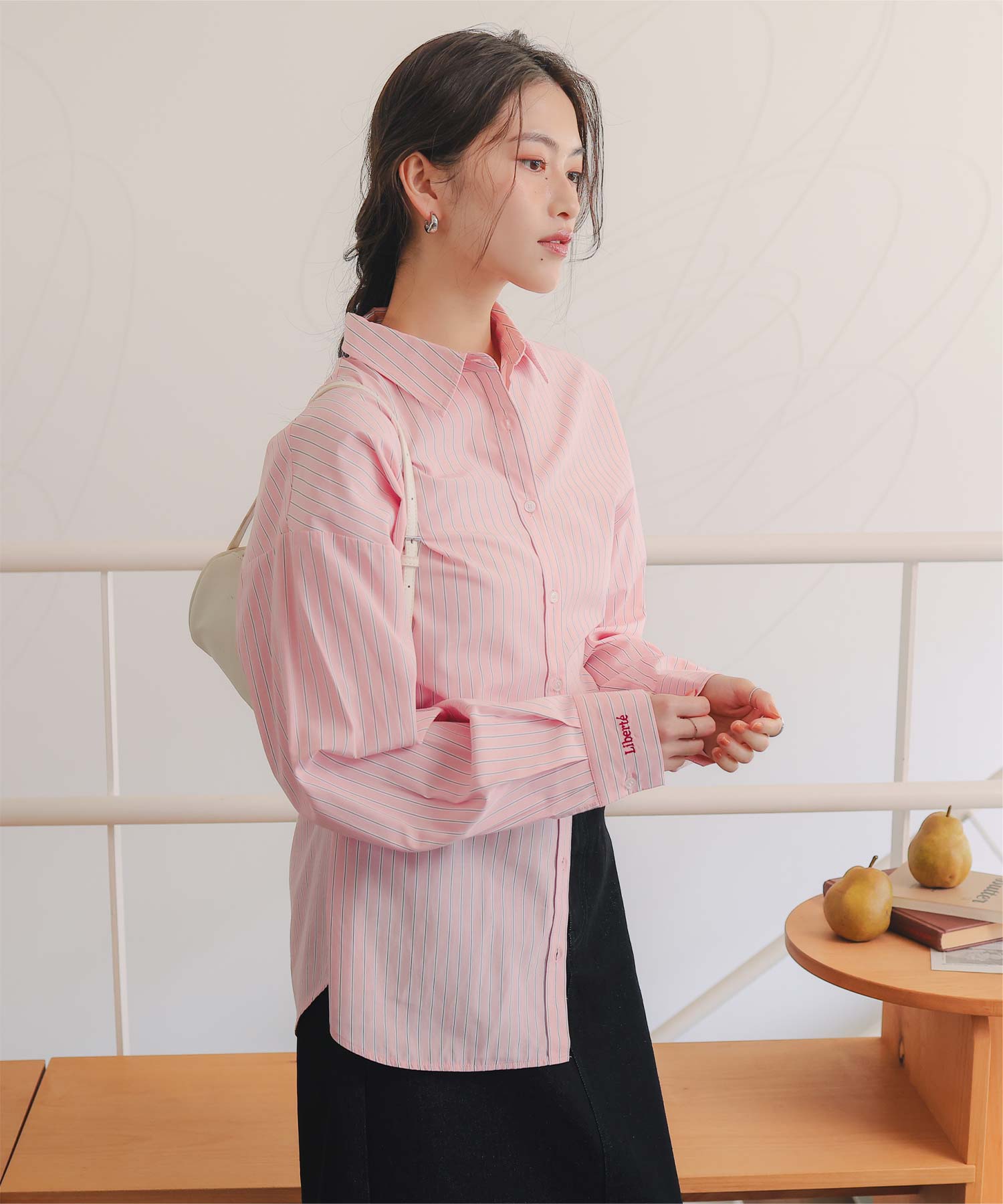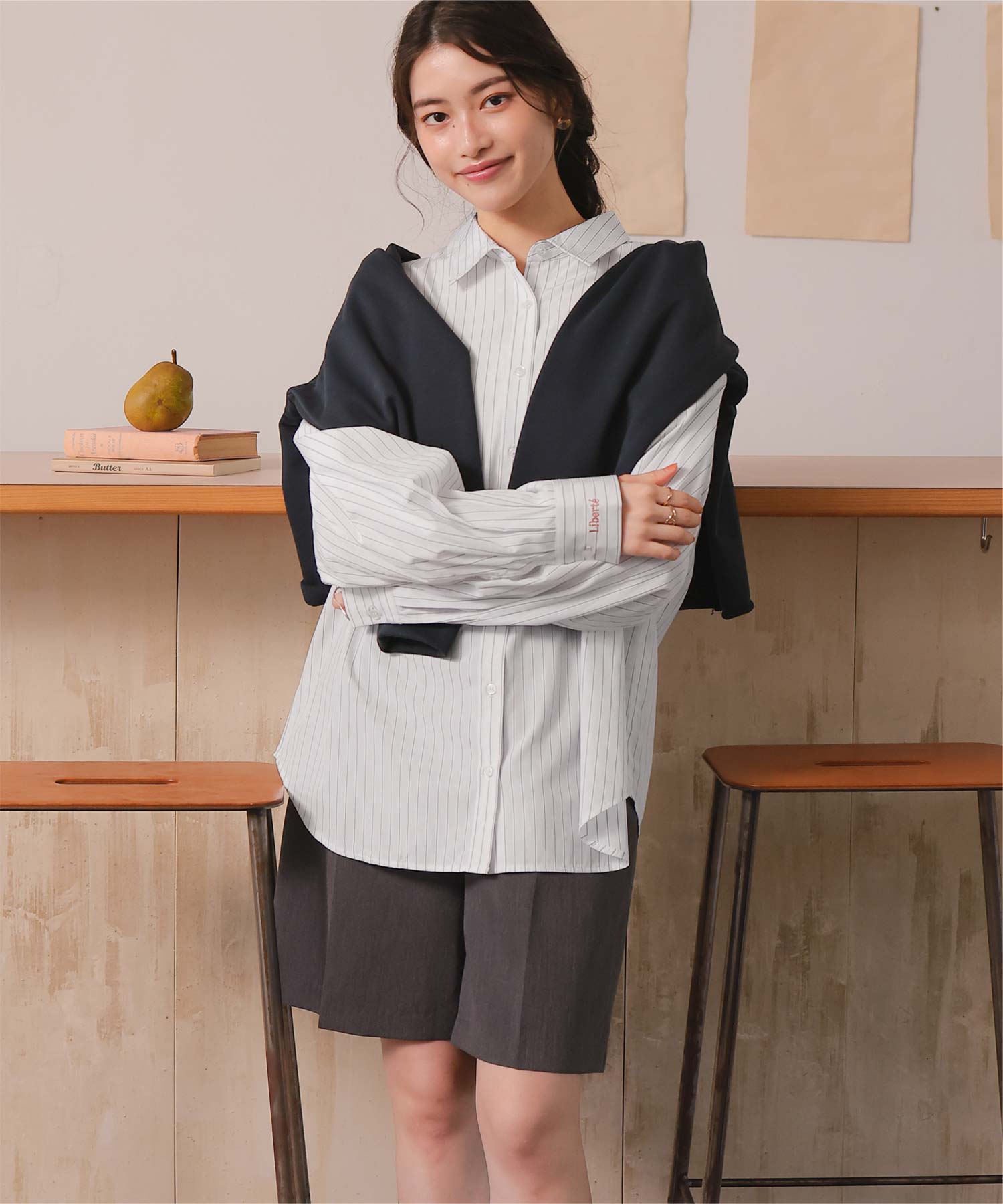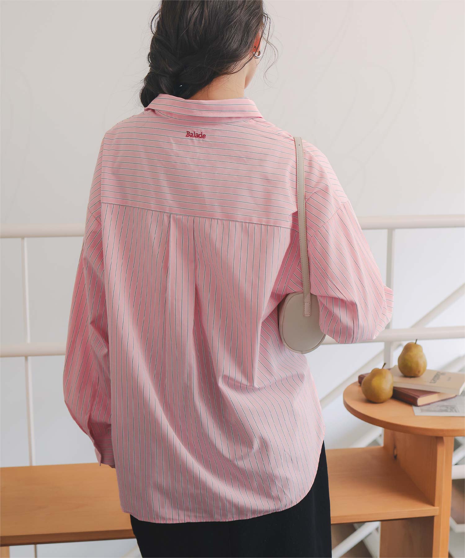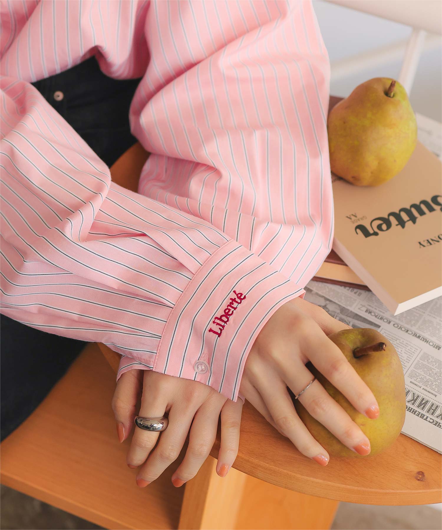 ・繊細な刺繍をストライプ生地にのせた、大人のこなれシャツ