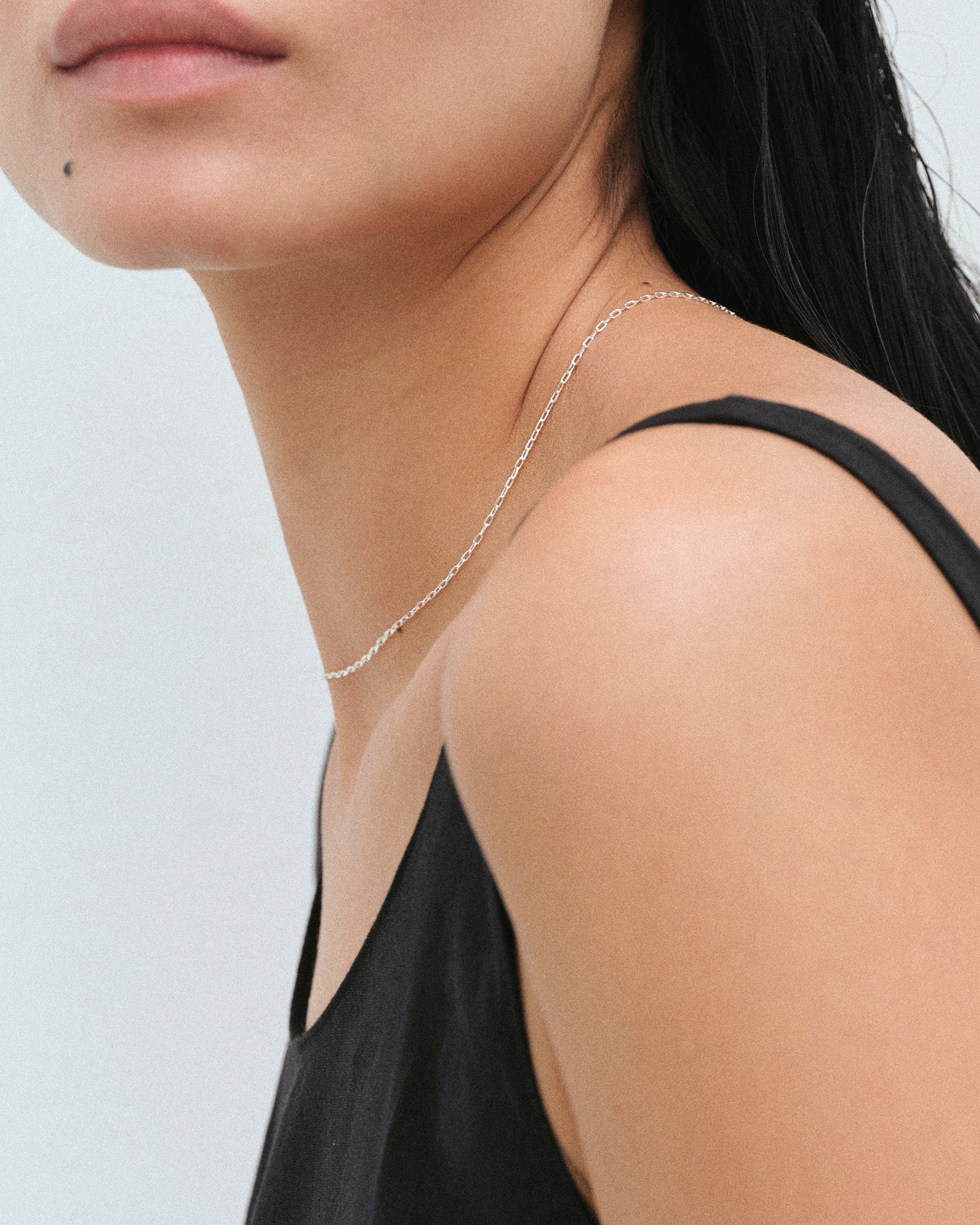 カットディテールが施されたミニマルなチェーンネックレスです。