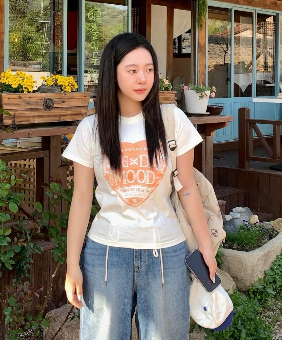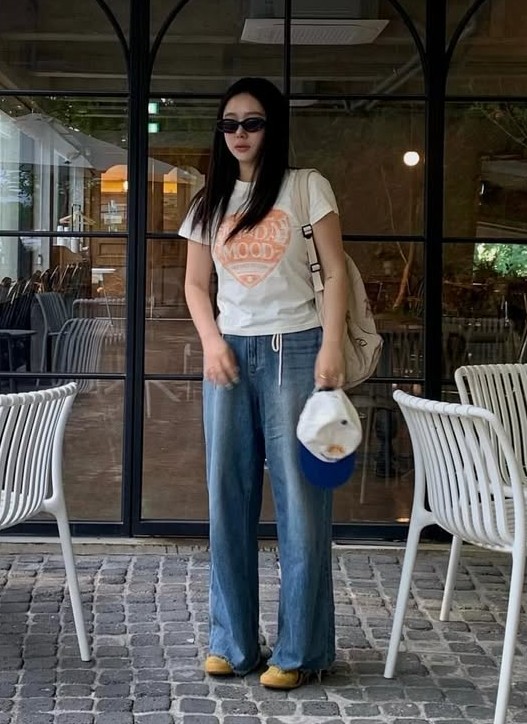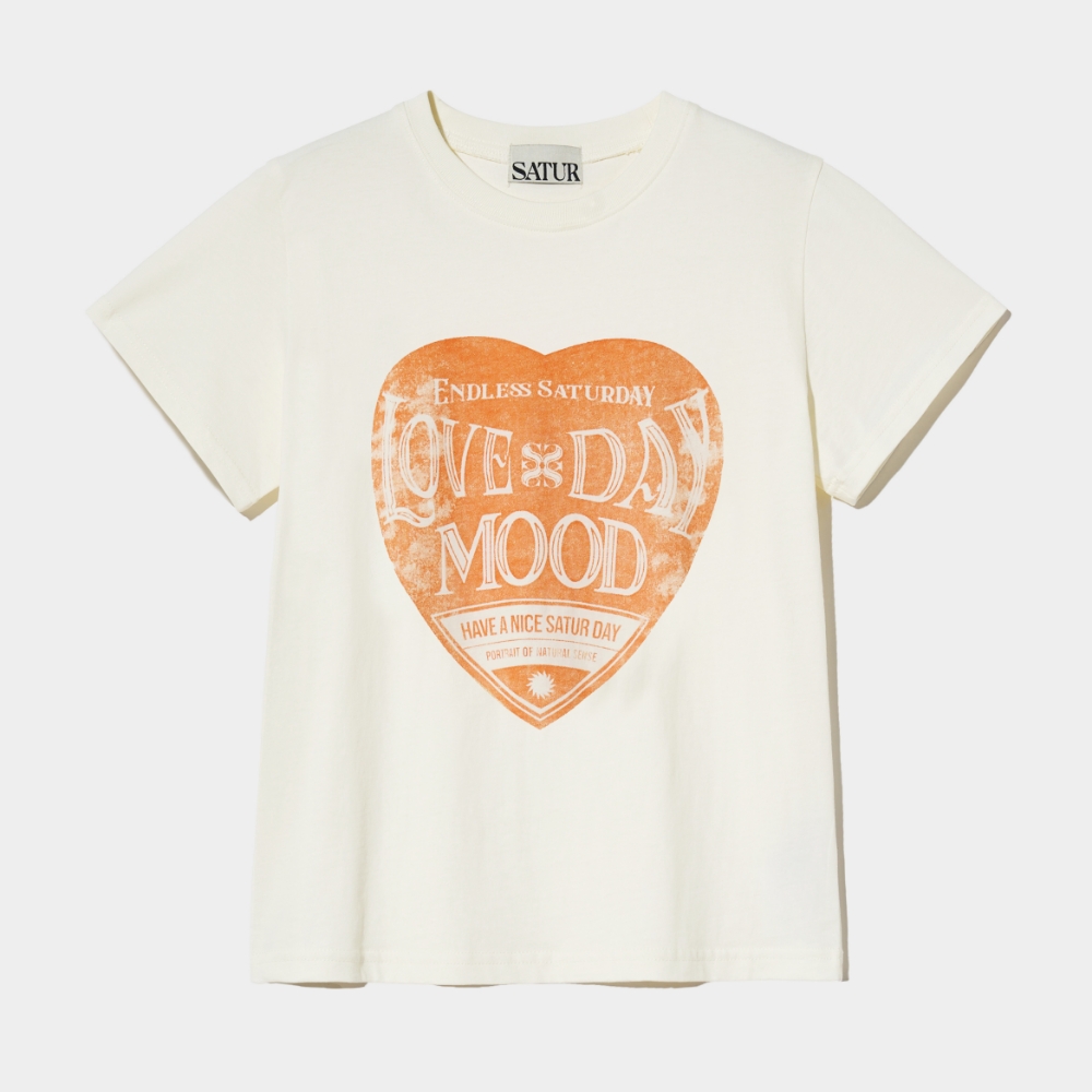 [Influencer pick] (W) Saturday Retro Mood Graphic T-Shirts - Cream Orange