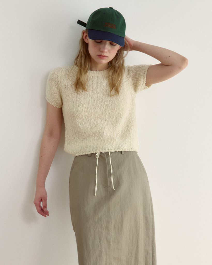 小さなポンポンのような表情を持つ特殊な糸を使い、繊細で立体感のある編地に仕上げました。