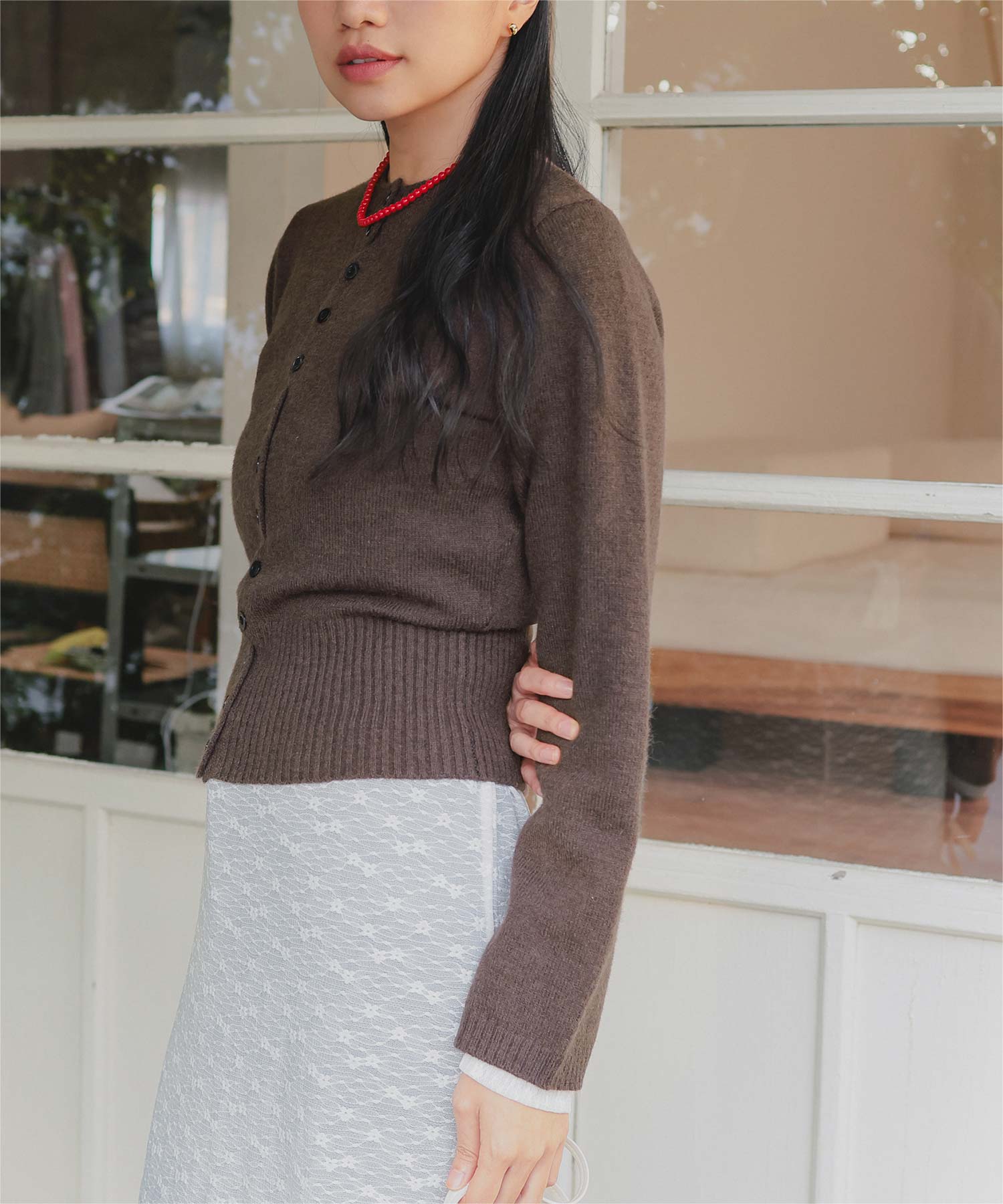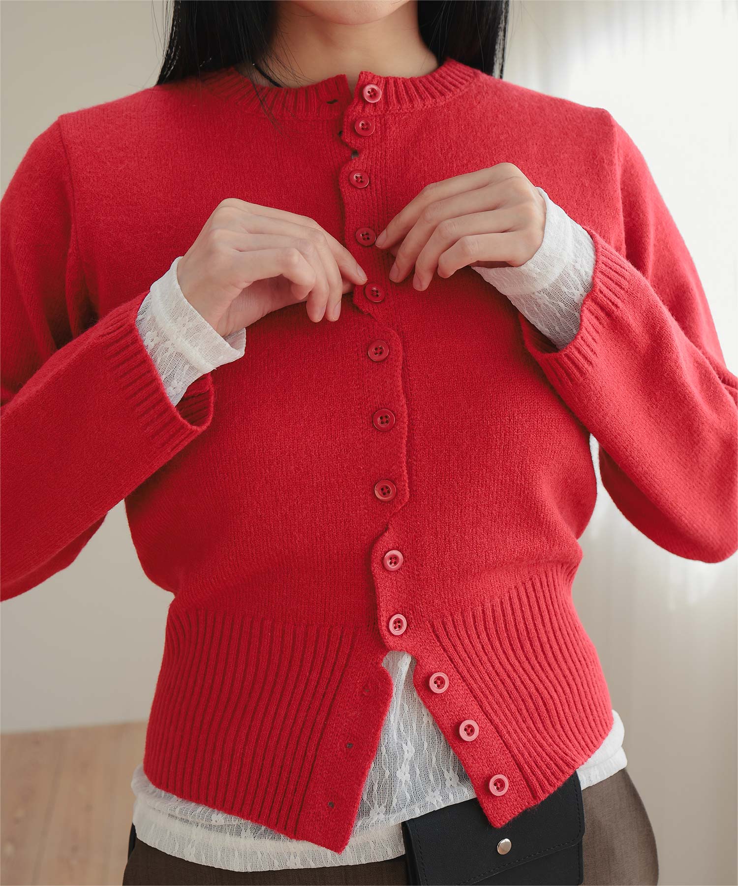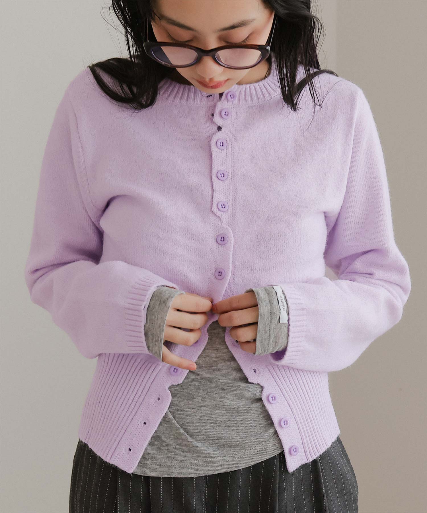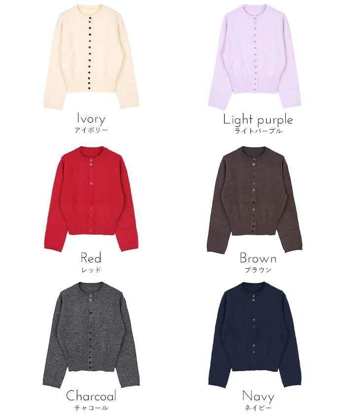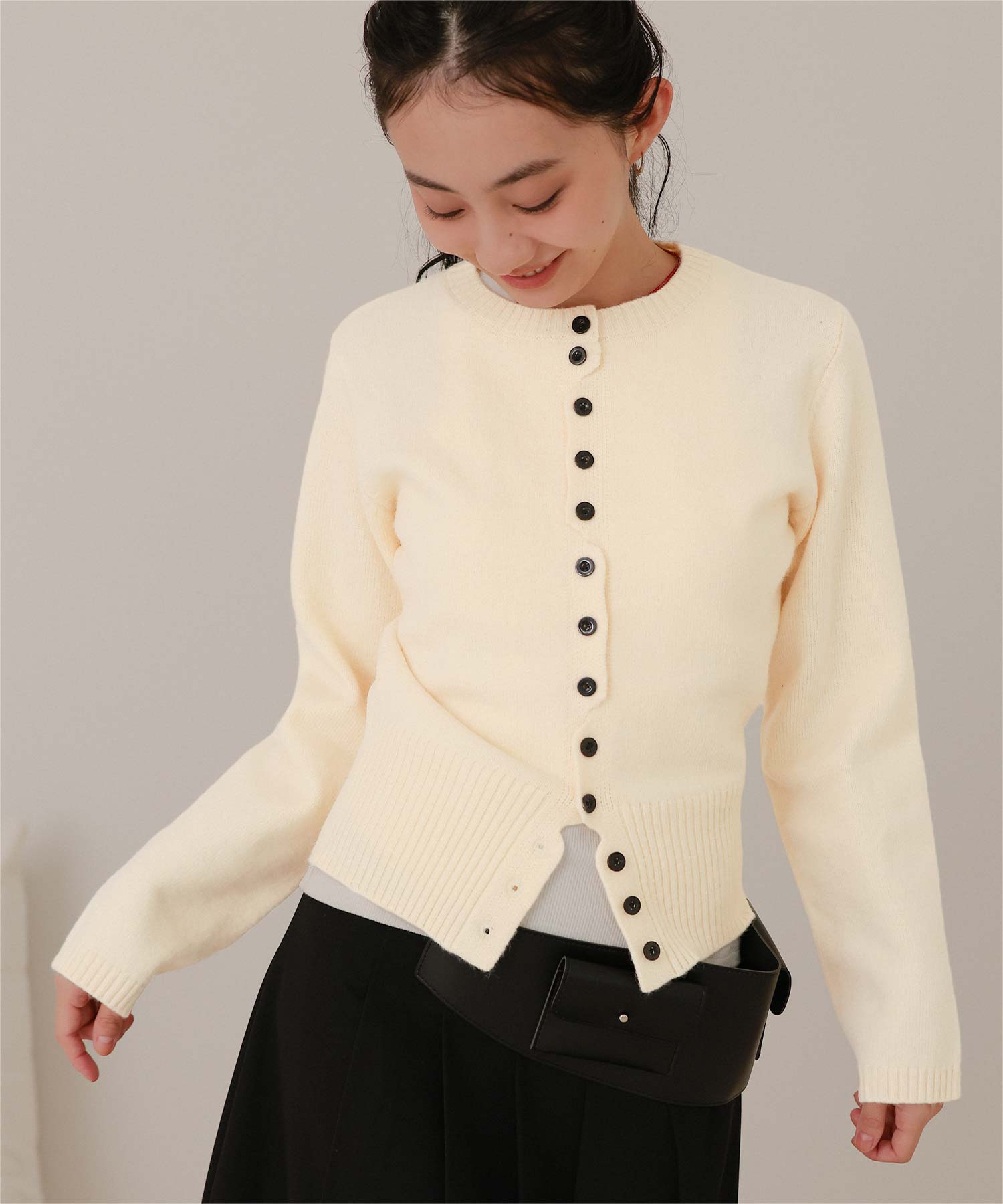 ・配色ボタンの前立てデザインがポイントのニットカーディガン