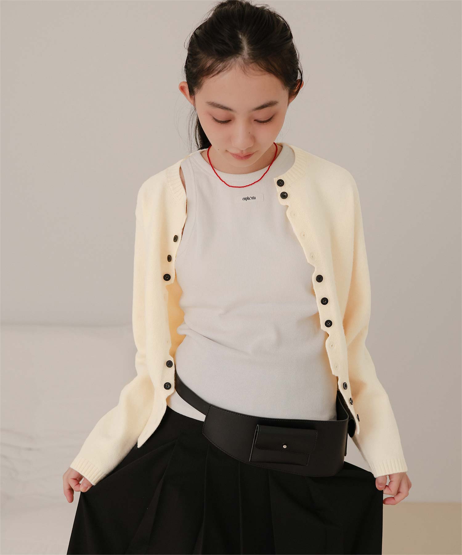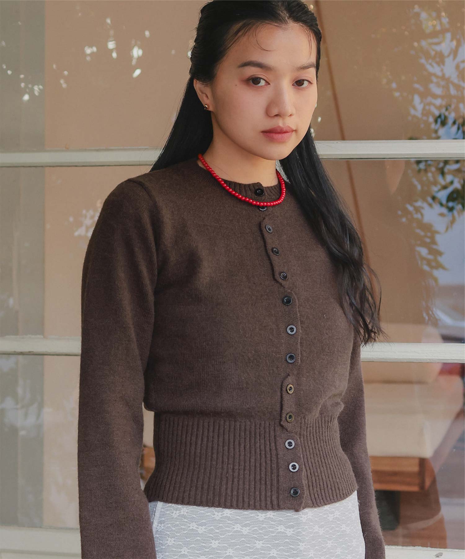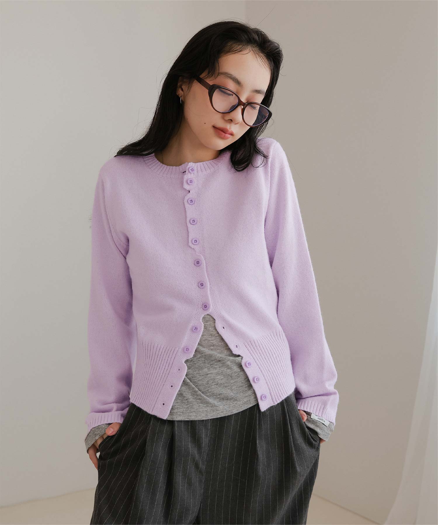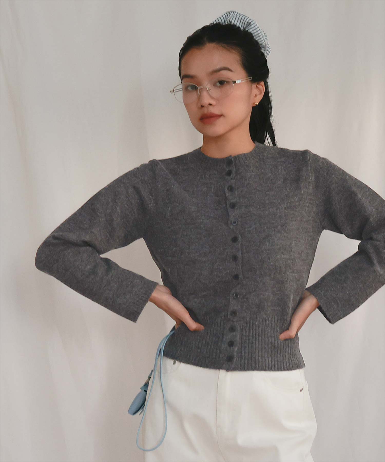 ・配色ボタンの前立てデザインがポイントのニットカーディガン
