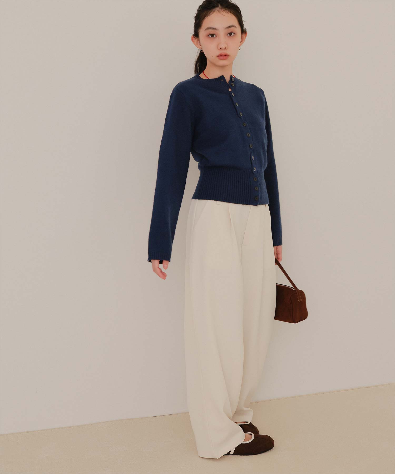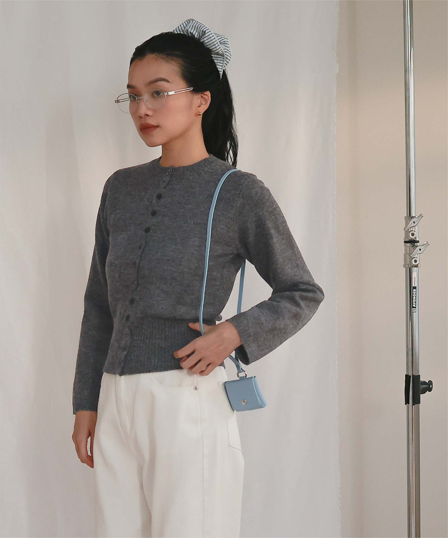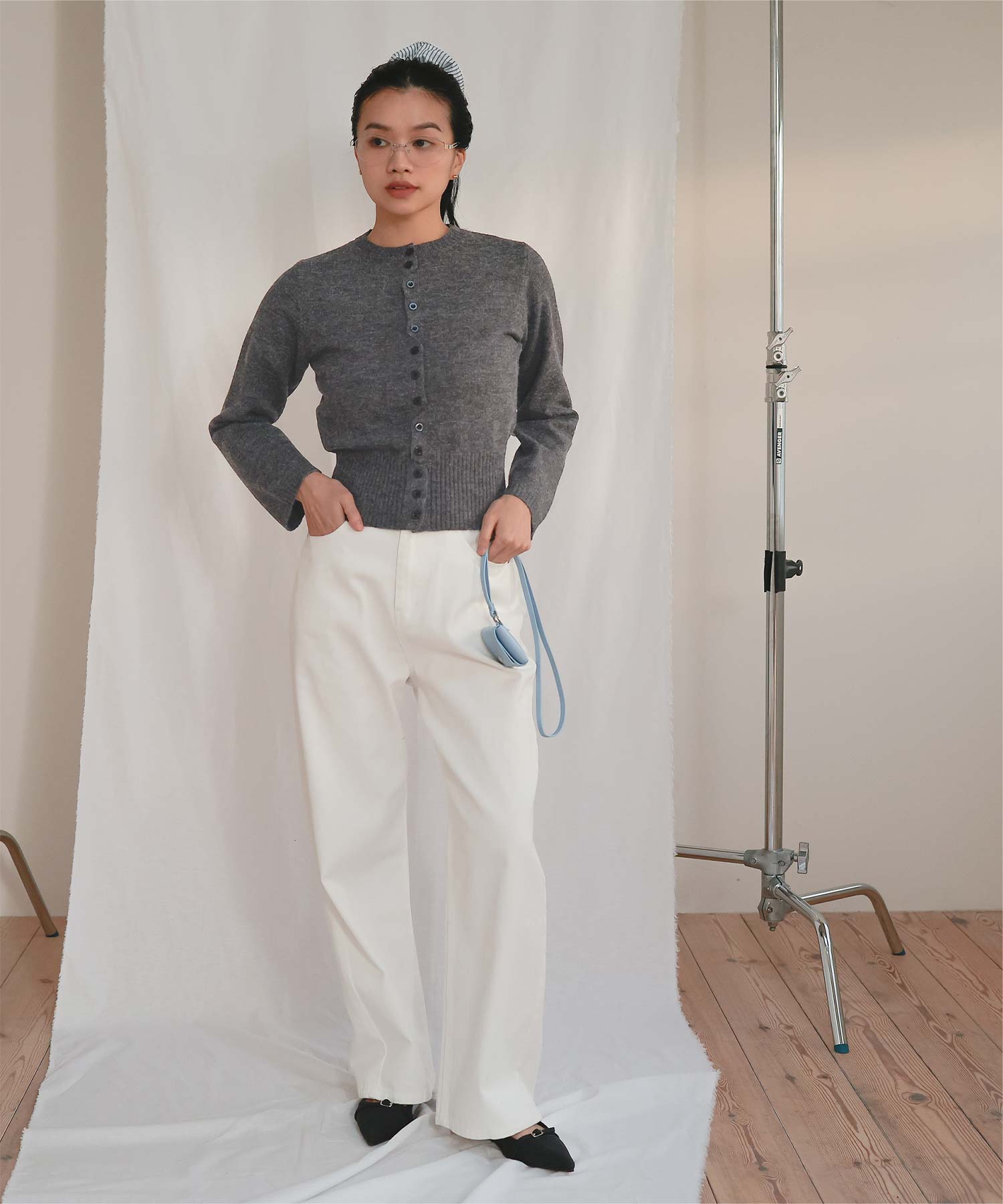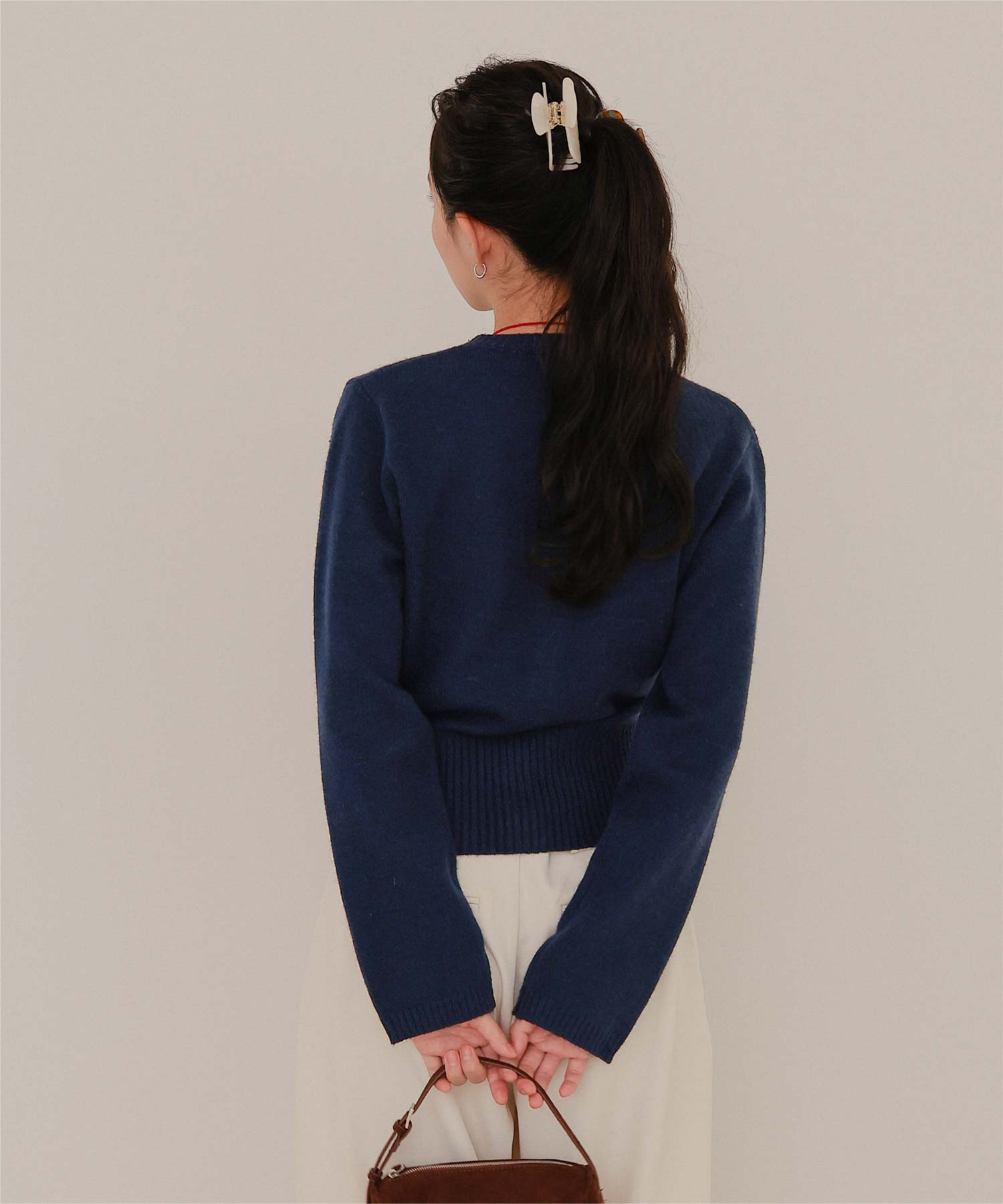 ・配色ボタンの前立てデザインがポイントのニットカーディガン
