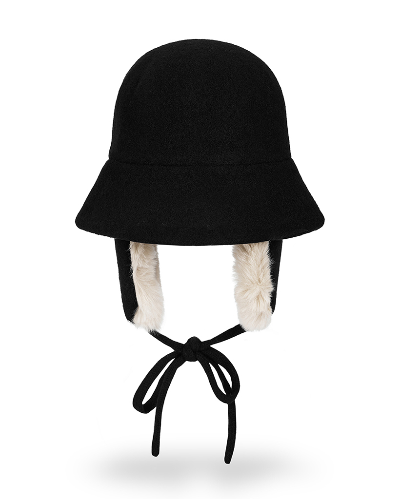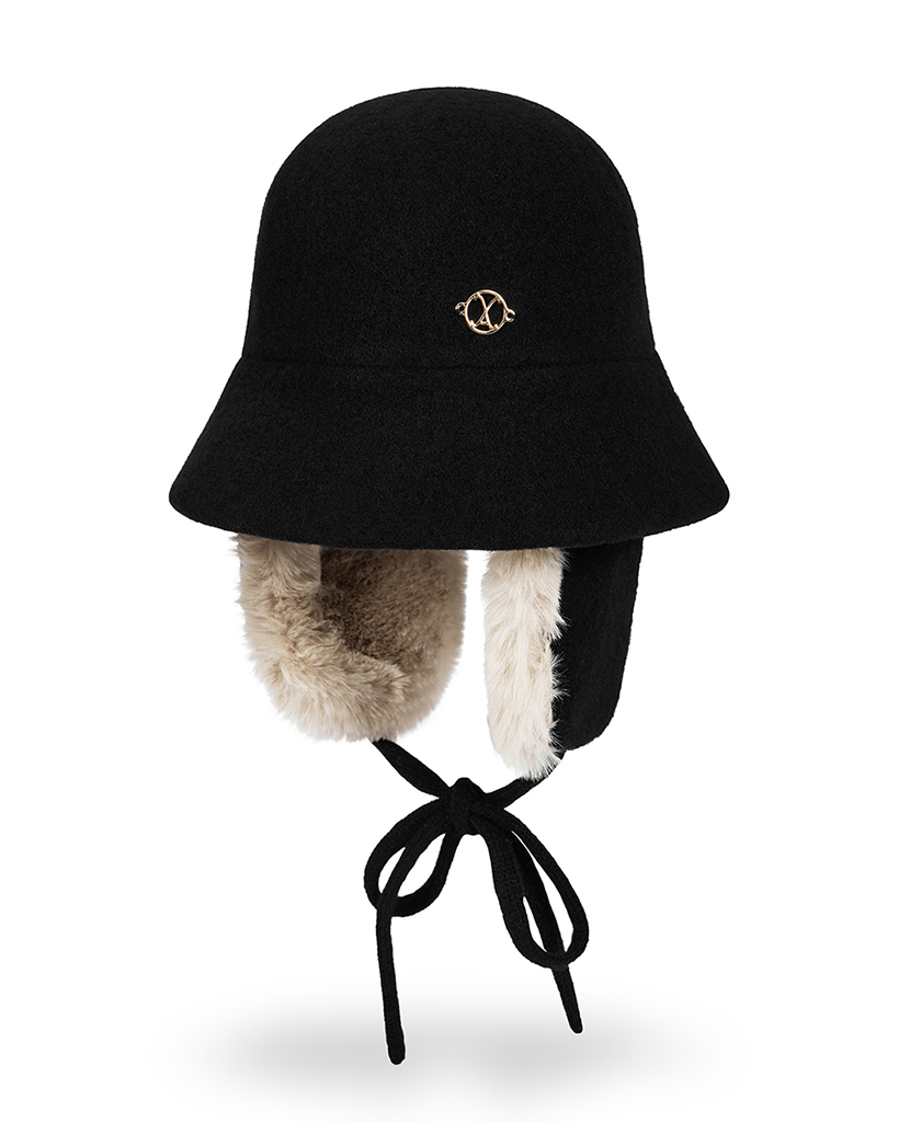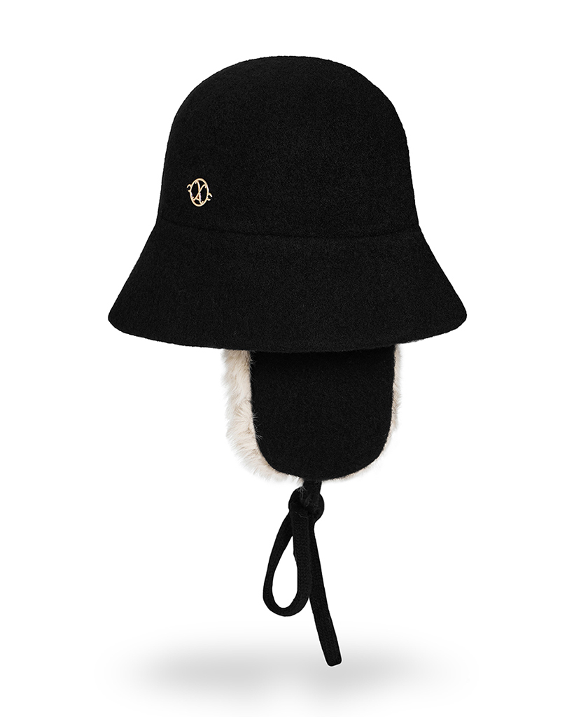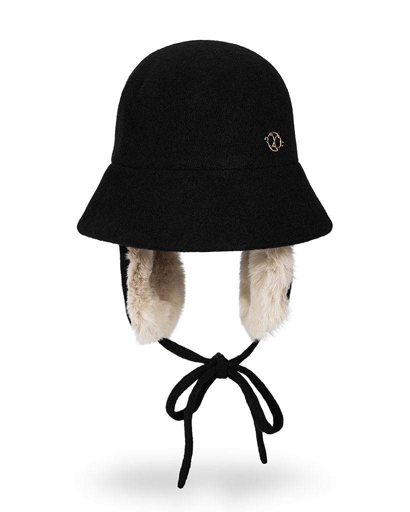 VA Curved Circle Logo Wool Blend Flap Bucket Hat Black
