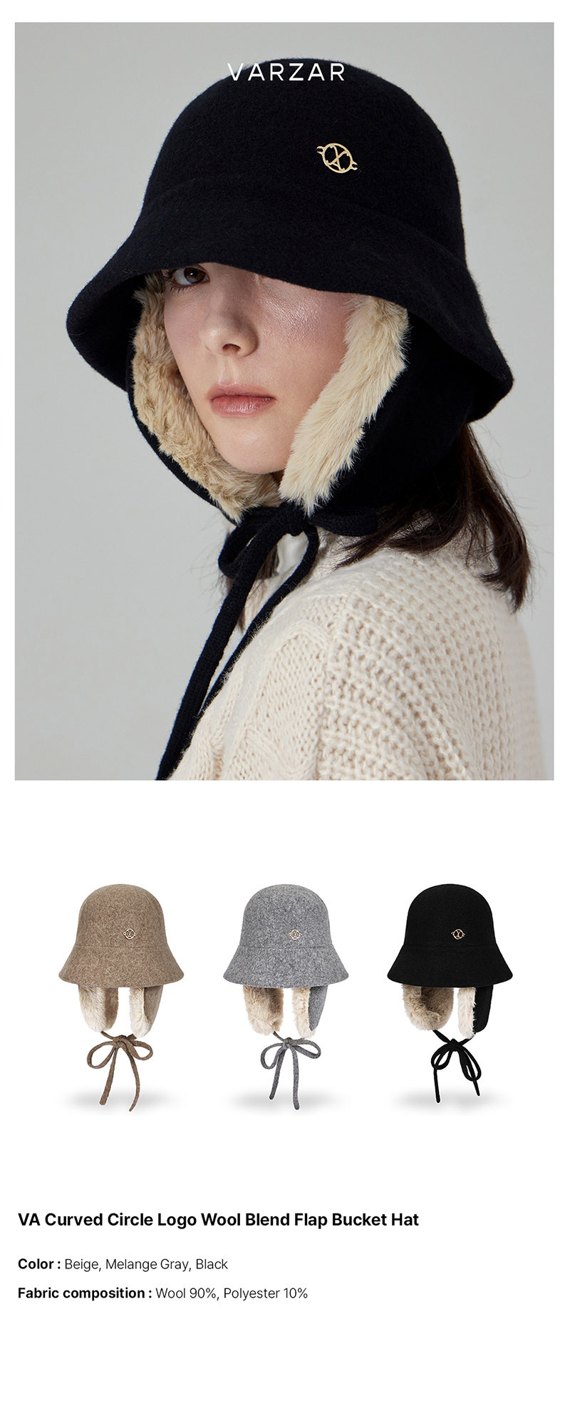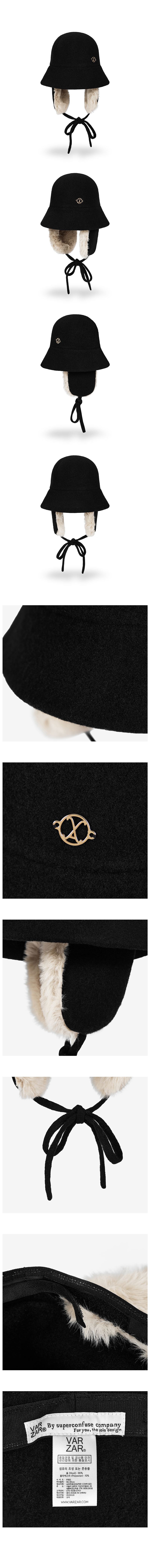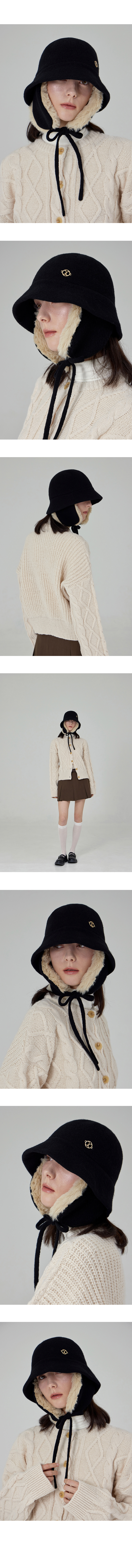 VA Curved Circle Logo Wool Blend Flap Bucket Hat Black