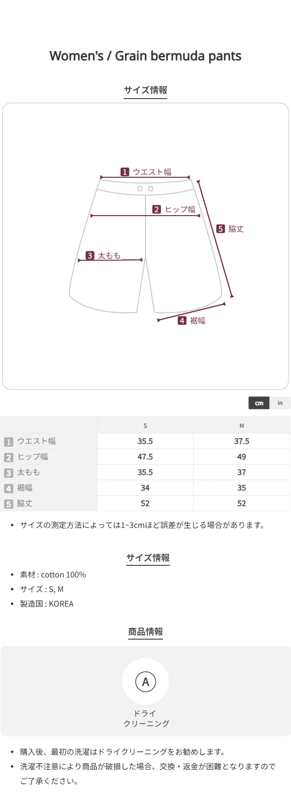 春夏シーズンに軽やかに取り入れられる「Grain bermuda pants」。