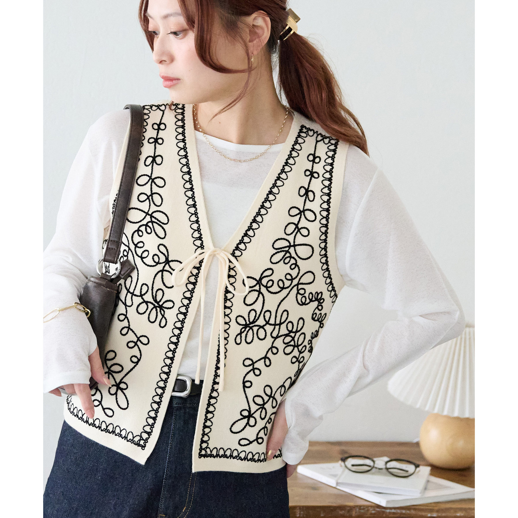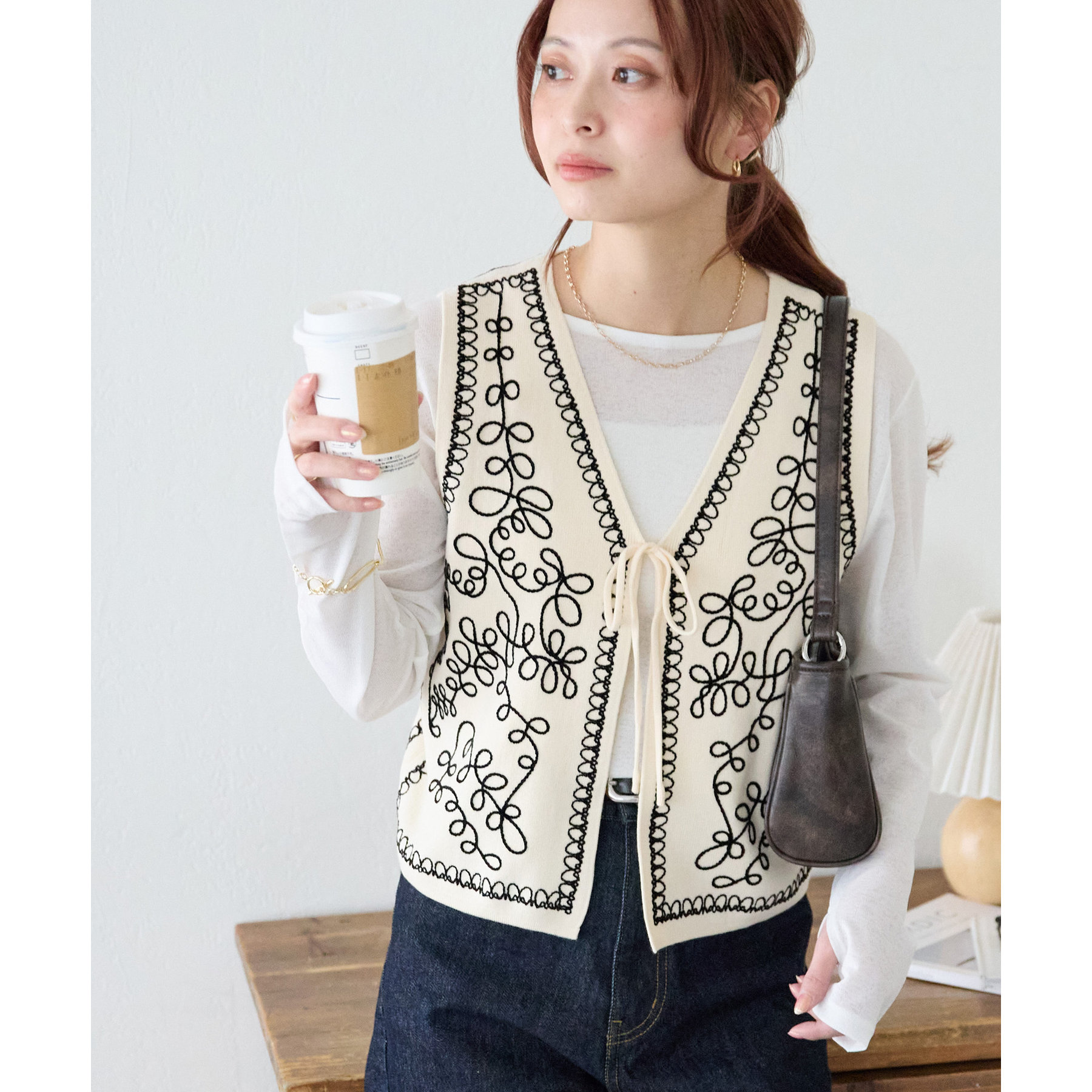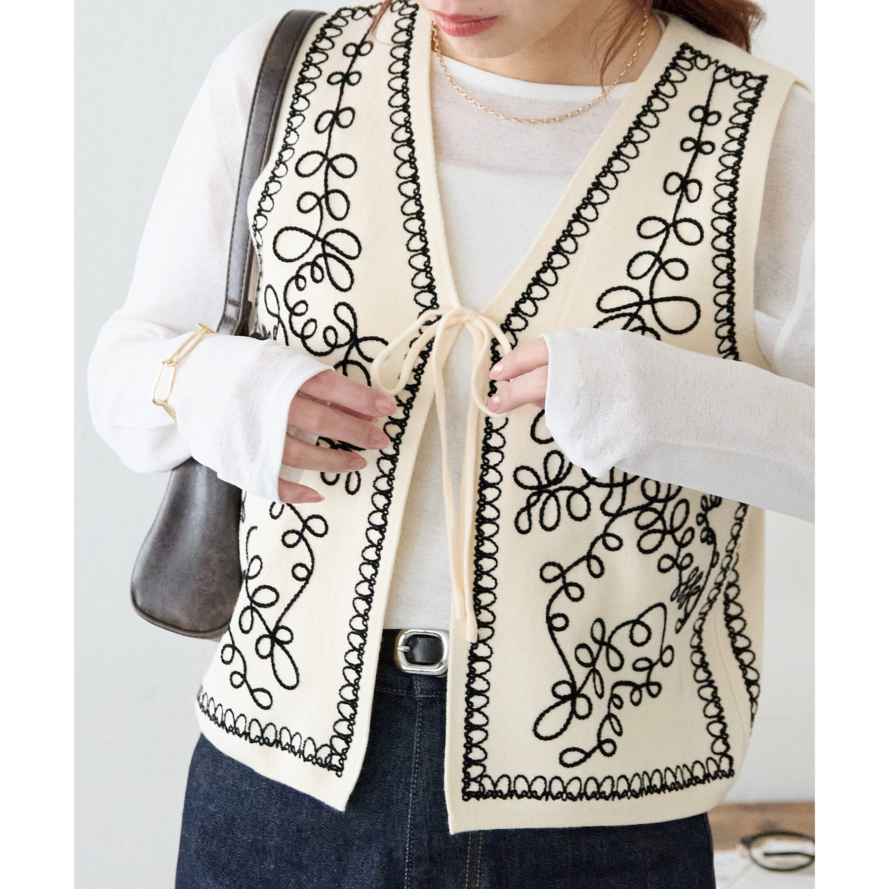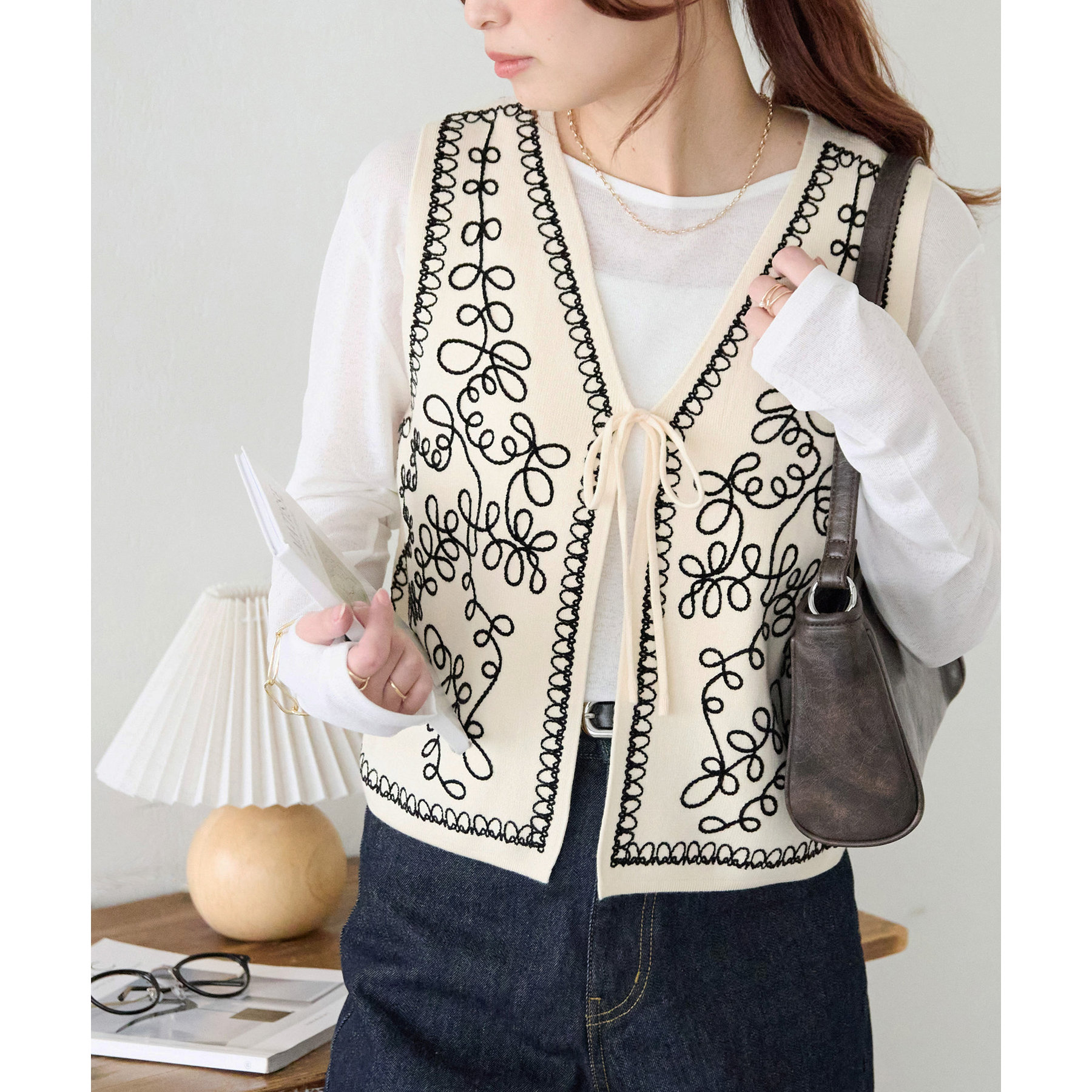 繊細な刺繍が魅力!着回し抜群ニットベスト