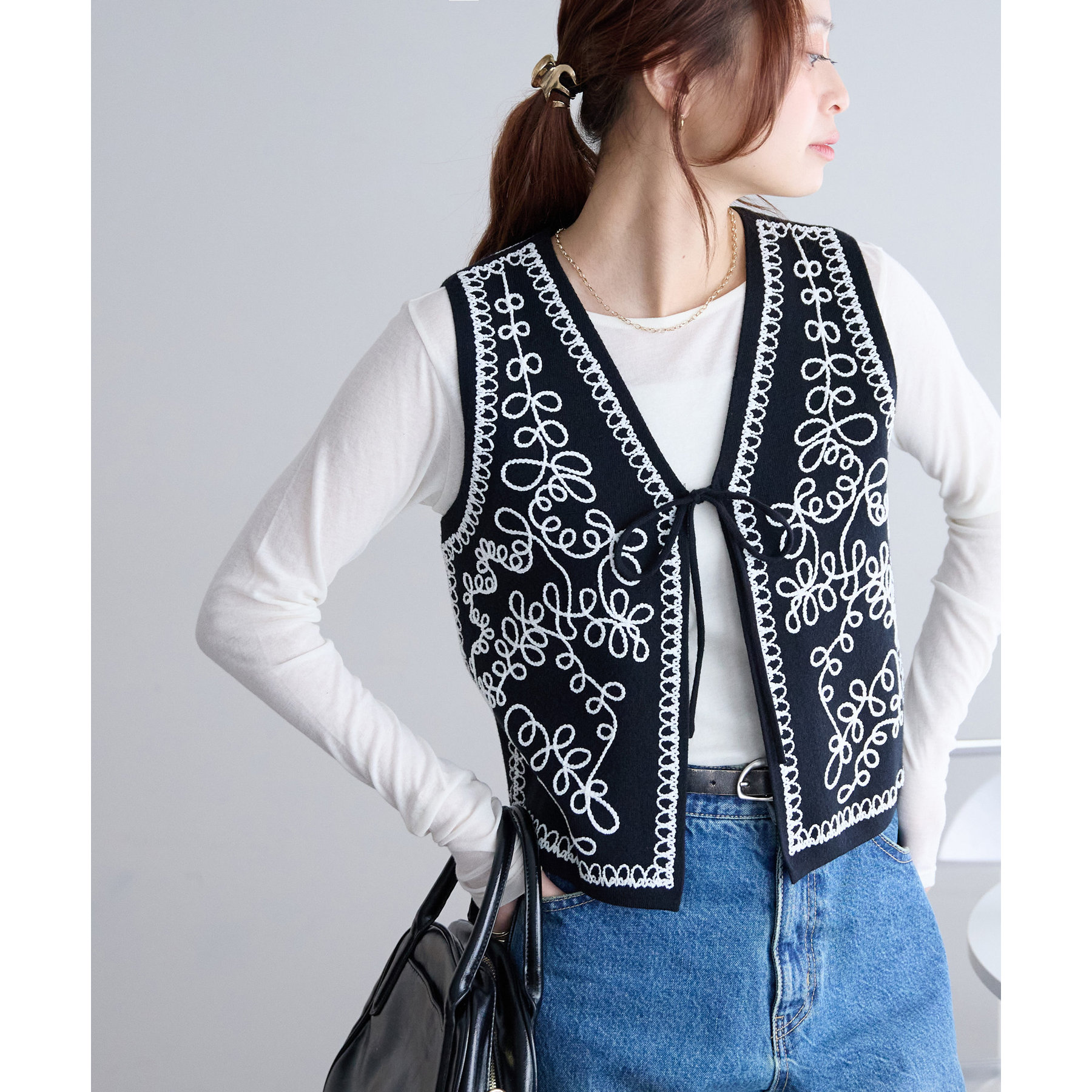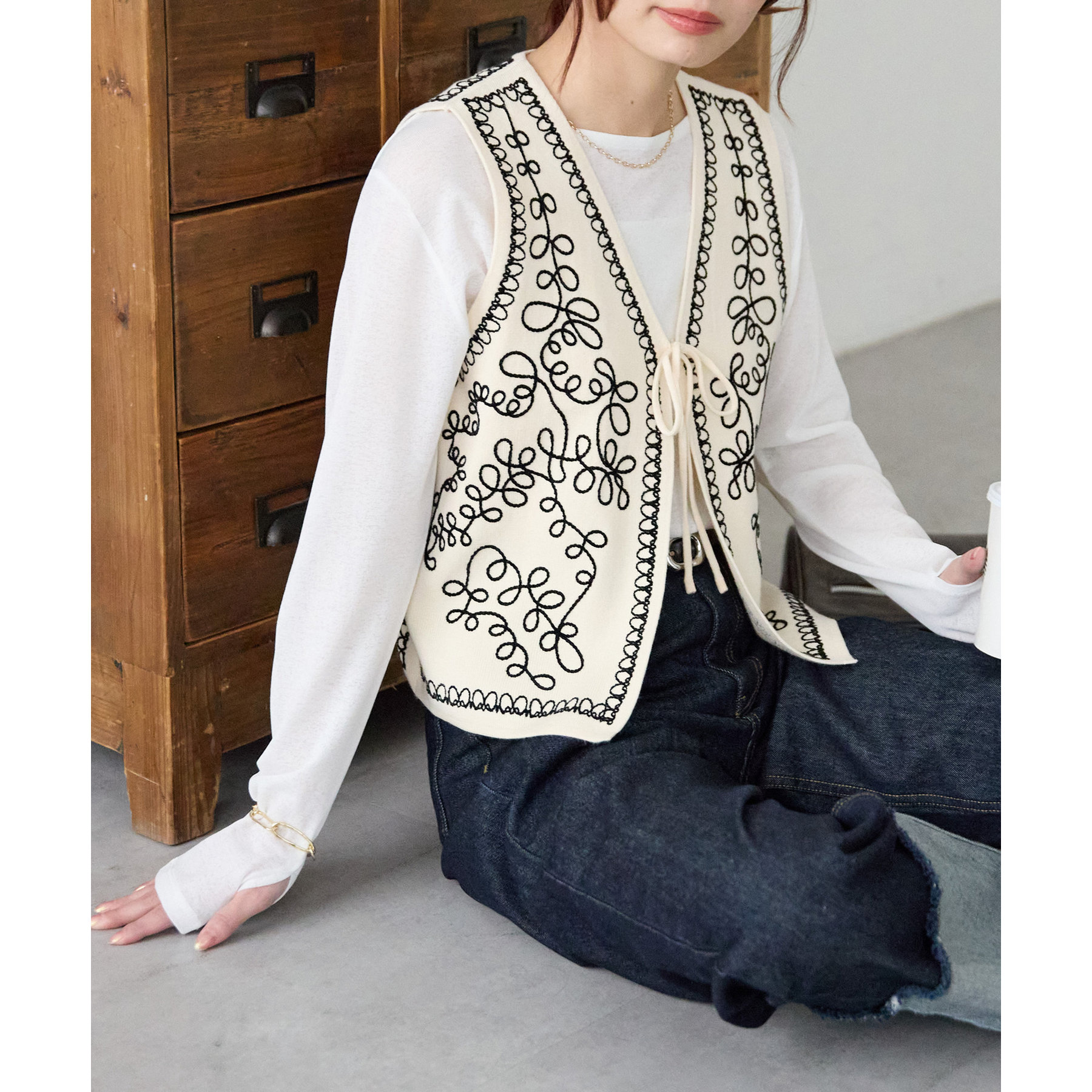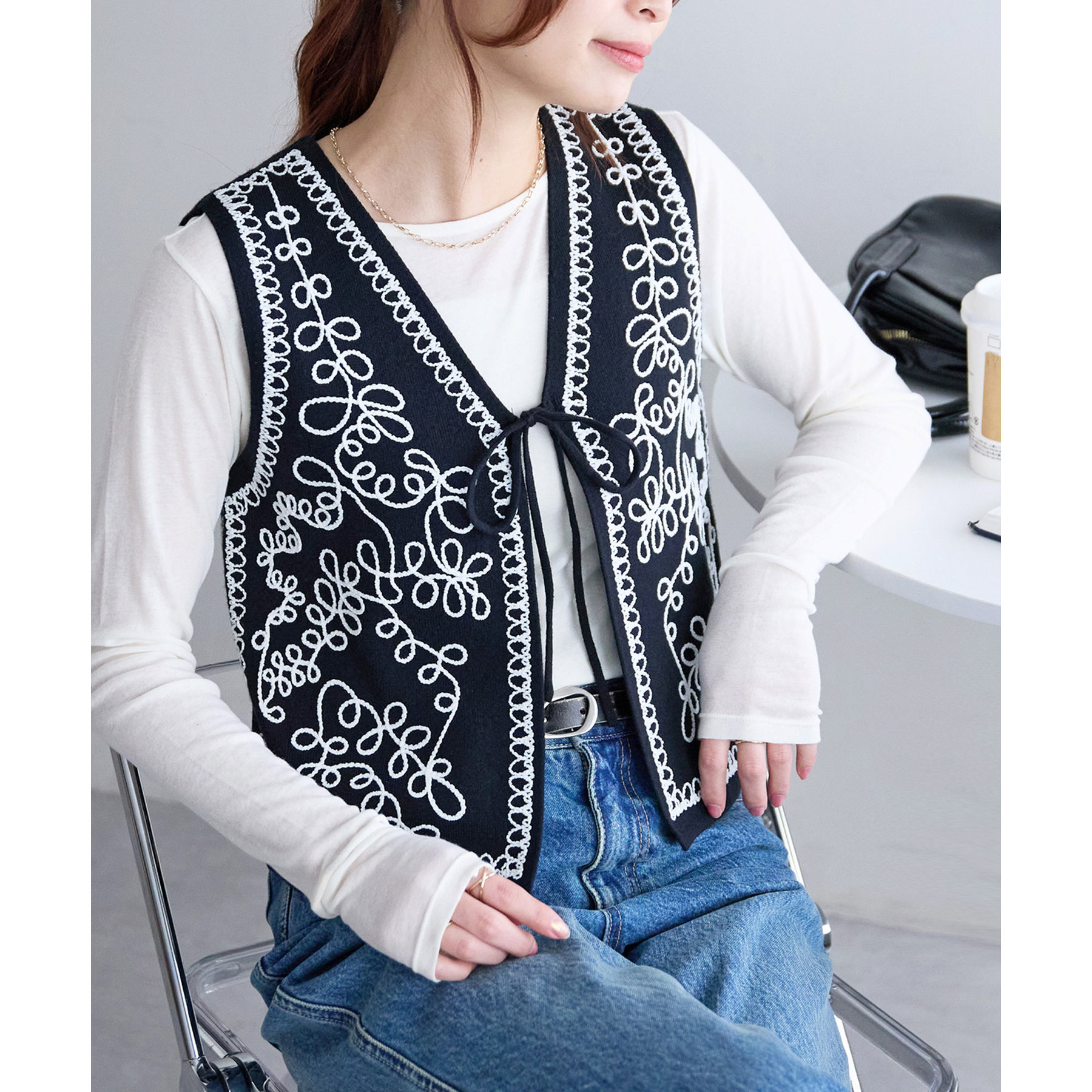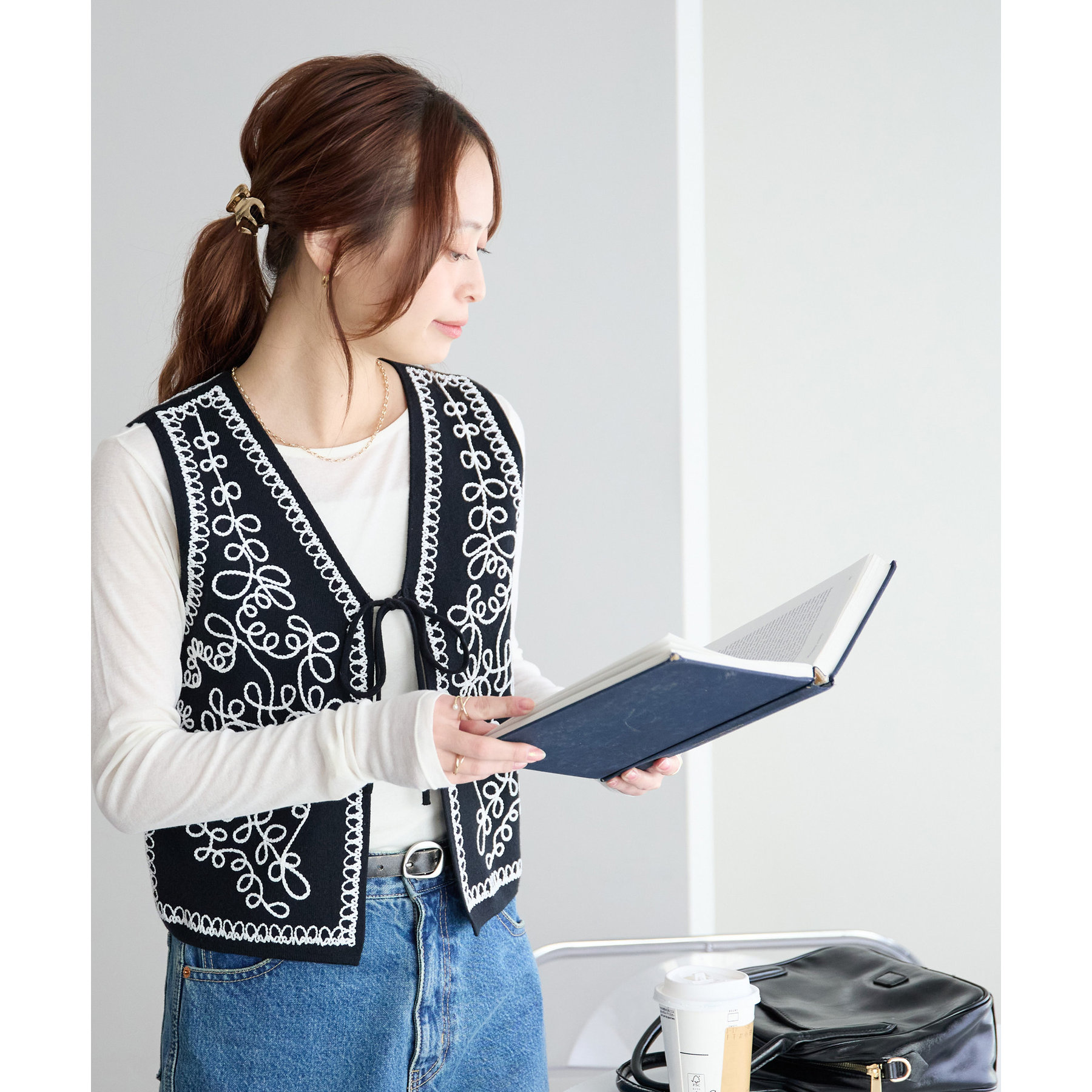 繊細な刺繍が魅力!着回し抜群ニットベスト