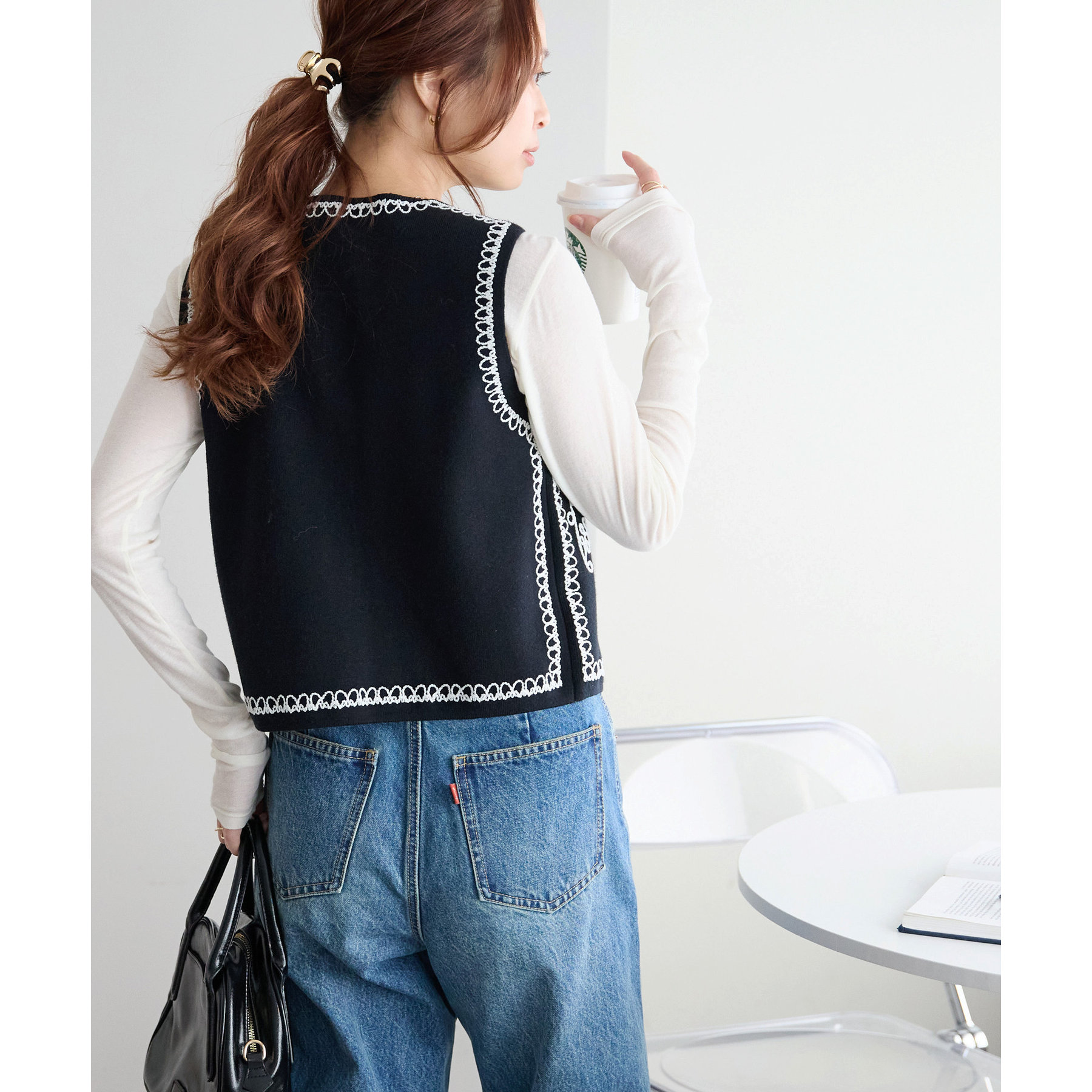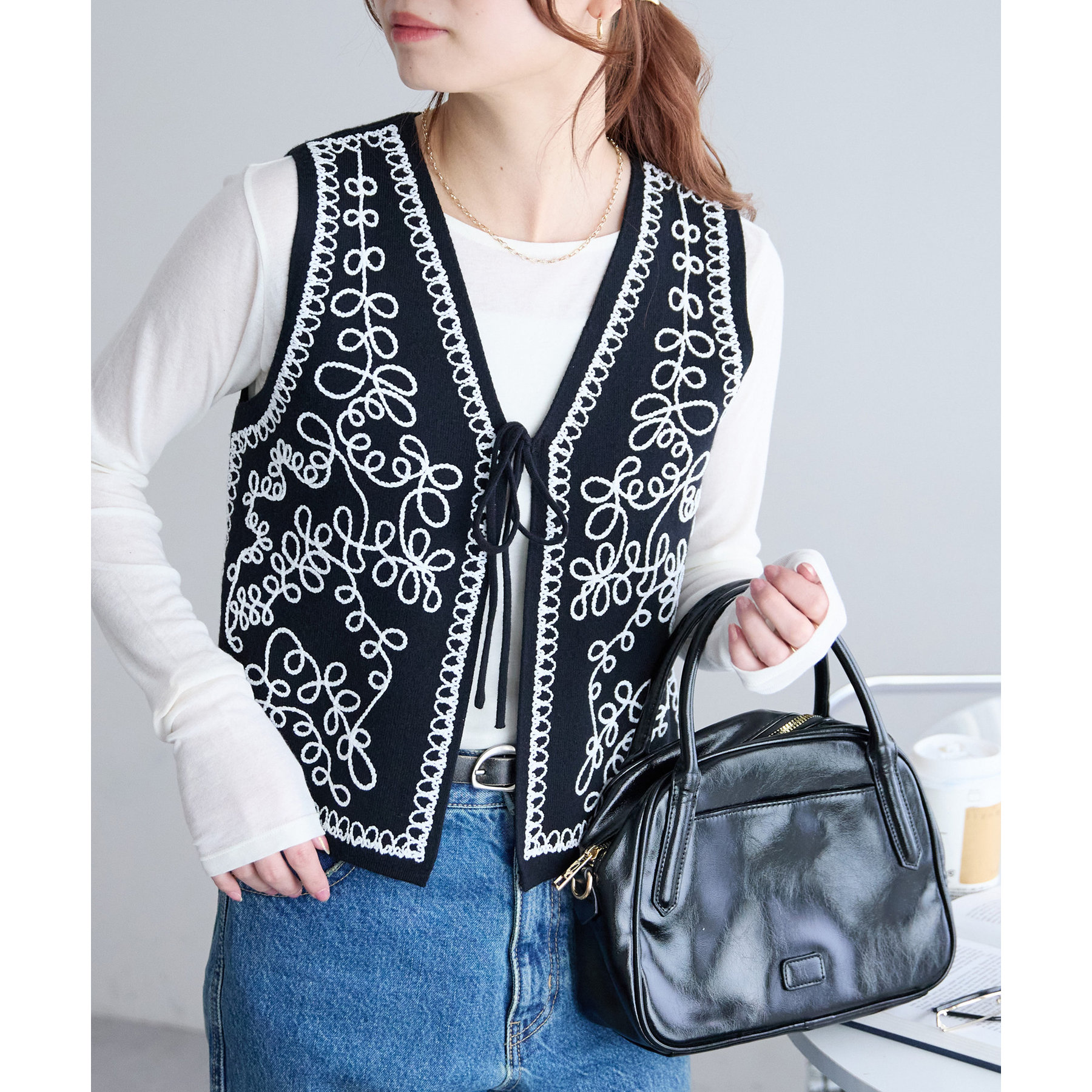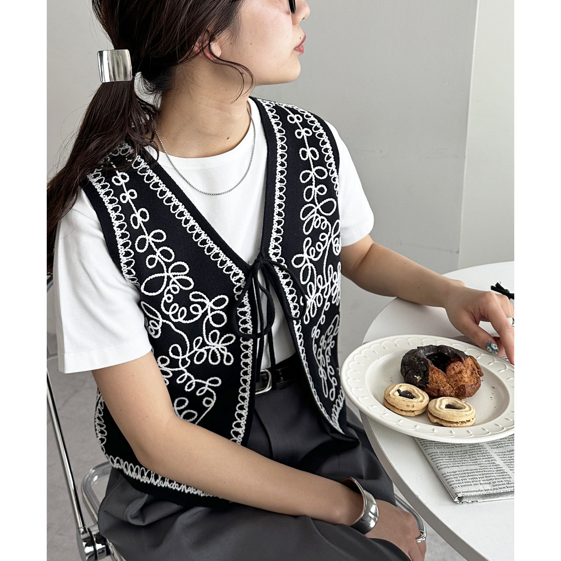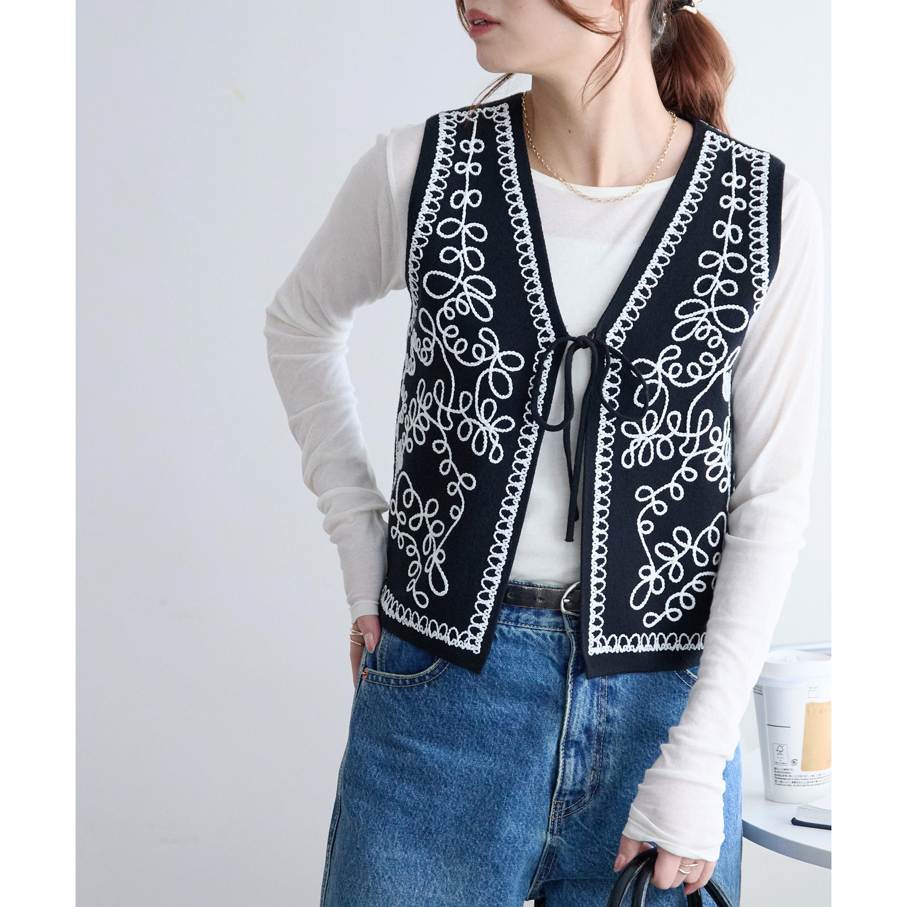 繊細な刺繍が魅力!着回し抜群ニットベスト