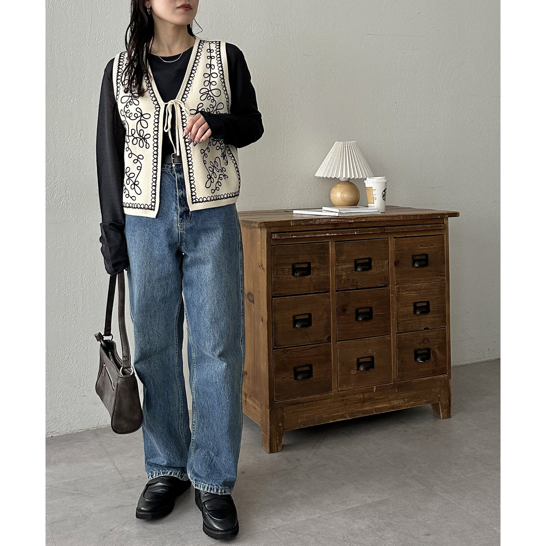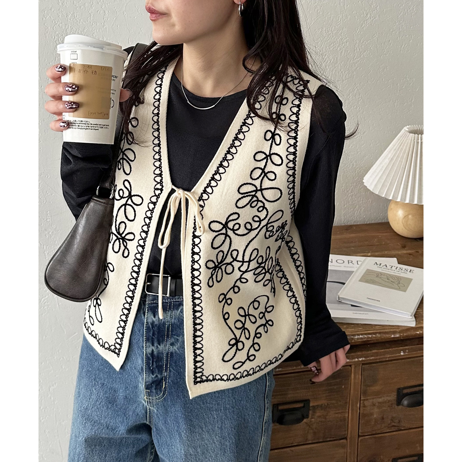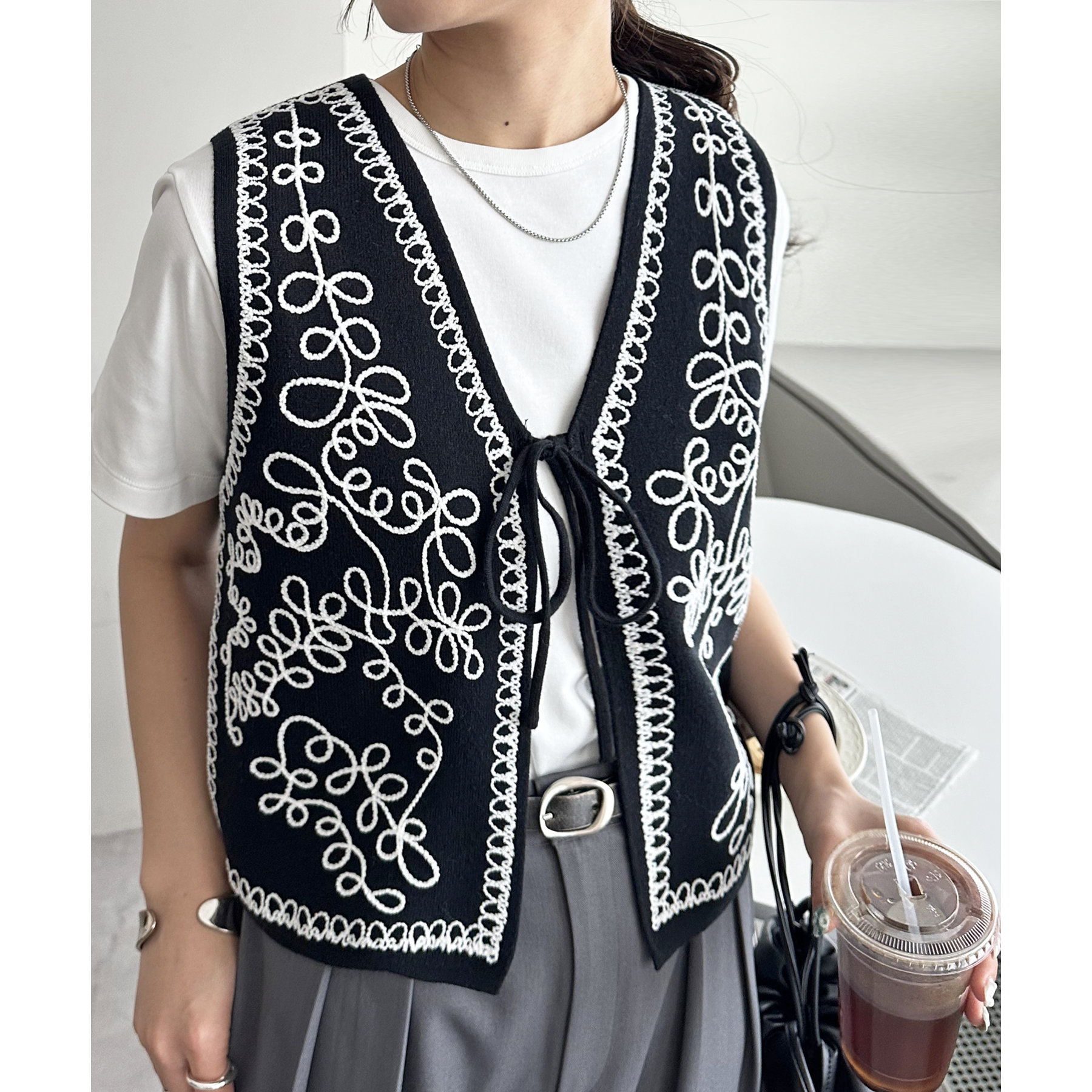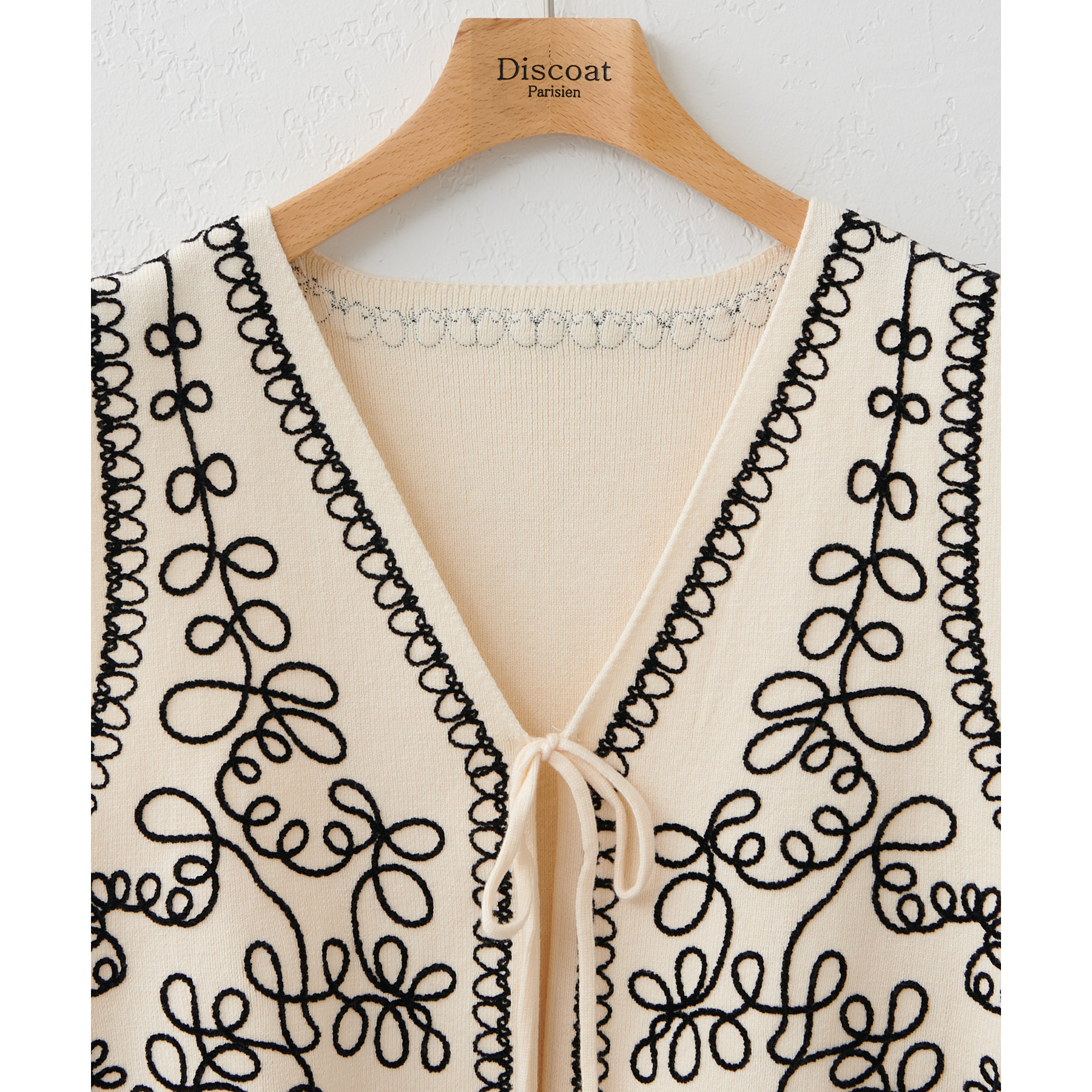 繊細な刺繍が魅力!着回し抜群ニットベスト
