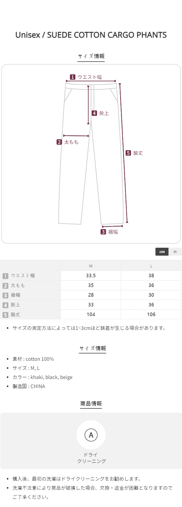 SUEDE COTTON CARGO PANTS(KHAKI)
