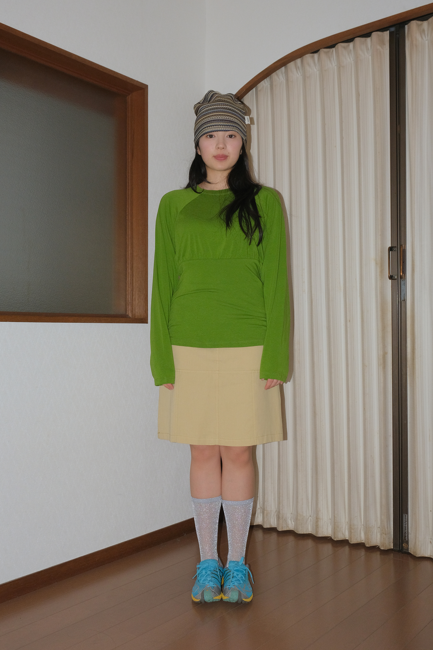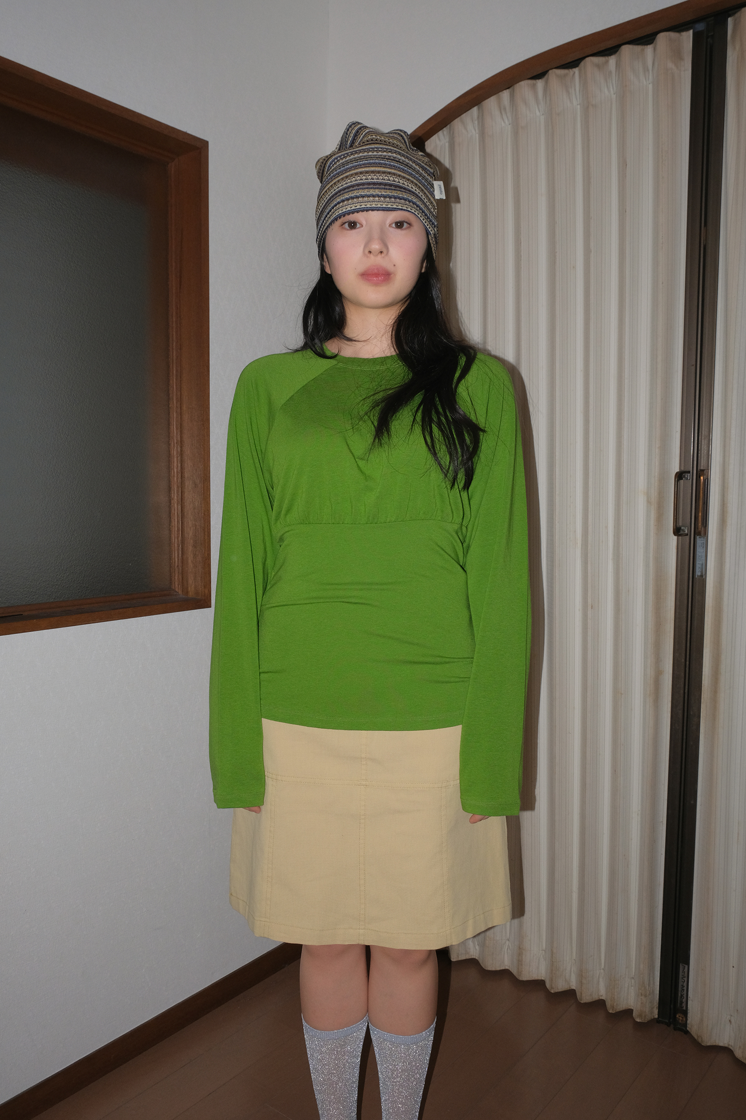 SLIM SHIRRING TEE GRASS