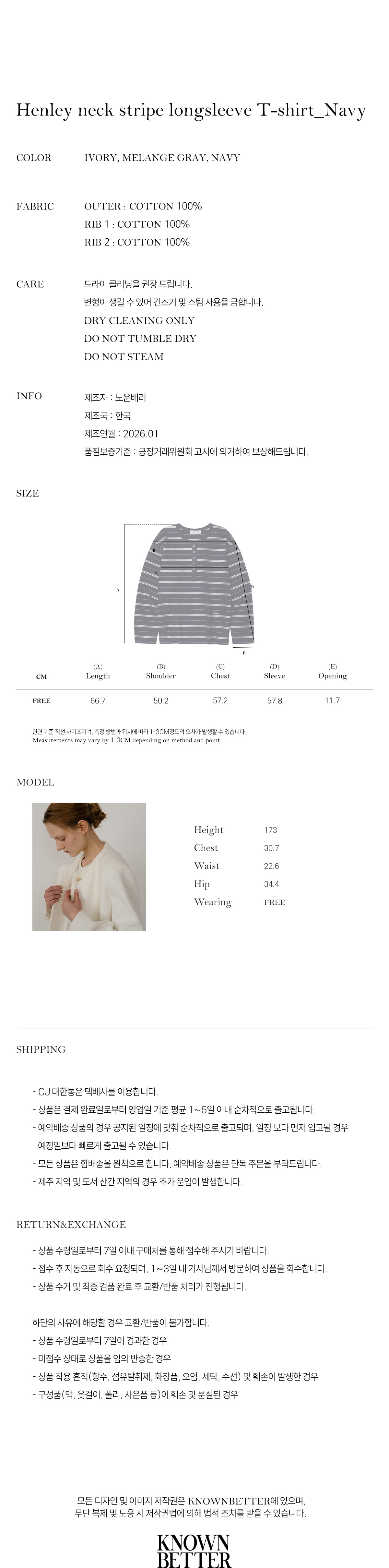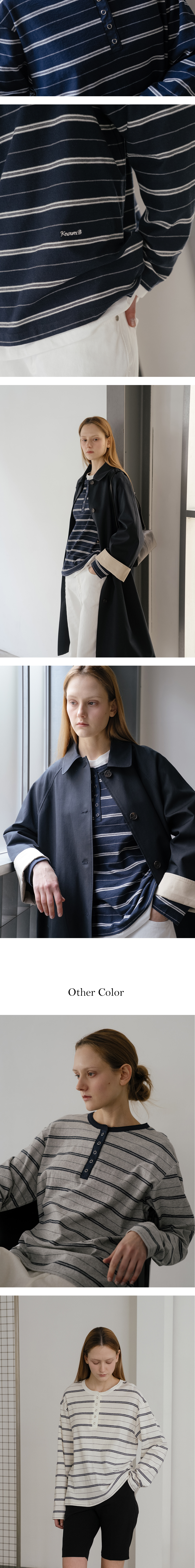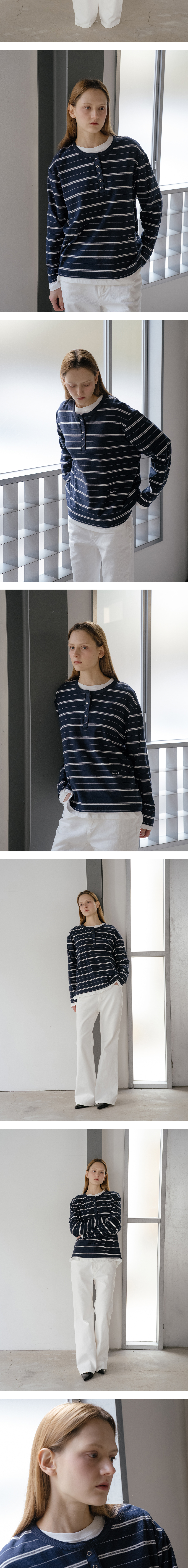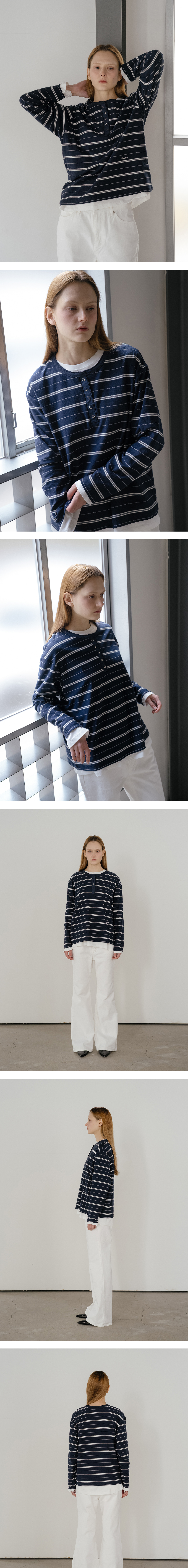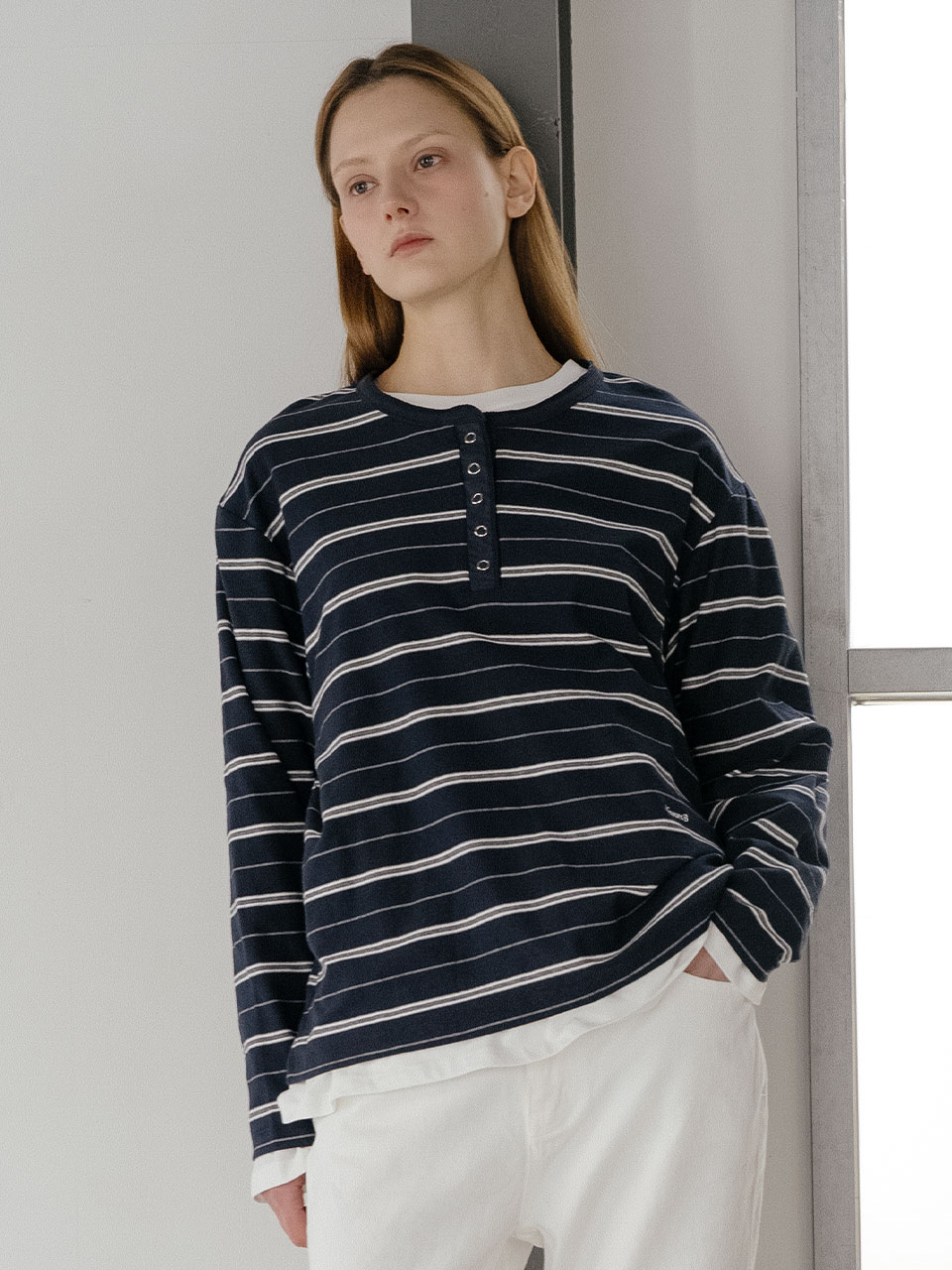 Henley neck stripe longsleeve T-shirt [KNSS05TS03]_Navy