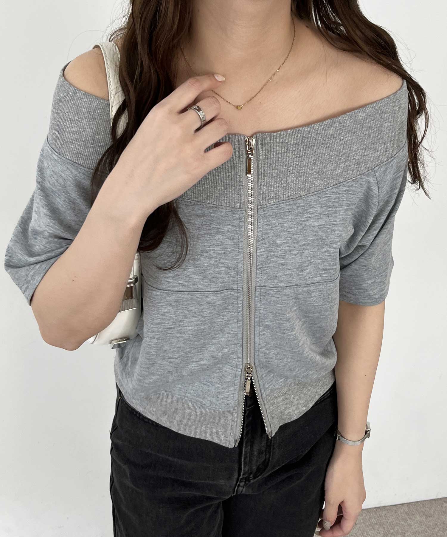 ダブルジップオフショルトップス