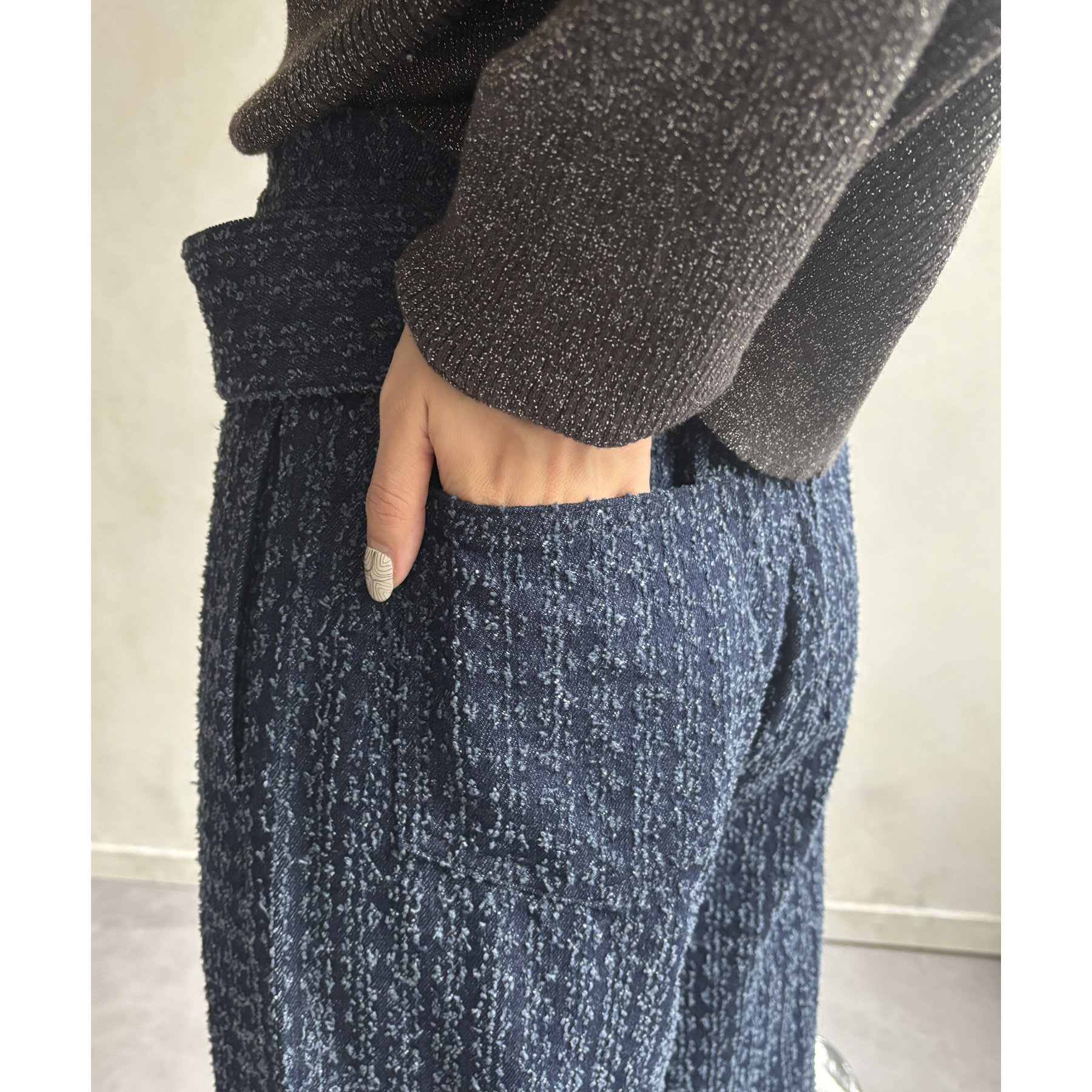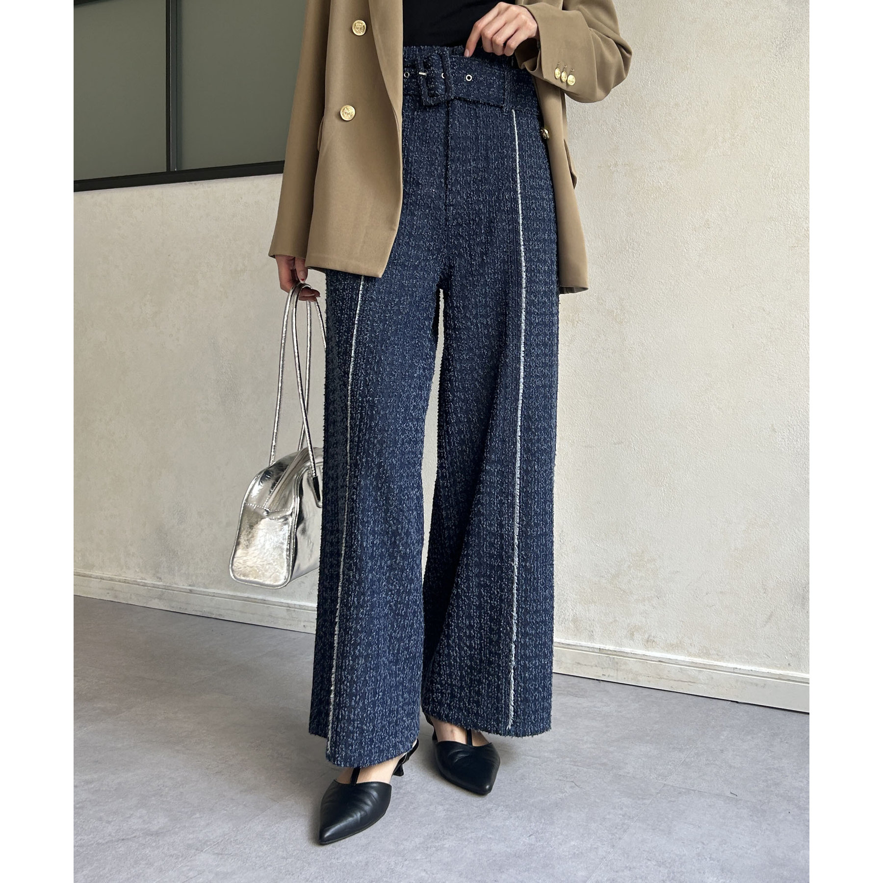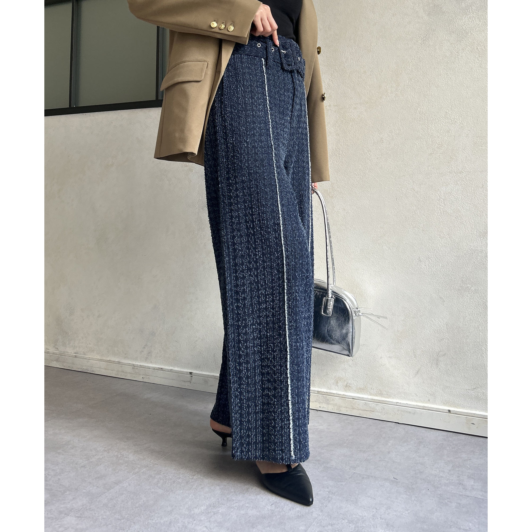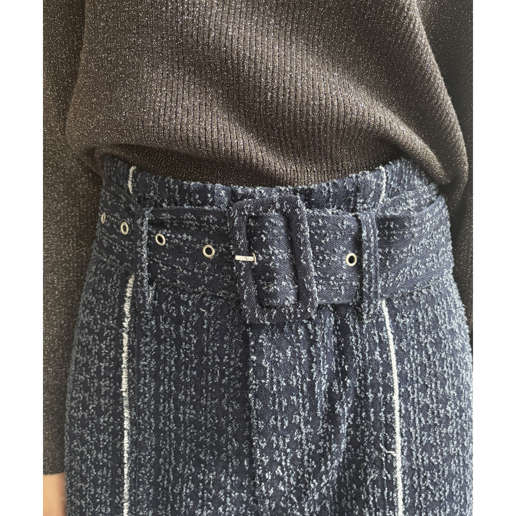 ベルト付きジャガードデニム