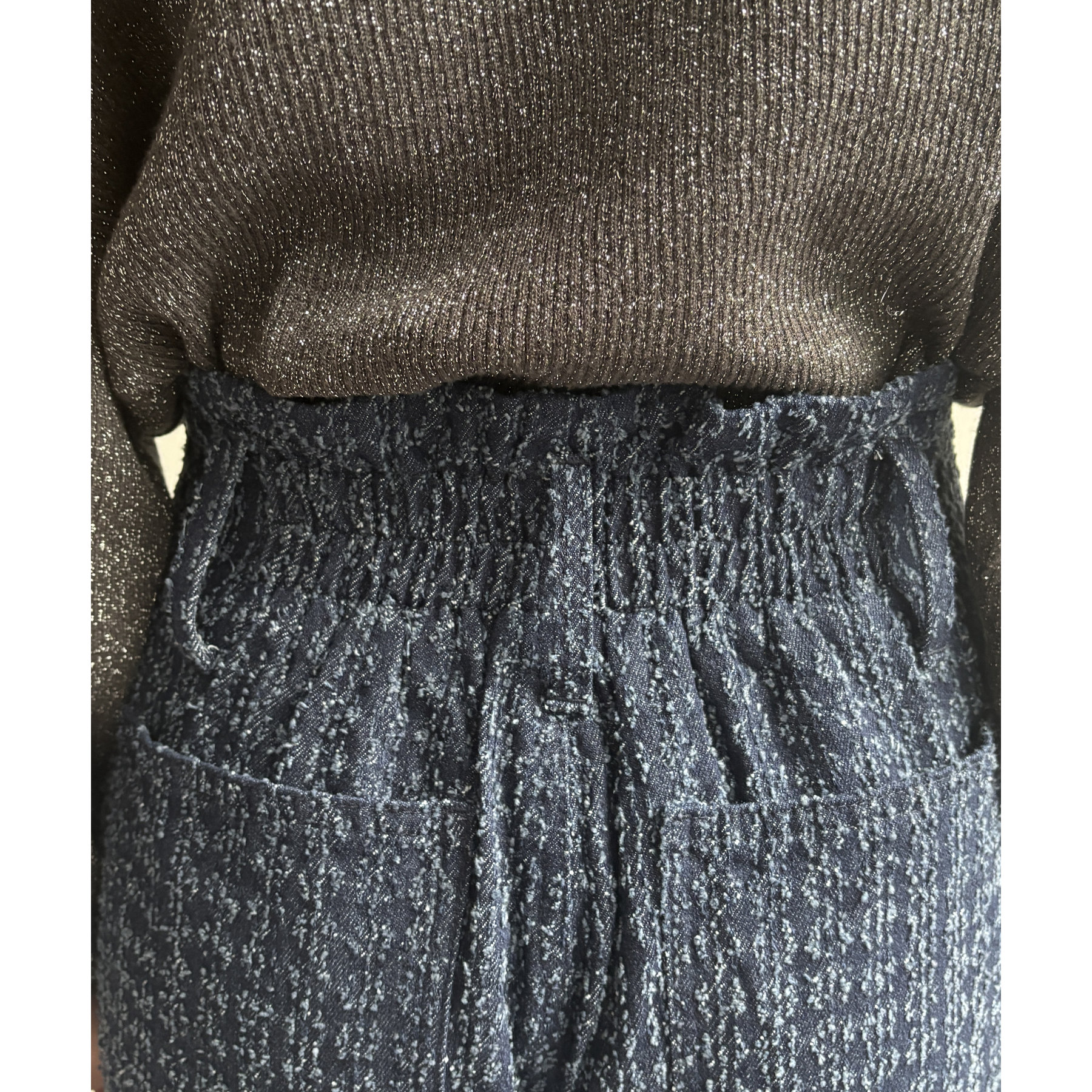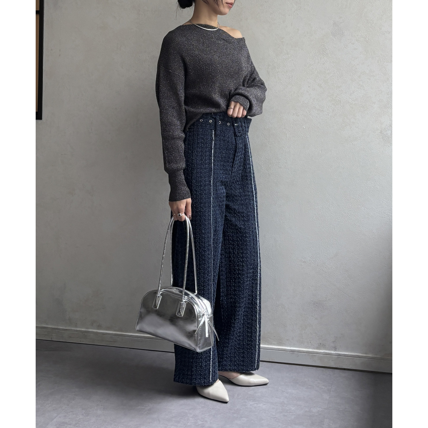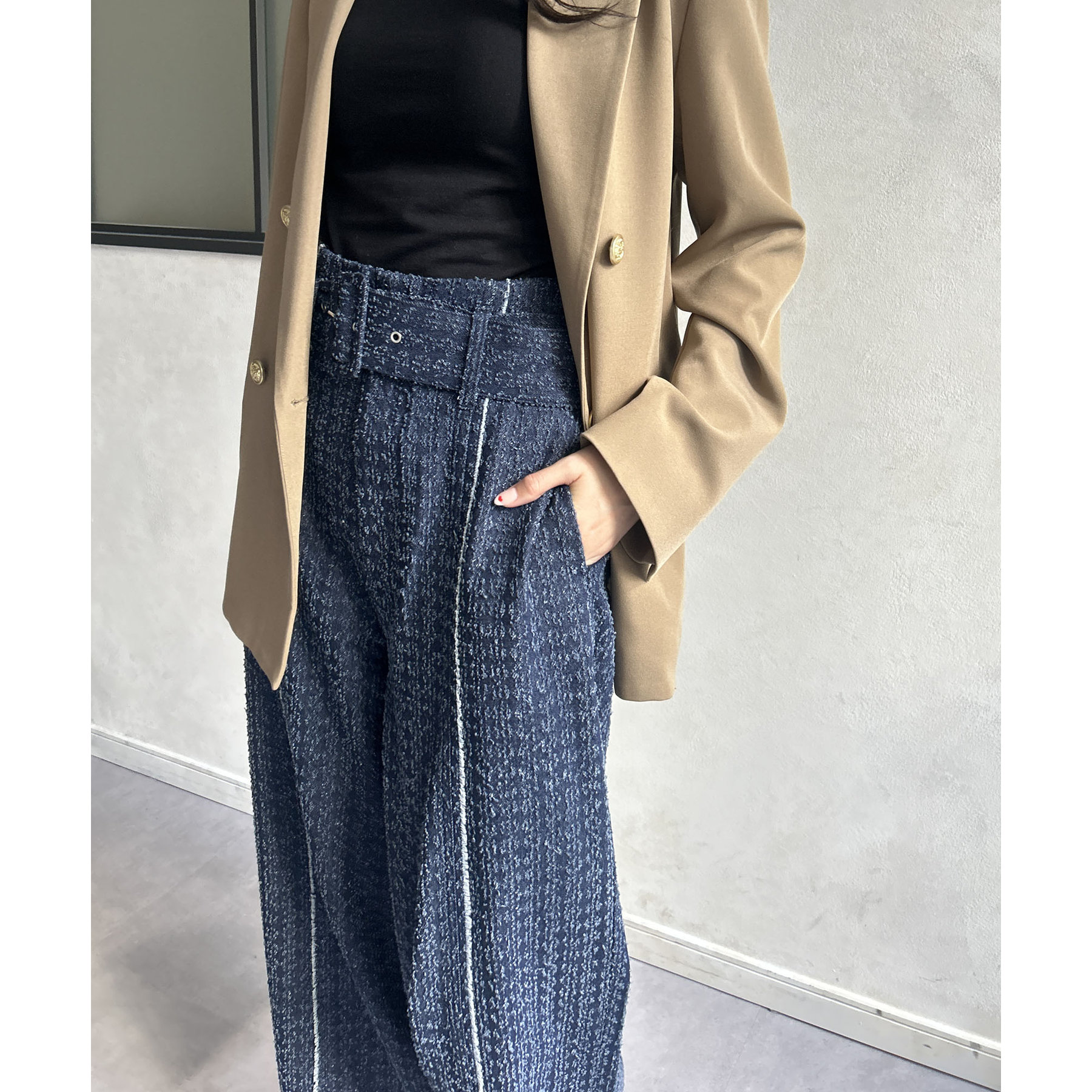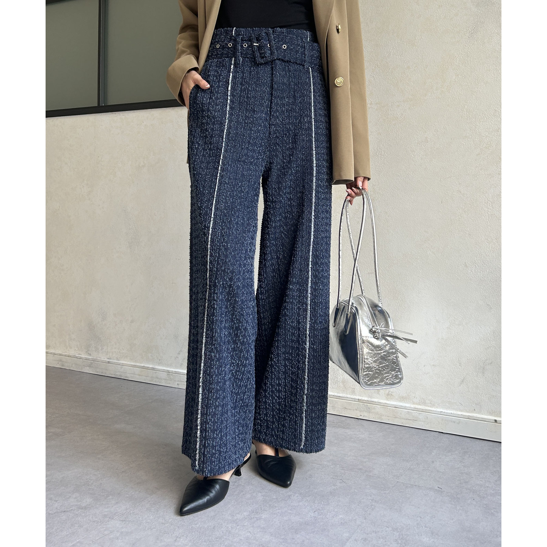 ベルト付きジャガードデニム