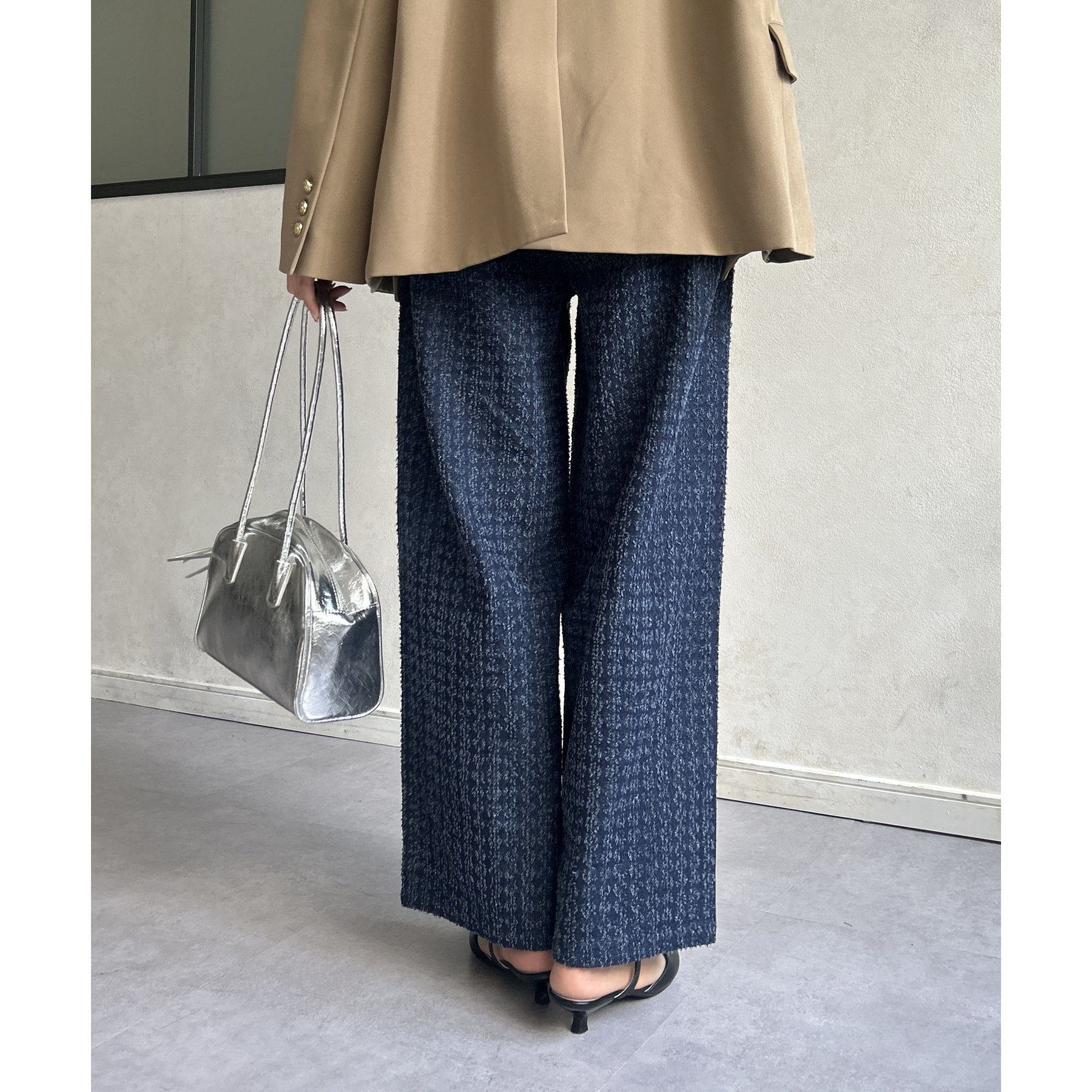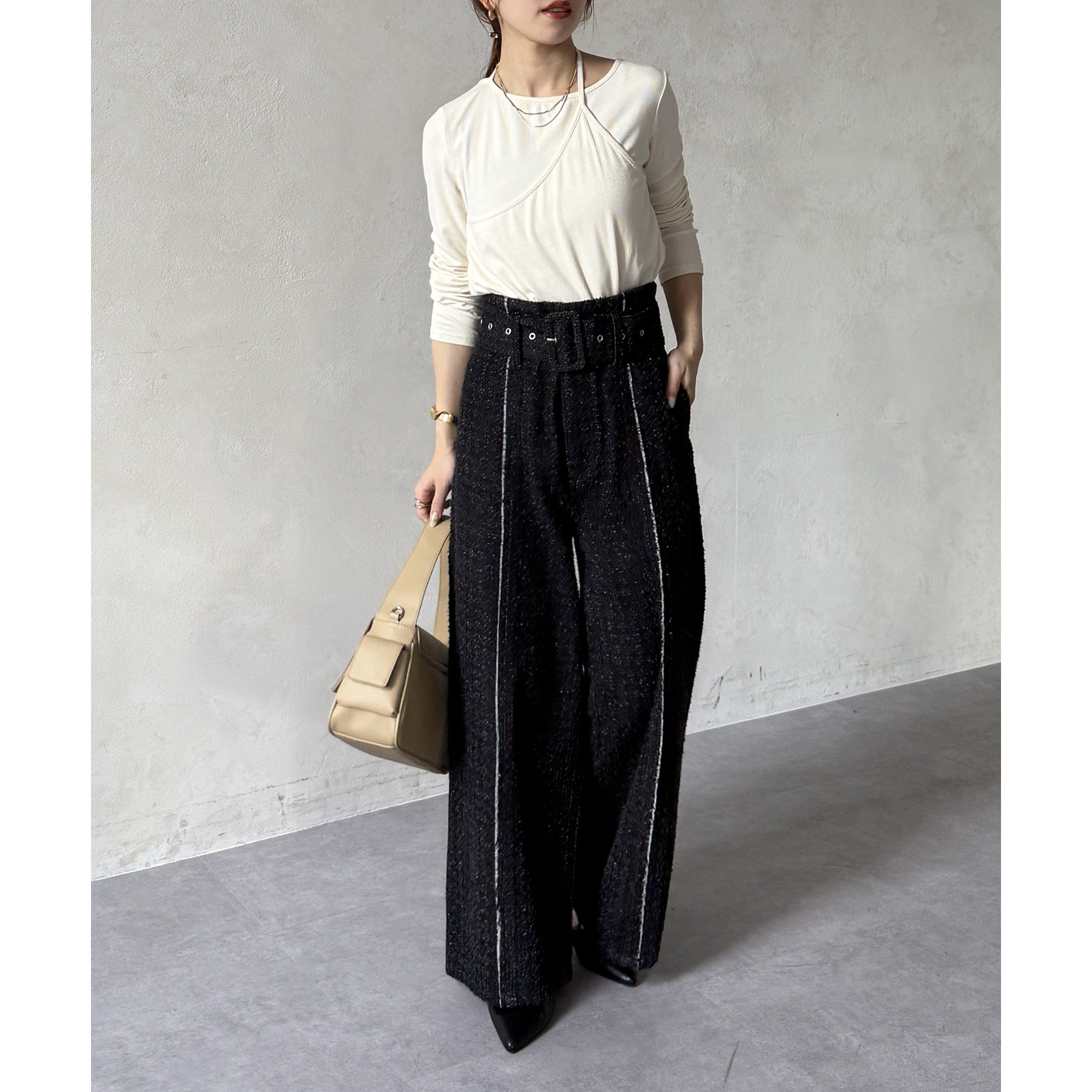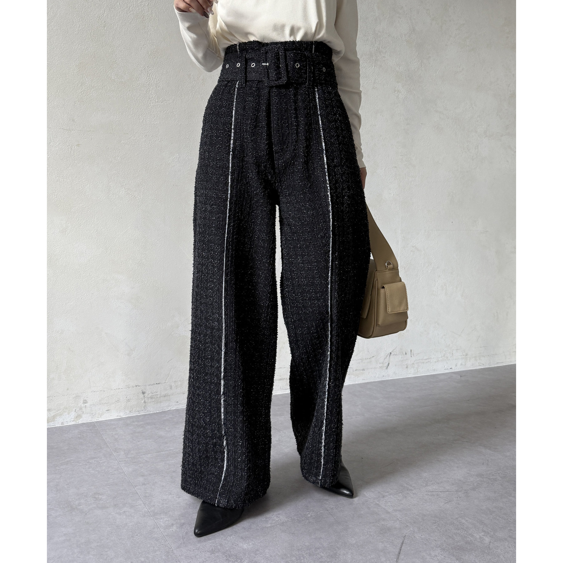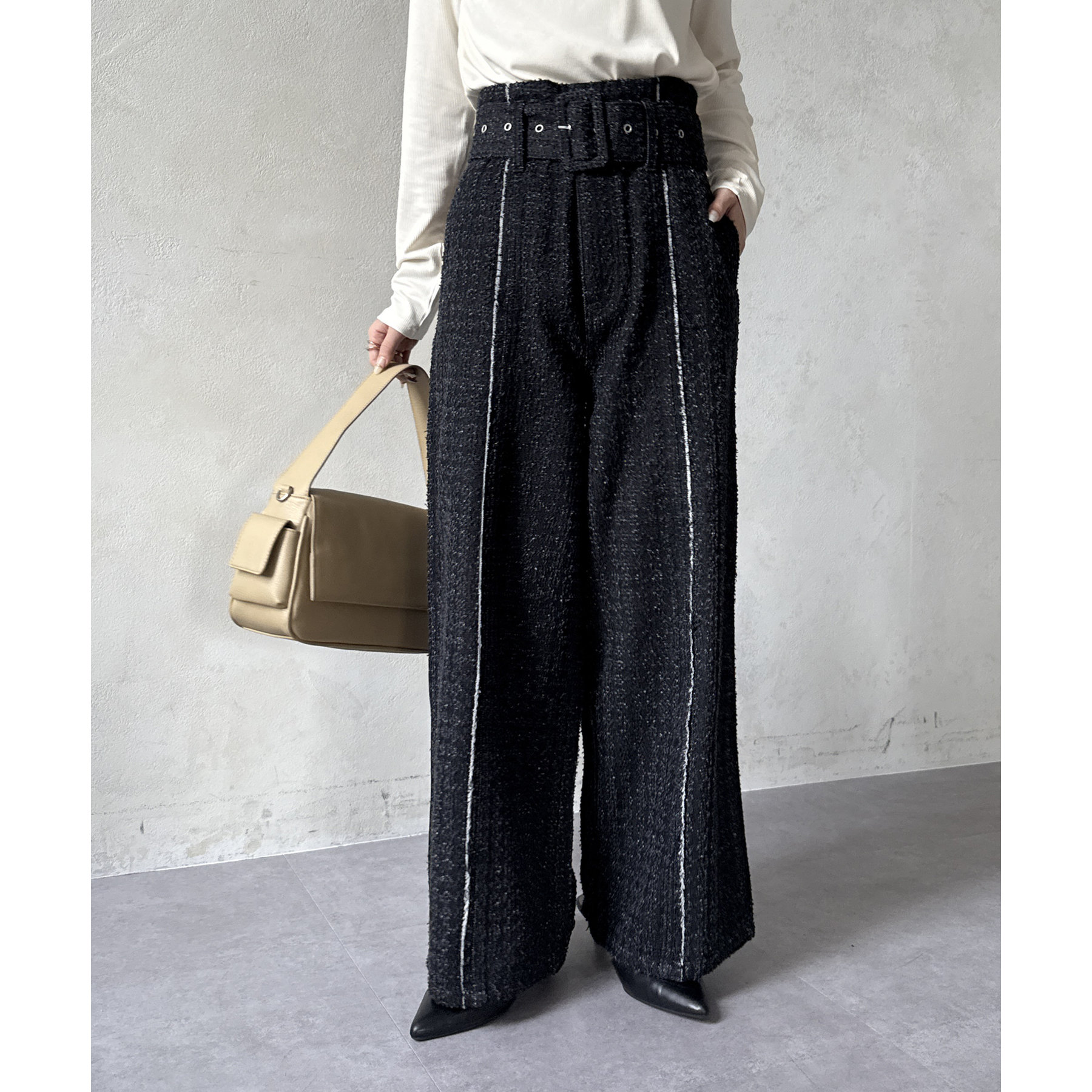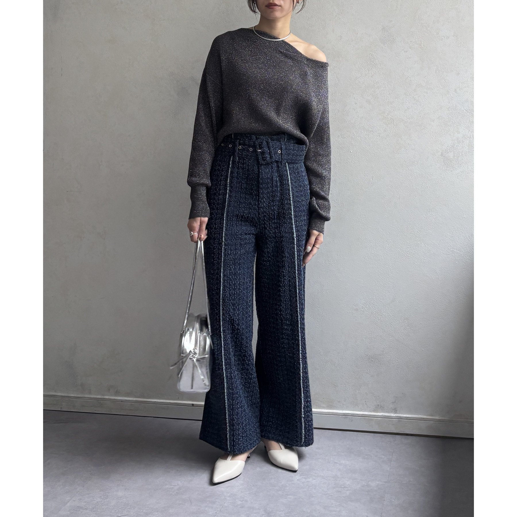 ベルト付きジャガードデニム