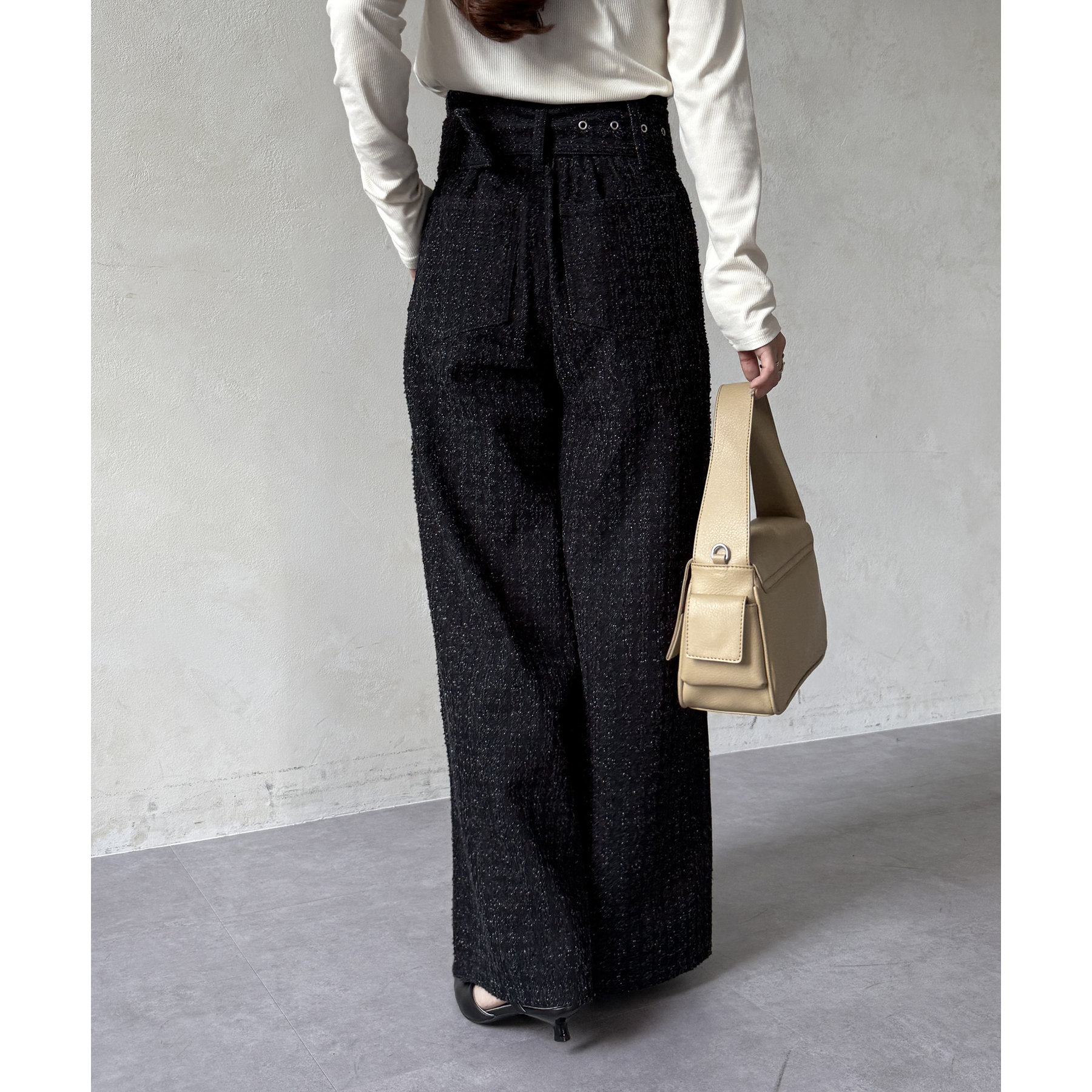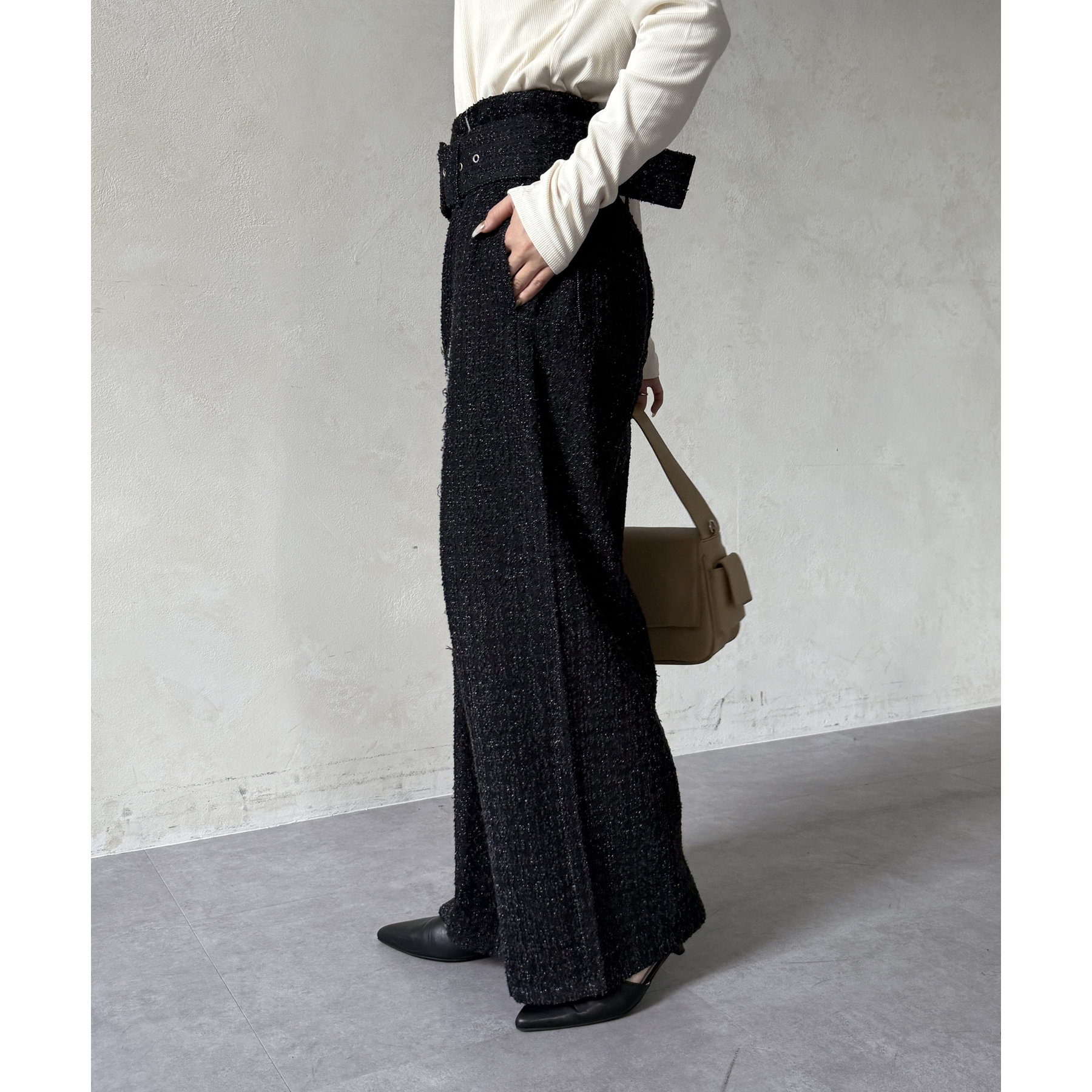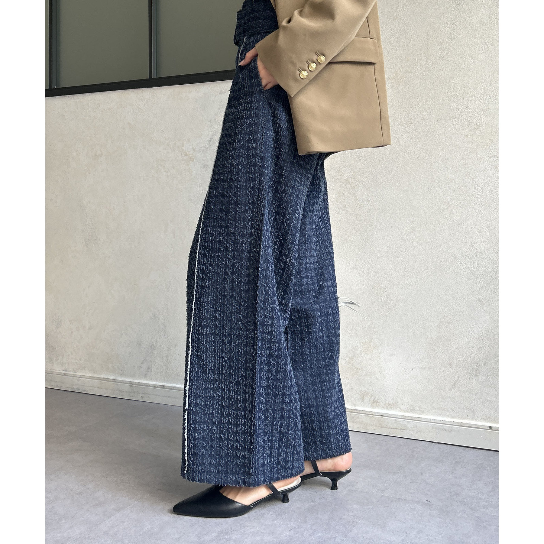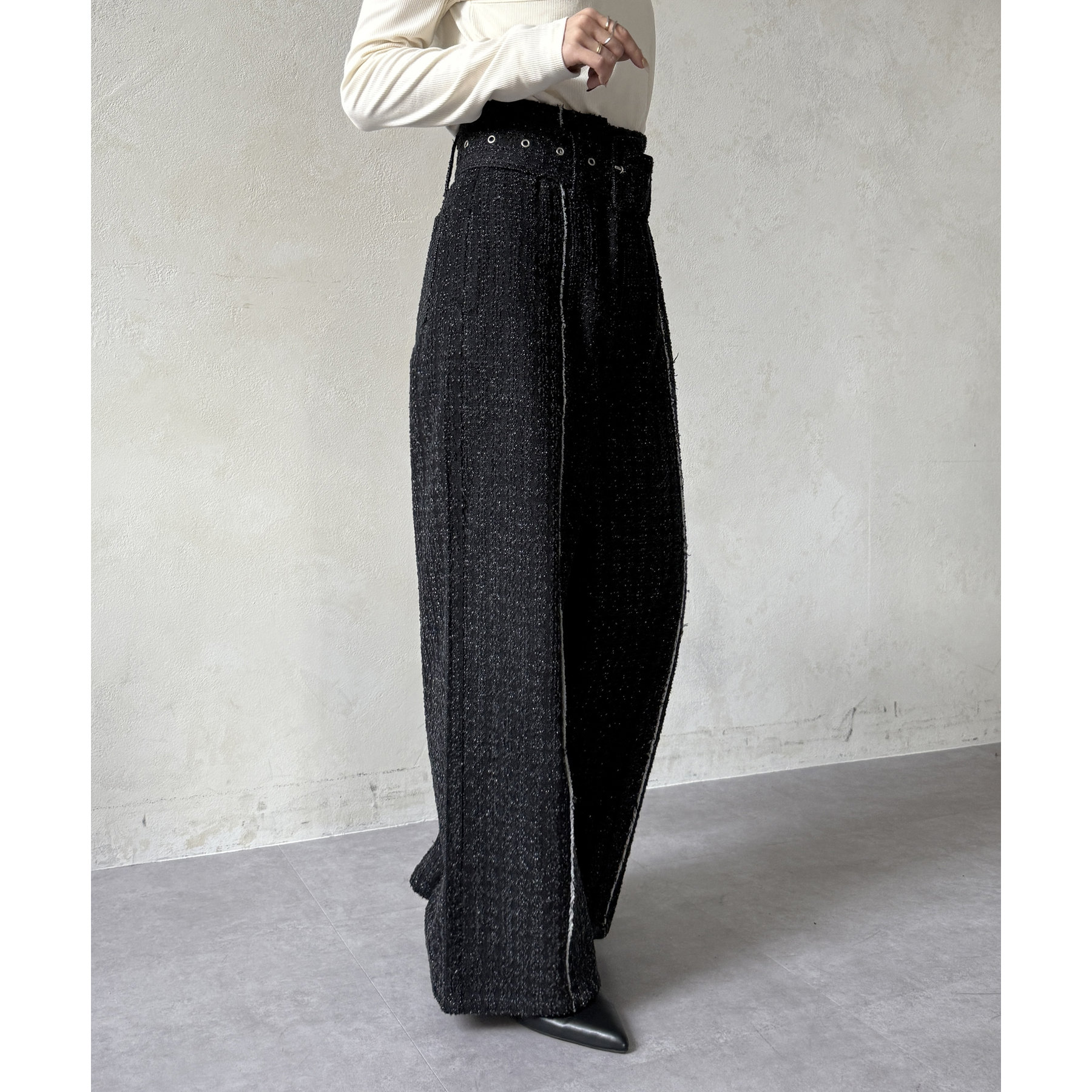 ベルト付きジャガードデニム