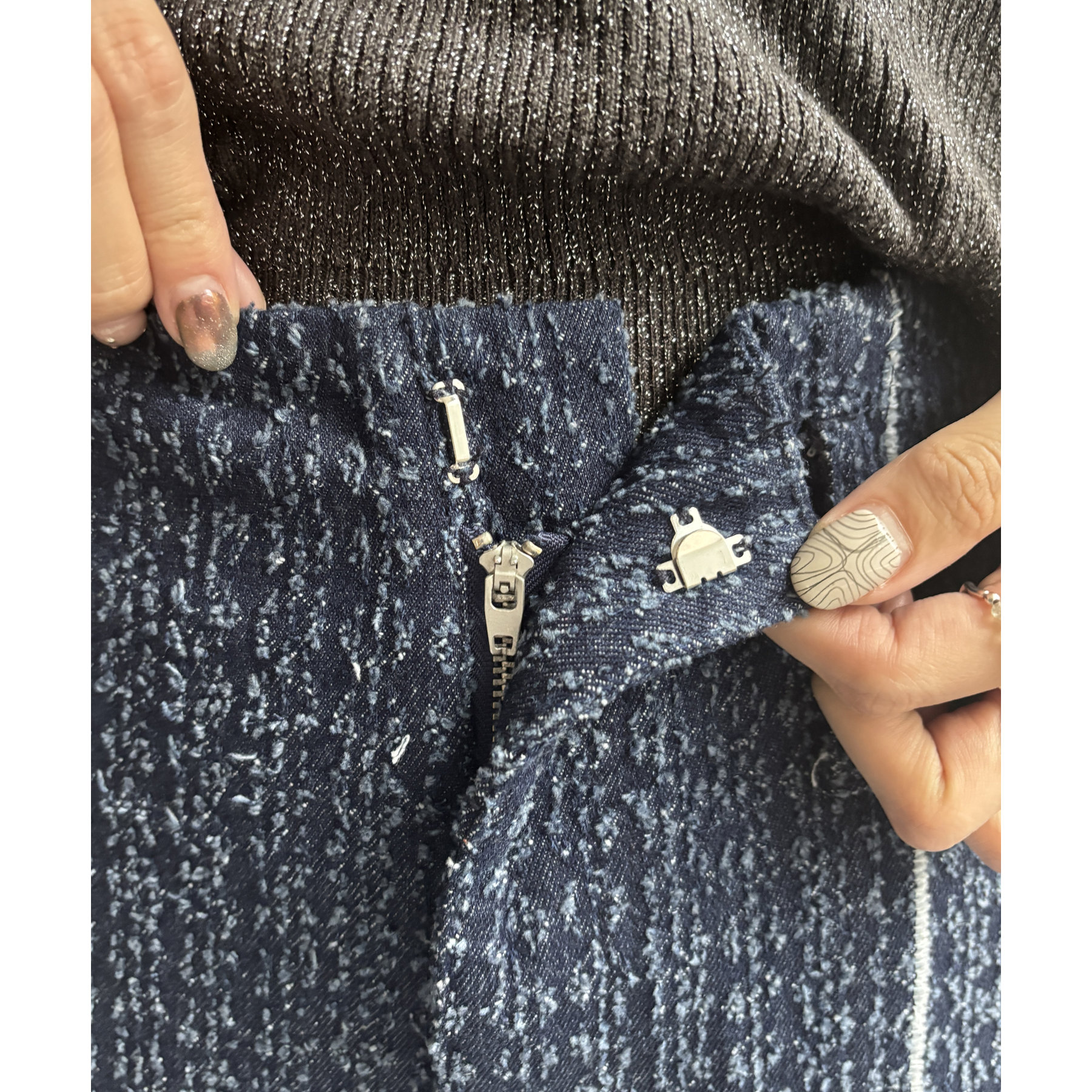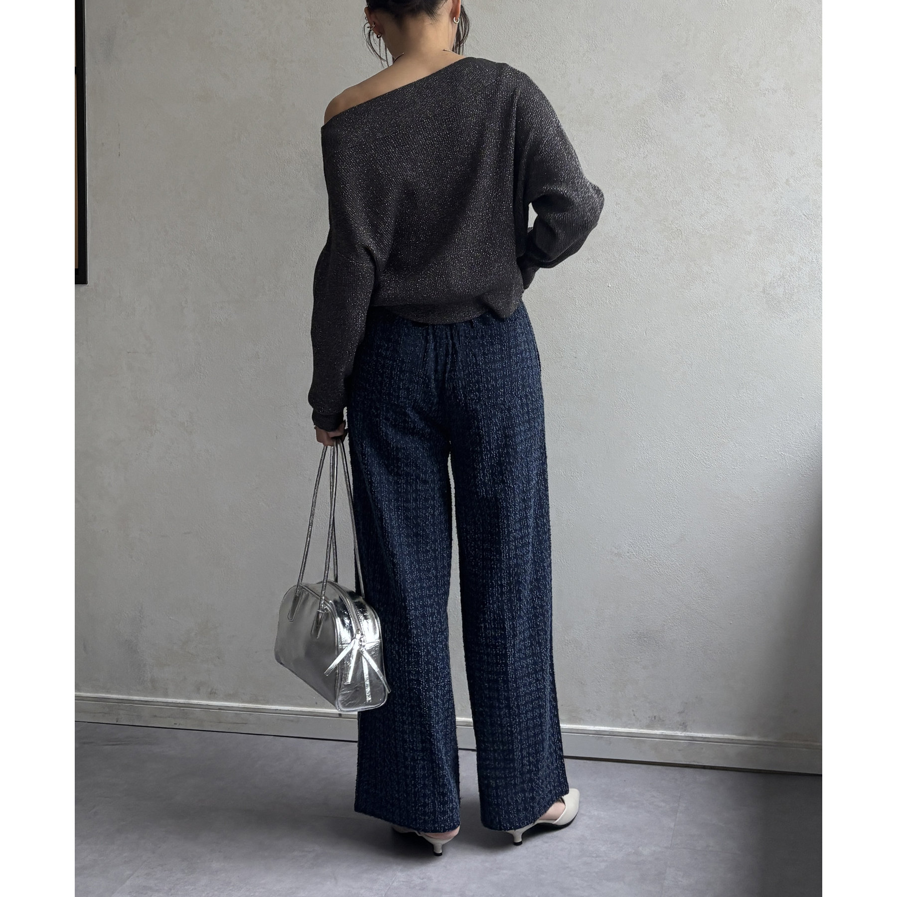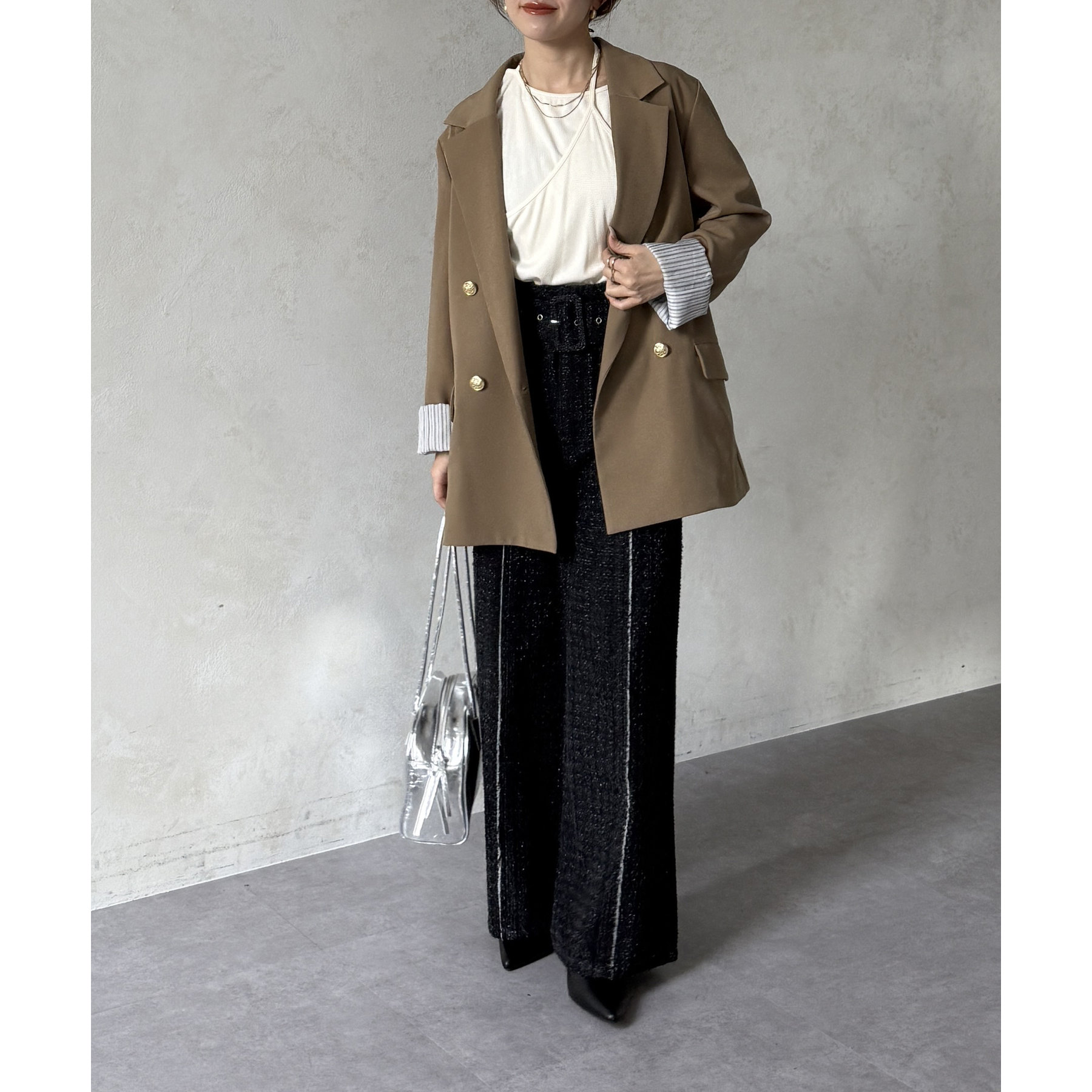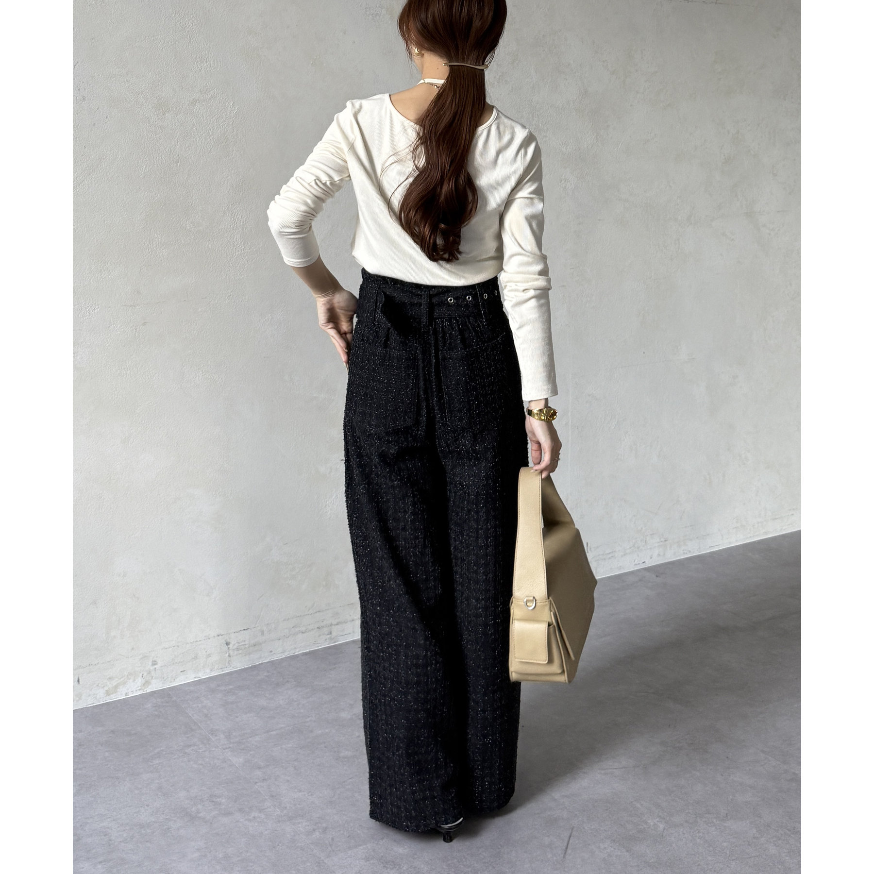 ベルト付きジャガードデニム