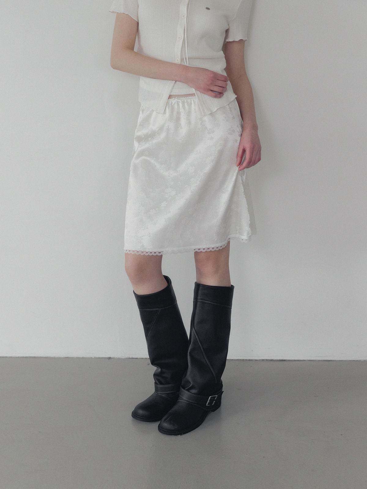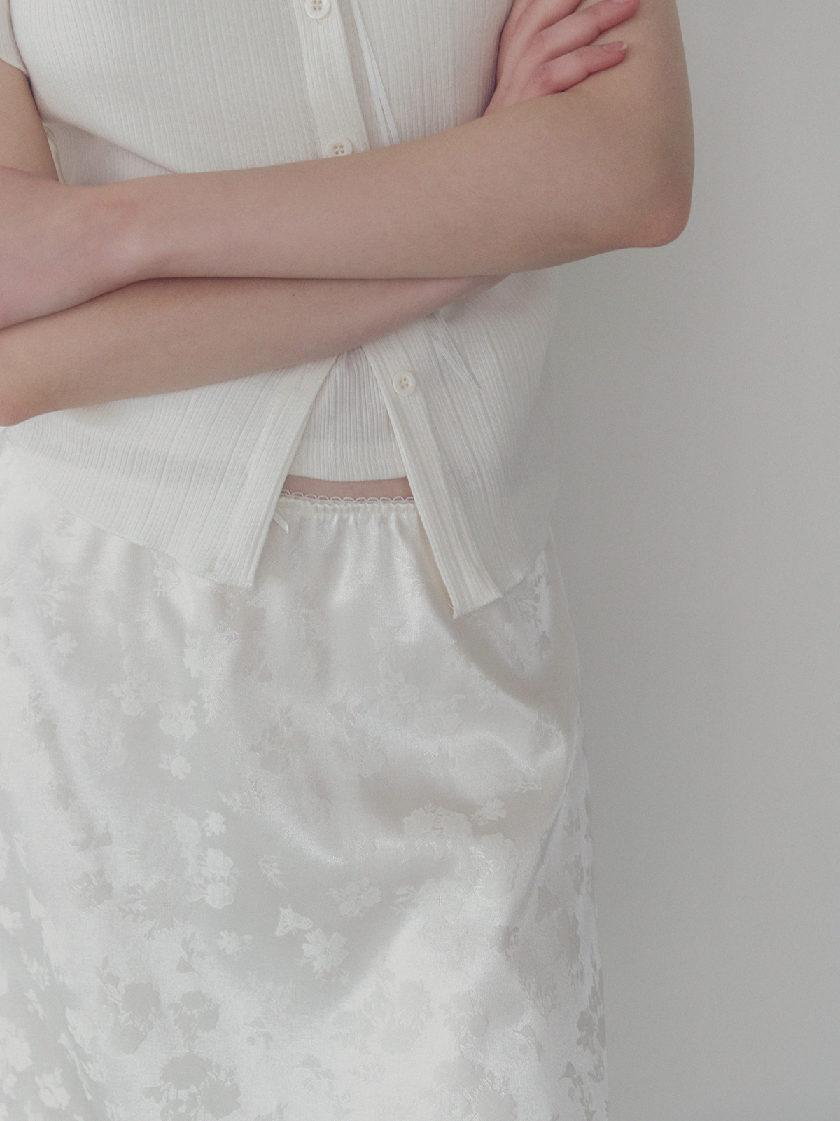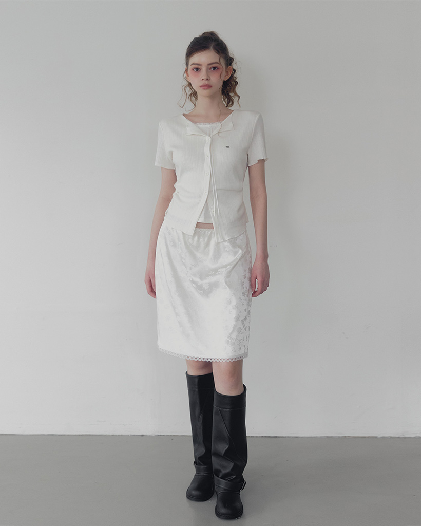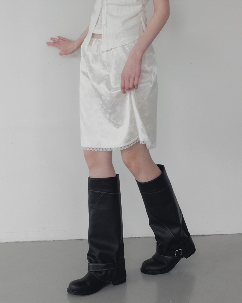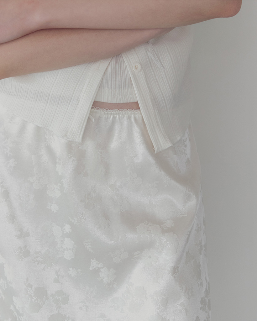 Divet flower satin banding midi skirt