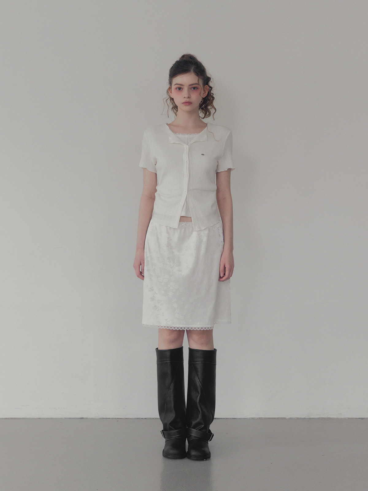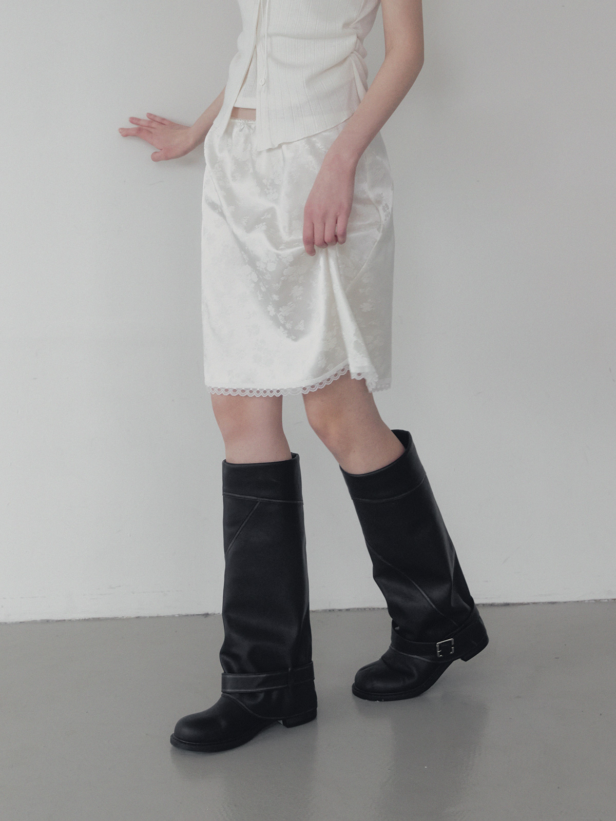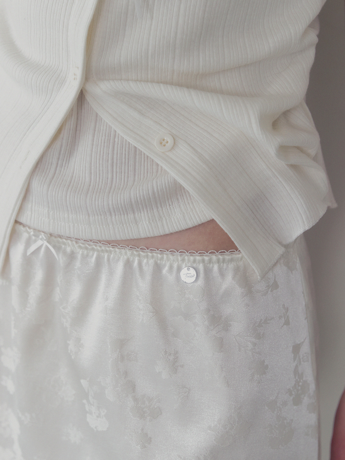 Divet flower satin banding midi skirt