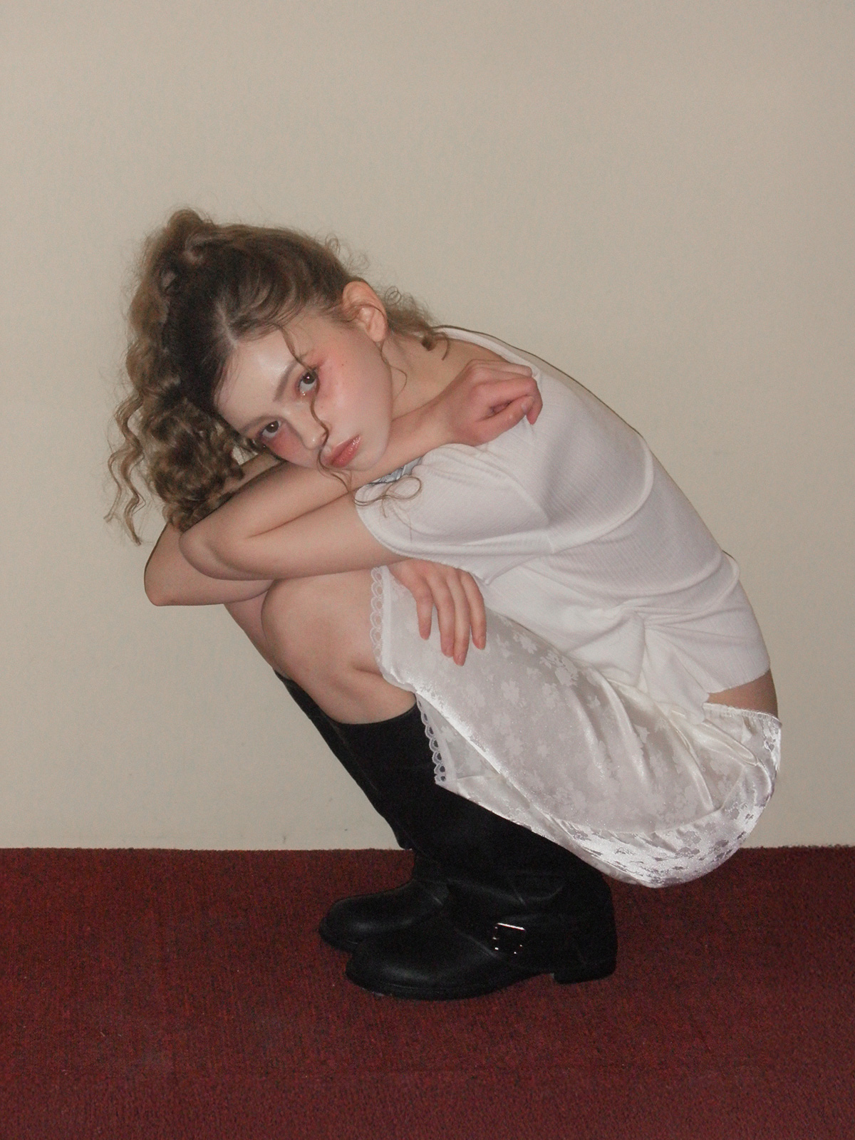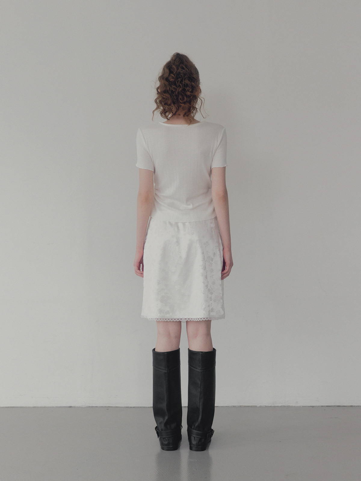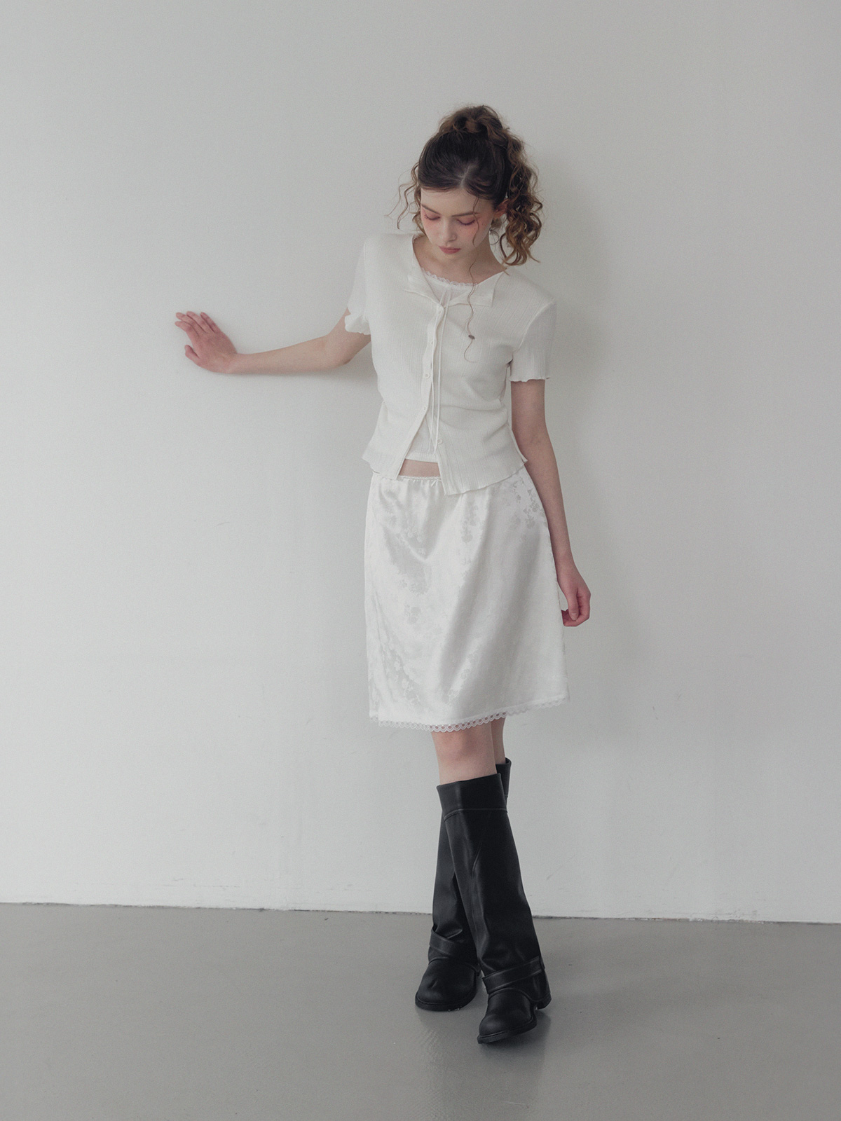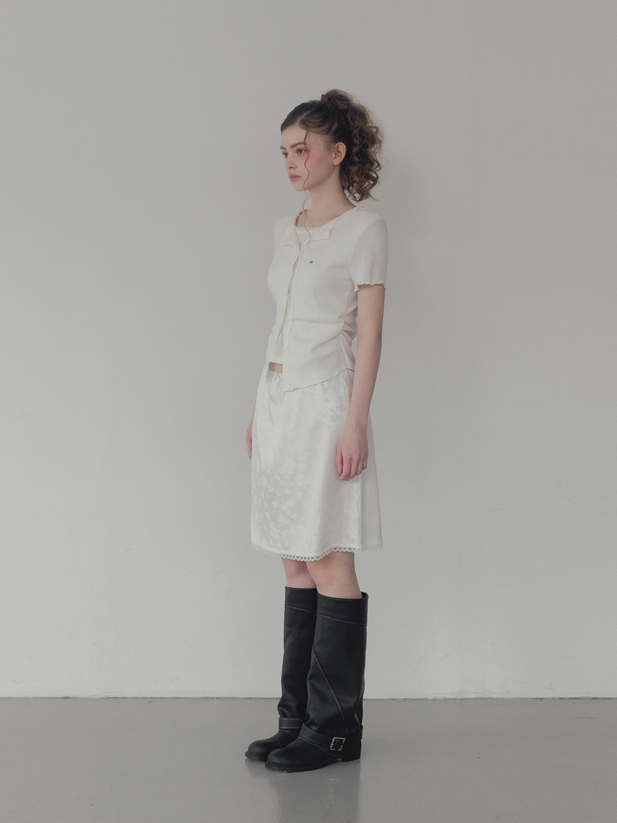 Divet flower satin banding midi skirt