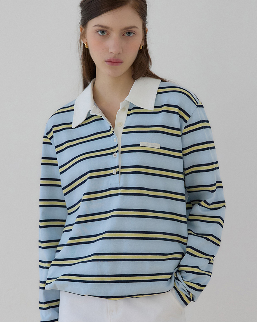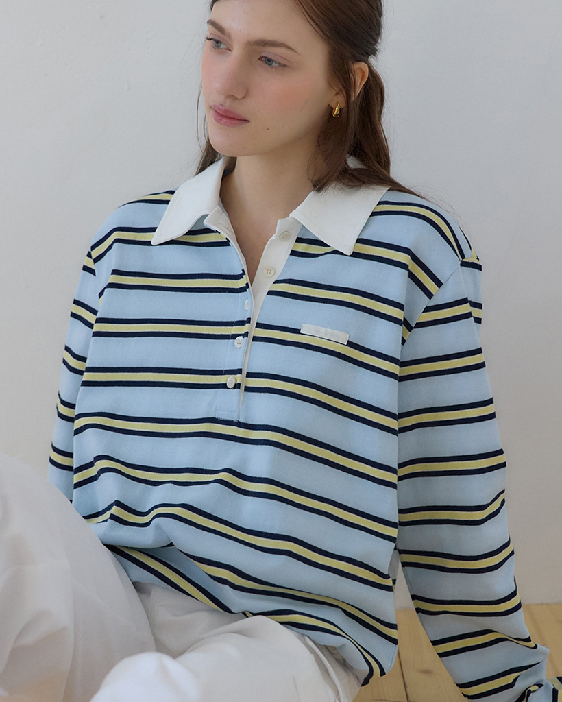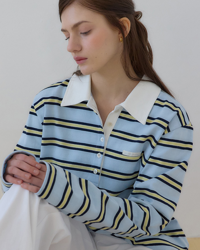 Sorbet Stripe Silvery Pique Sleeve T-shirt - Sky blue