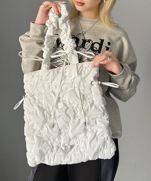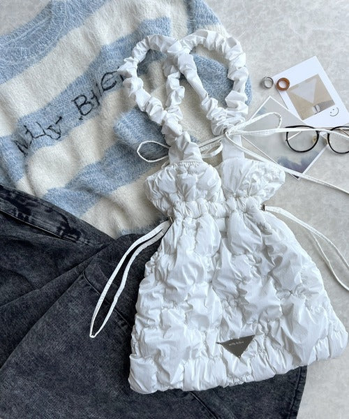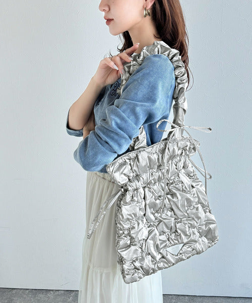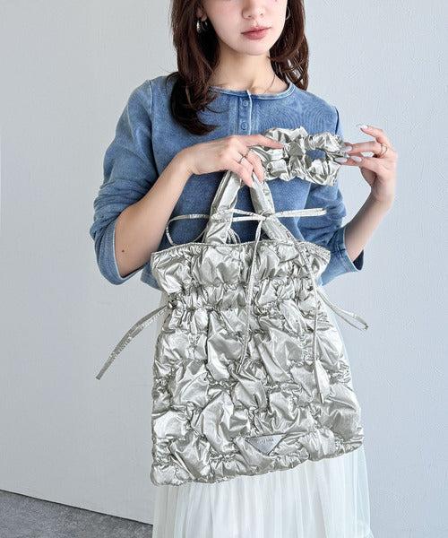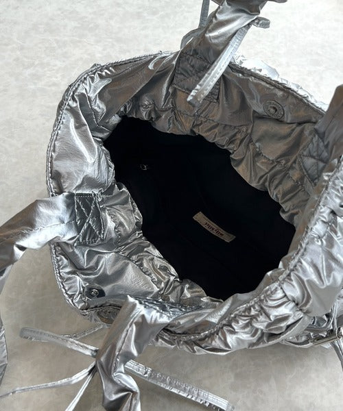 【mily bilet】愛らしさNo1。ドロストリボンハンドル使いシャイニーキルティングリボントート&巾着2WAYバック mi1159022