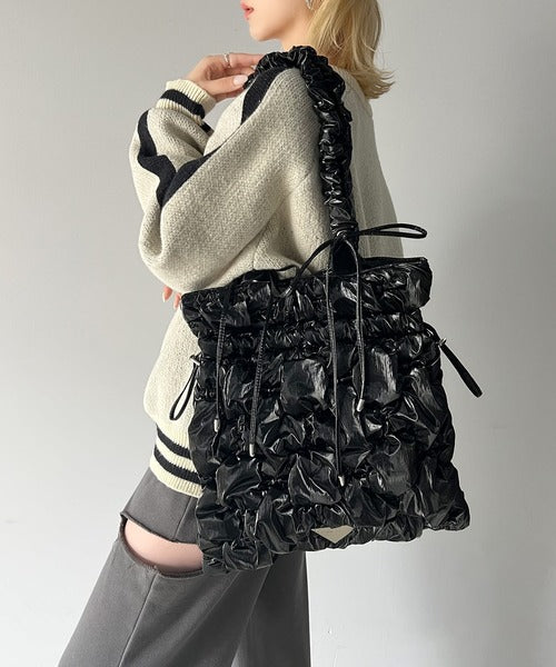 機能性にも優れたトレンド素材の巾着トートバッグです。