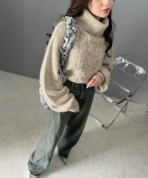 クシュクシュ絞った紐を結んだリボンがトレンド感を演出します。