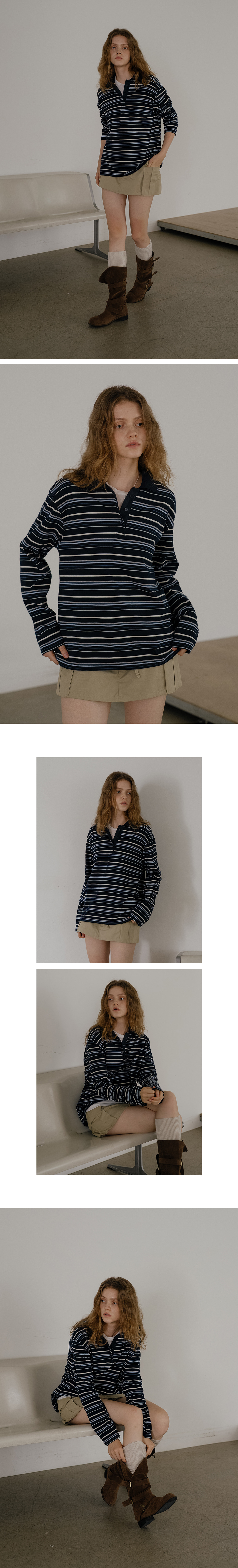 【購入特典】Stripe rugby collar pk t-shirt FRFA01LT02_Navy