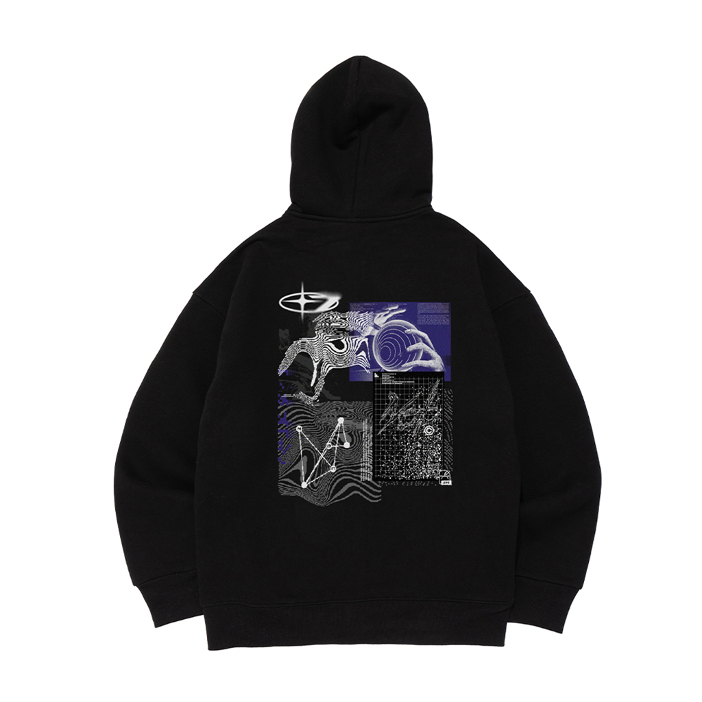 PIXEL ILLUSION BRUSHED HOOD ZIP-UP (BLACK)